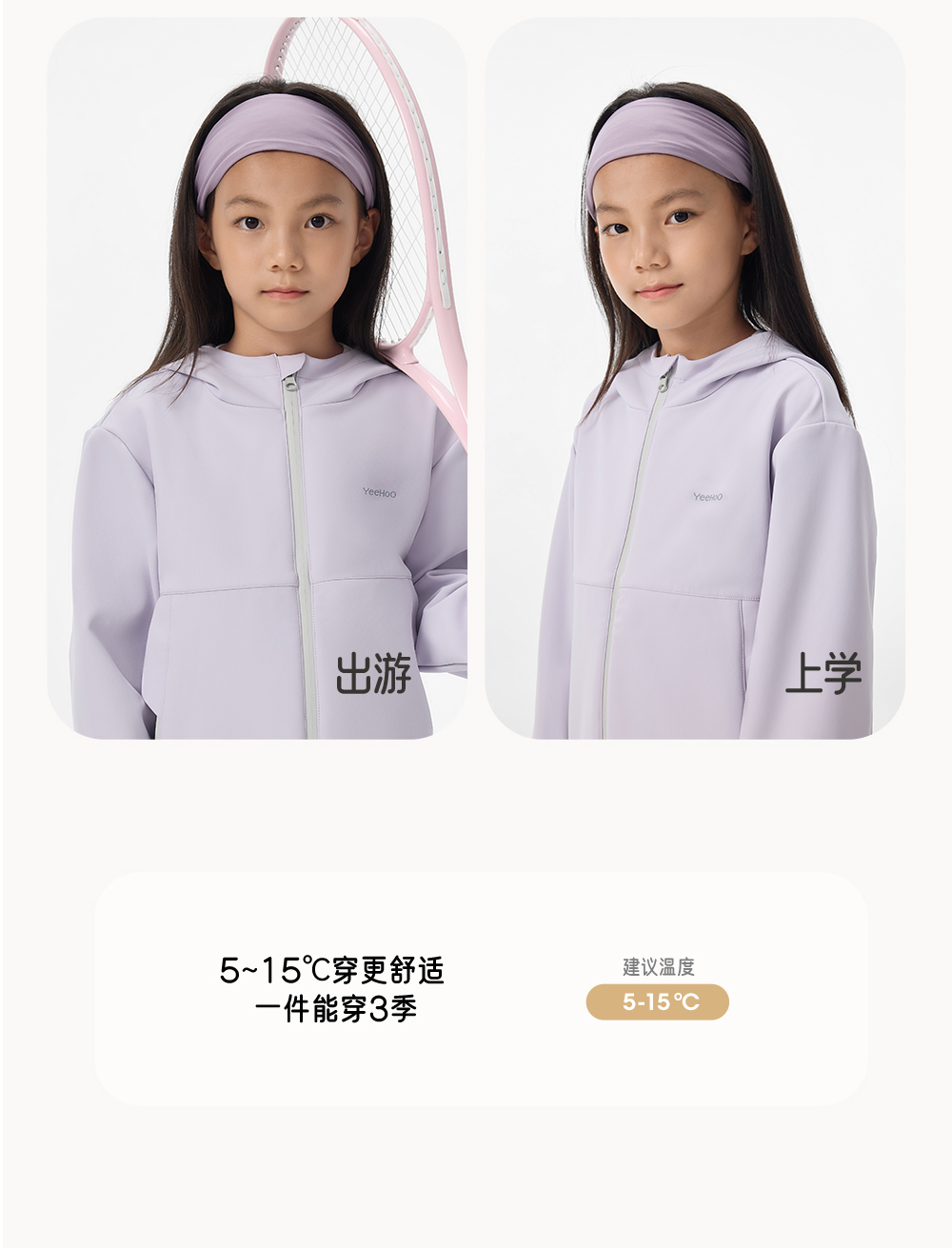 英氏童装儿童连帽外套秋冬新款中大童长袖上衣女童休闲户外衣服