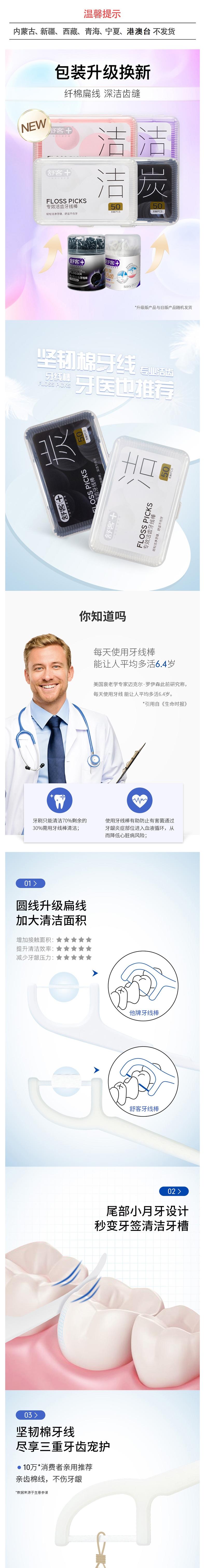 舒客 专效洁齿牙线棒*3盒(颜色随机不指定) SKFC-002