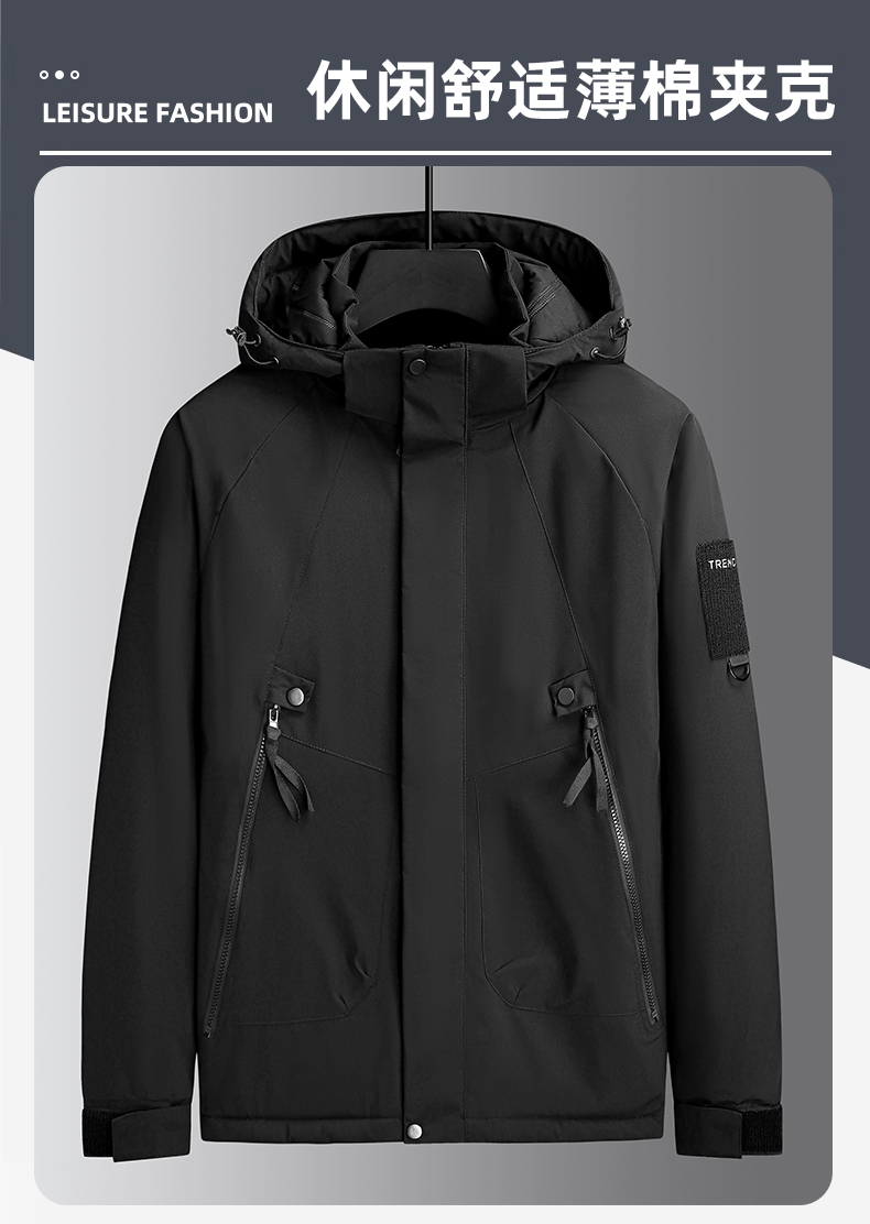 【可拆卸帽】【新款DSF】大依优型大码男装连帽薄棉棉衣夹克加肥加大休闲夹克胖子外套上衣