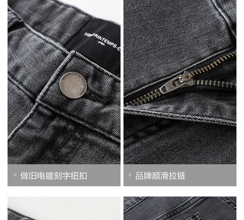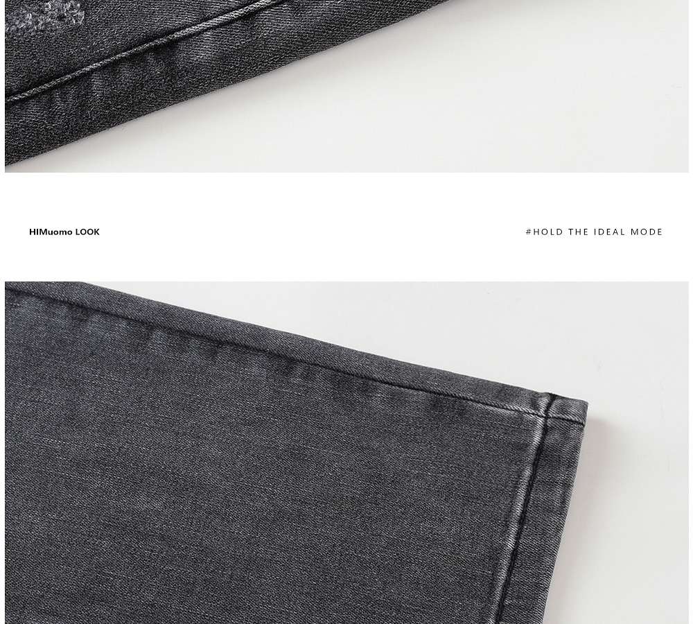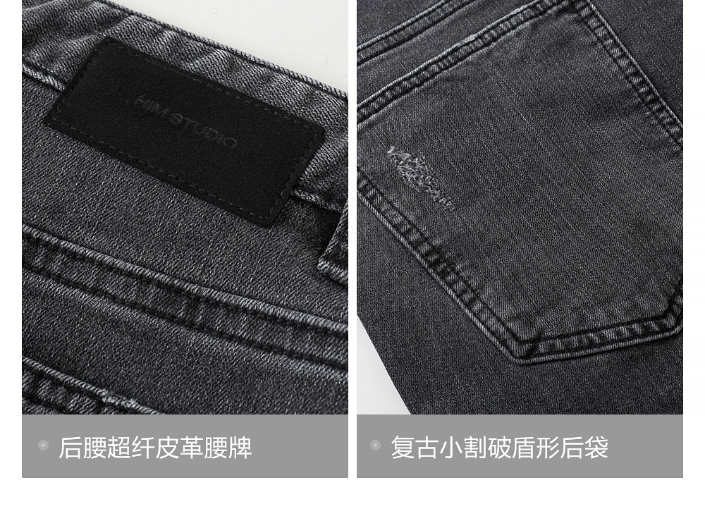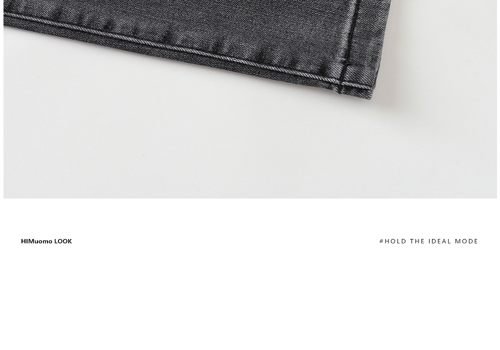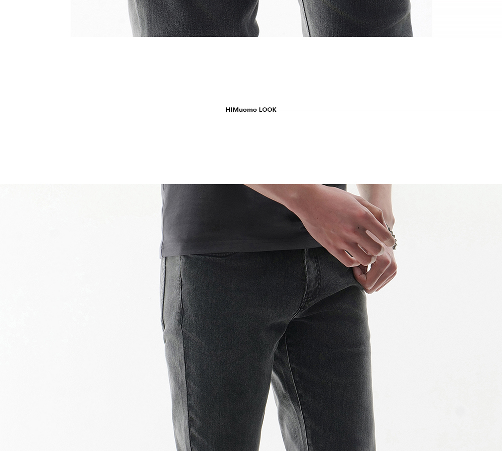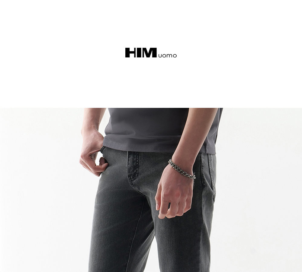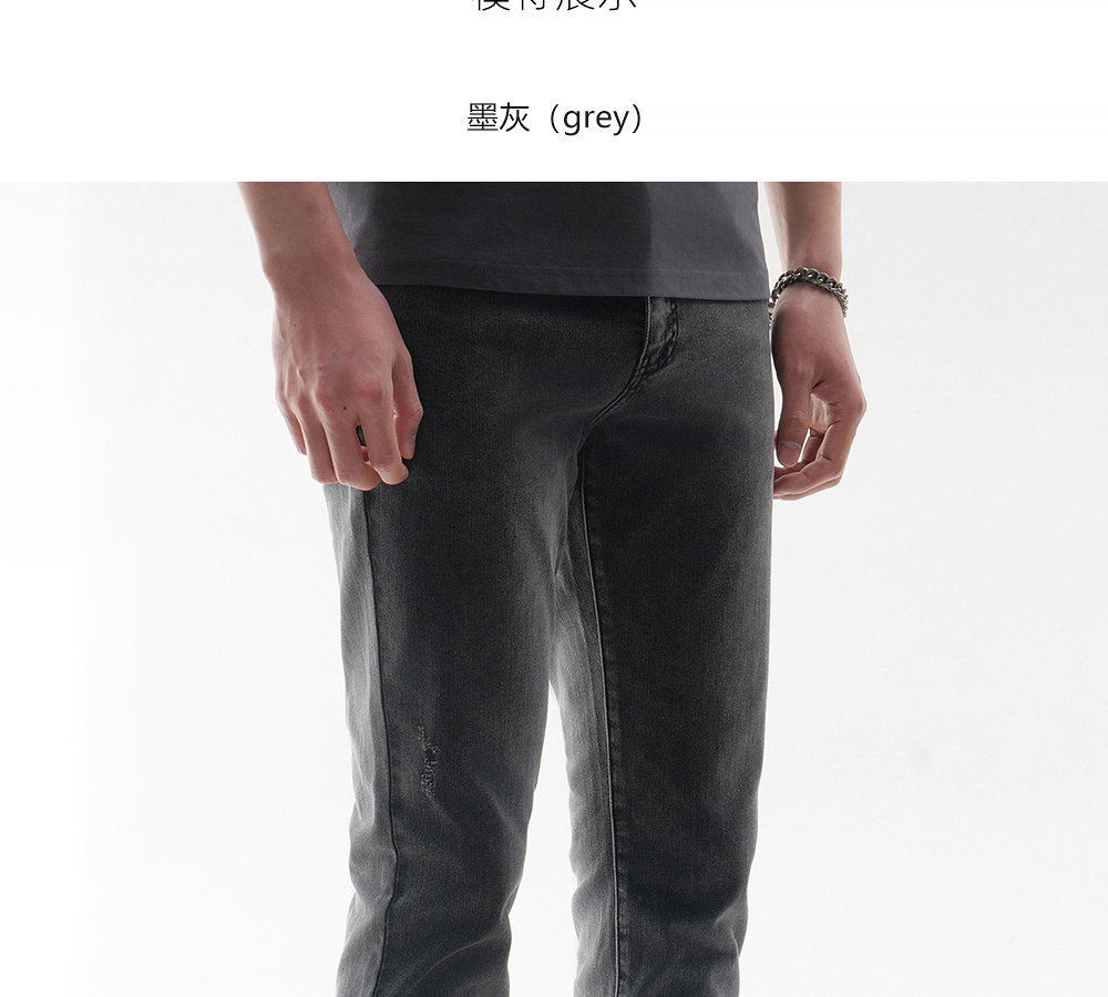 HIM漢崇 做旧小割破修身牛仔裤时尚简约灰微弹休闲裤 2026春季
