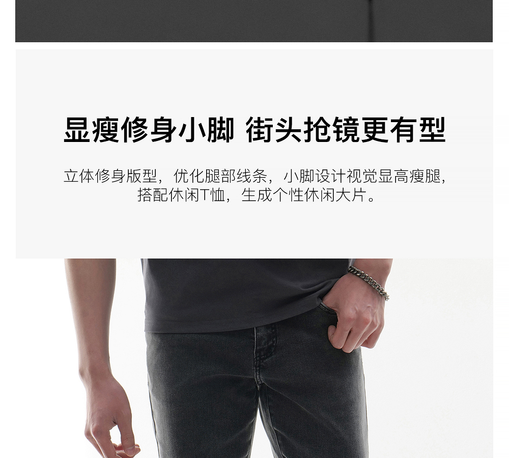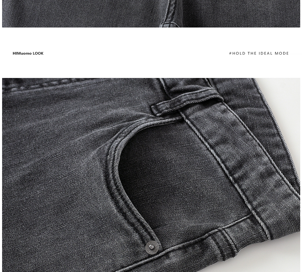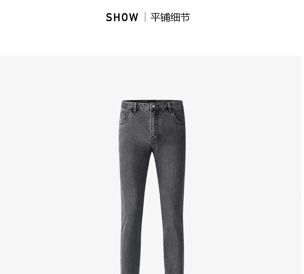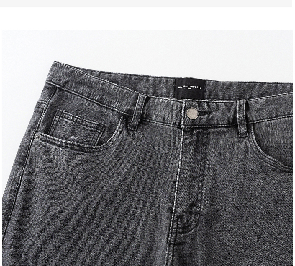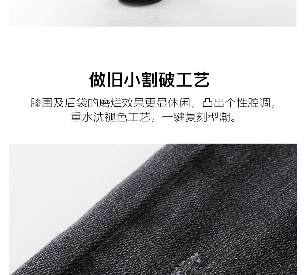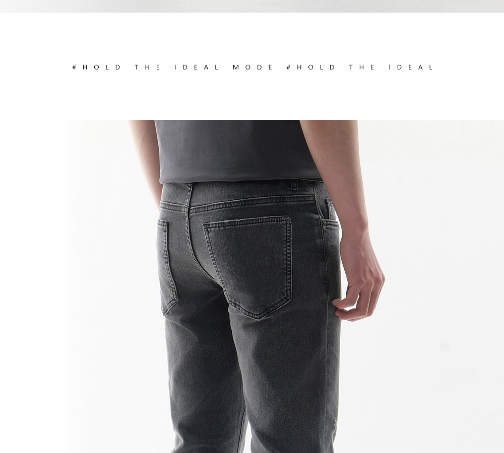 HIM漢崇 做旧小割破修身牛仔裤时尚简约灰微弹休闲裤 2026春季