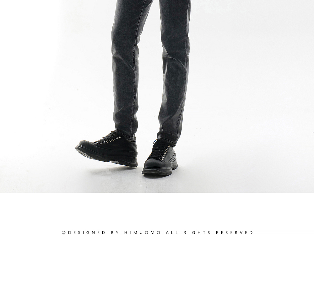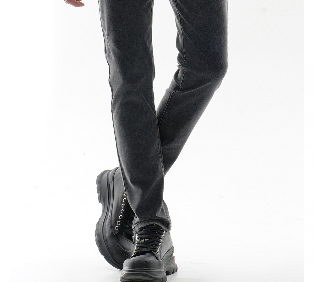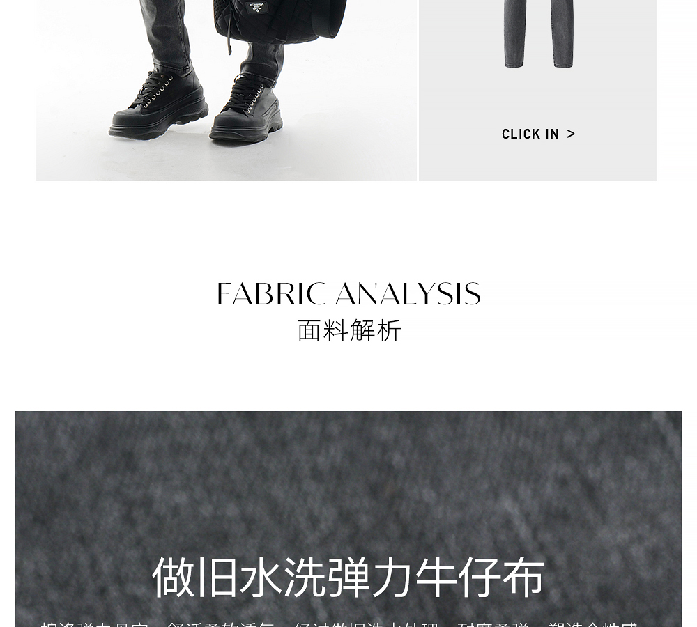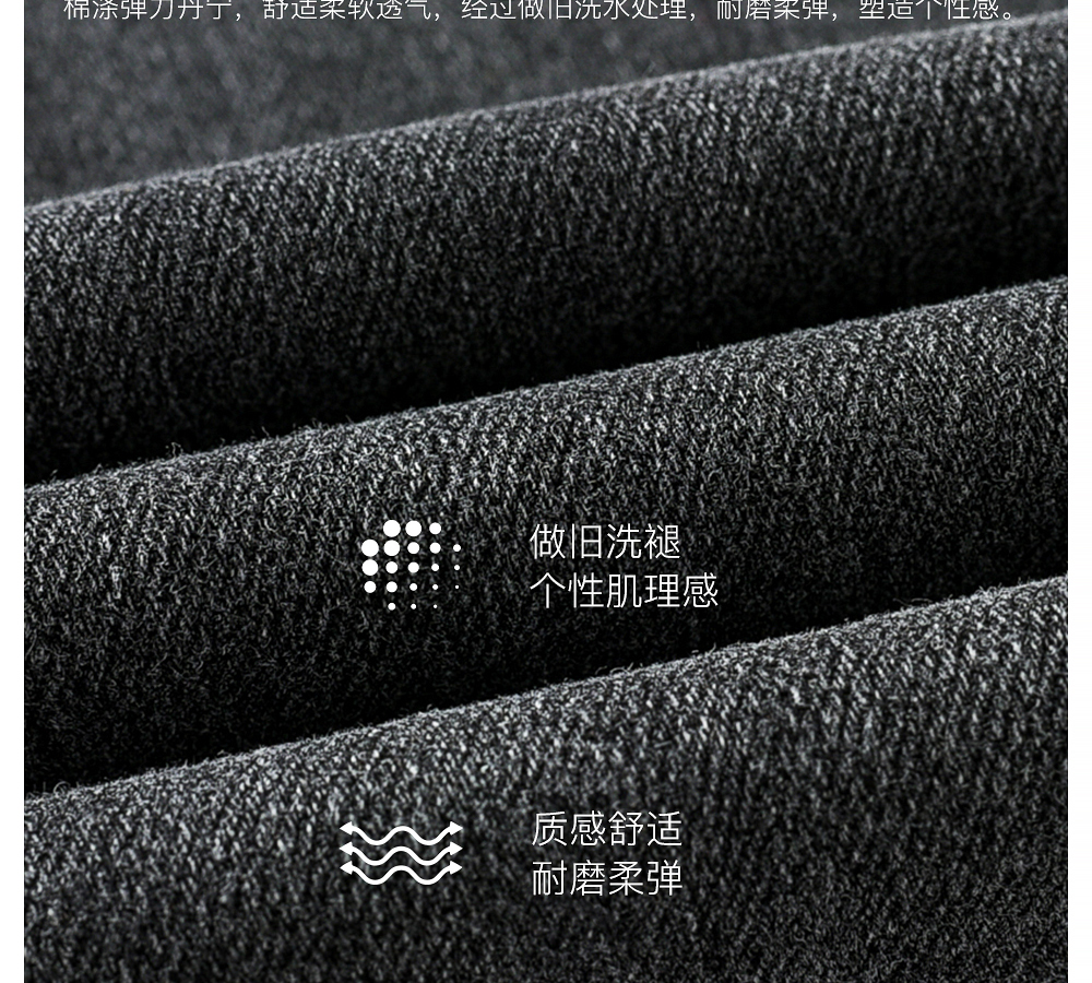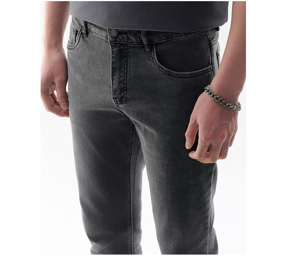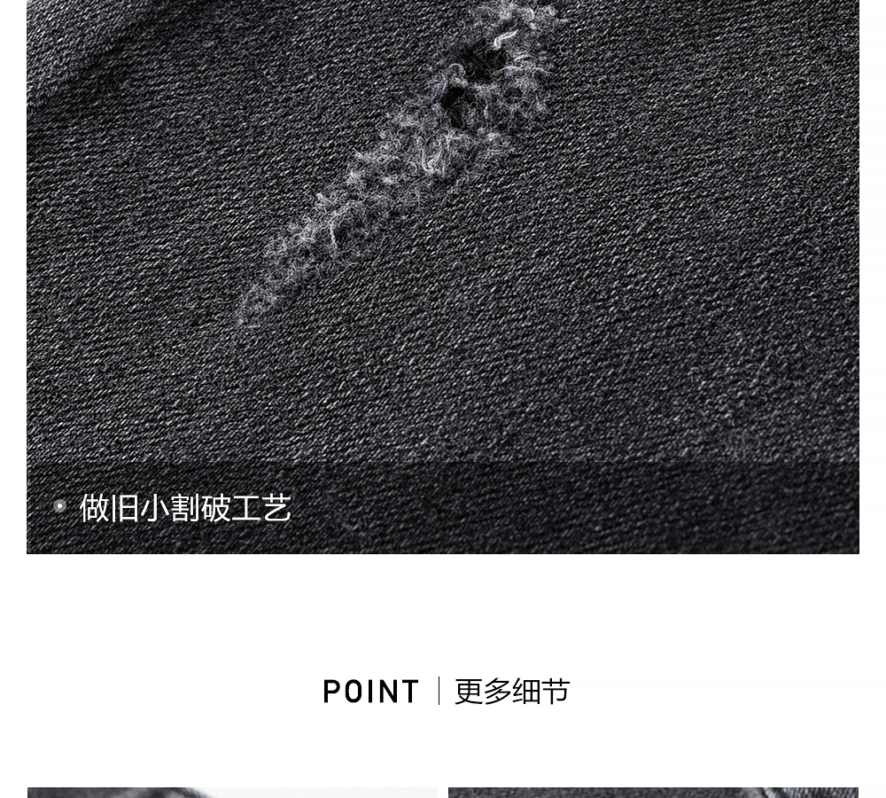 HIM漢崇 做旧小割破修身牛仔裤时尚简约灰微弹休闲裤 2026春季