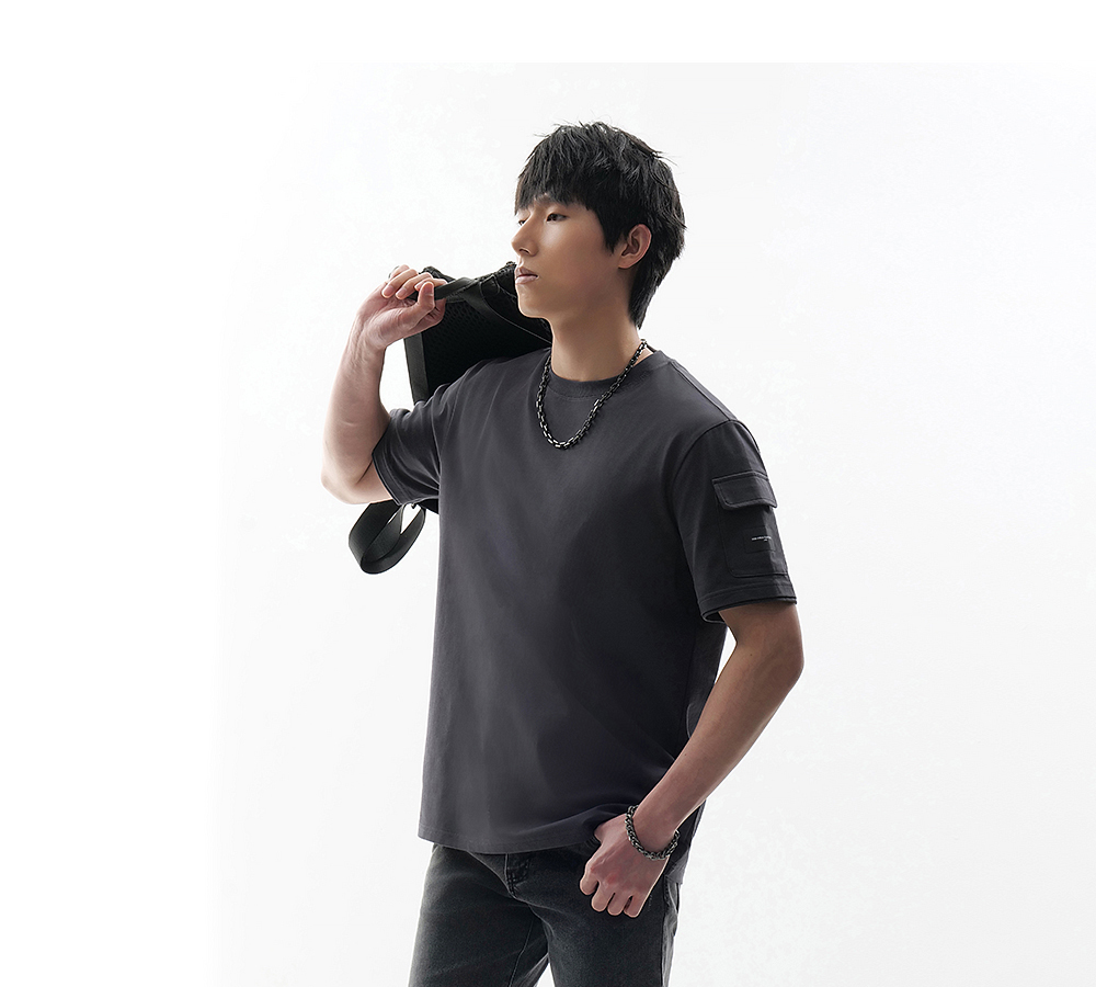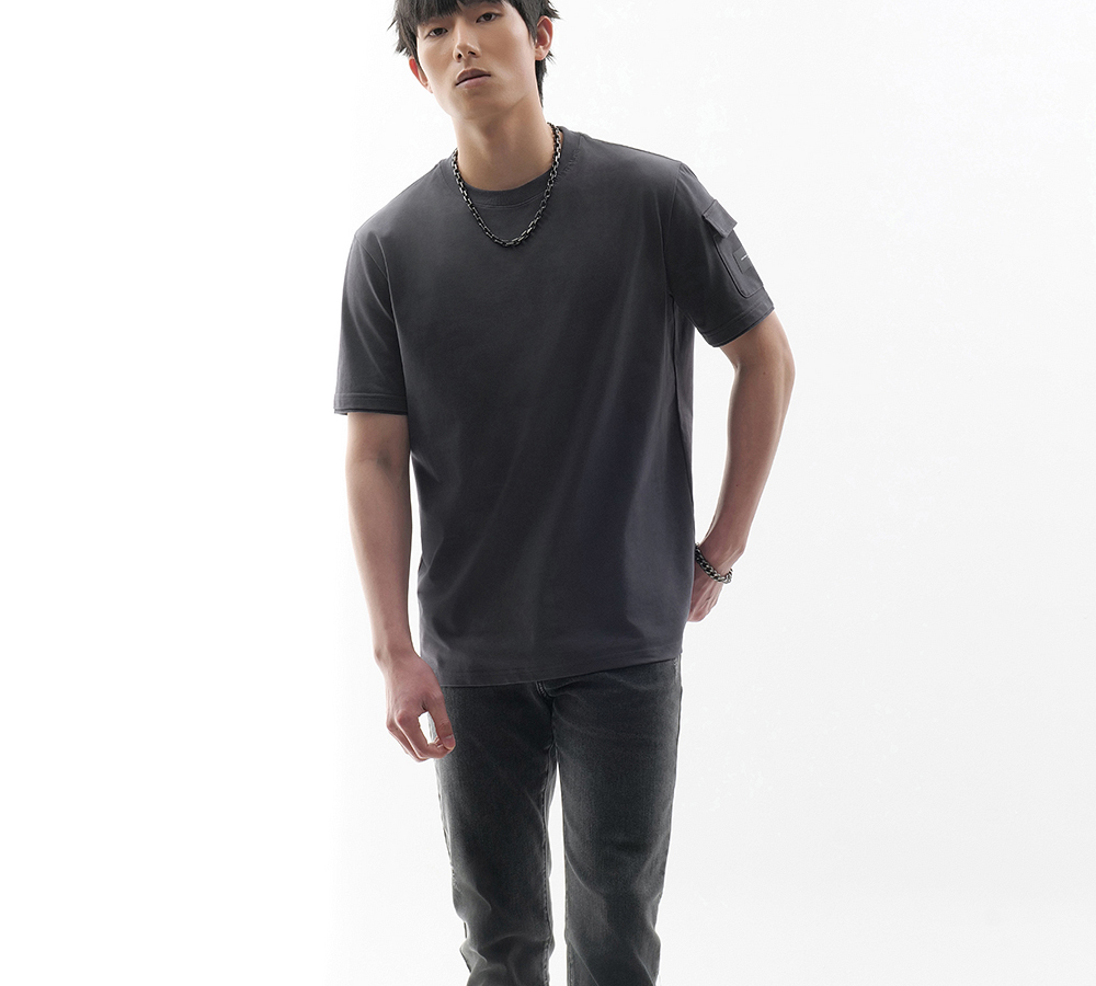 HIM漢崇 立体胶章休闲圆领T恤男士舒适柔软透气百搭上衣 2026夏季