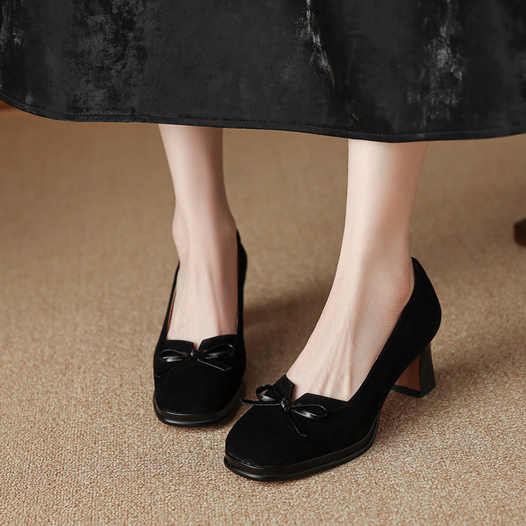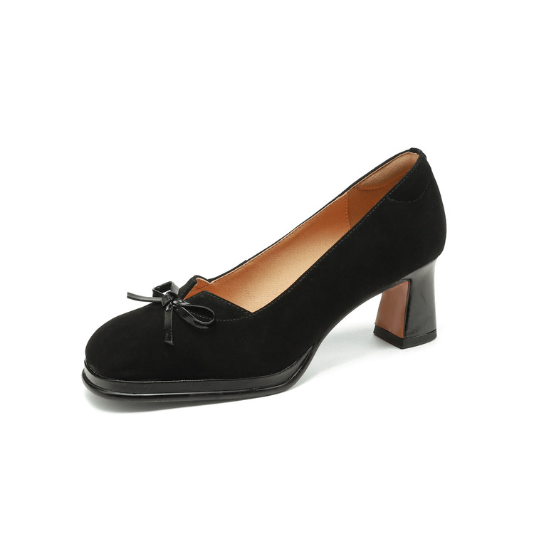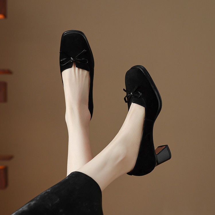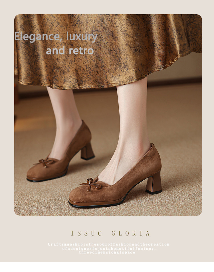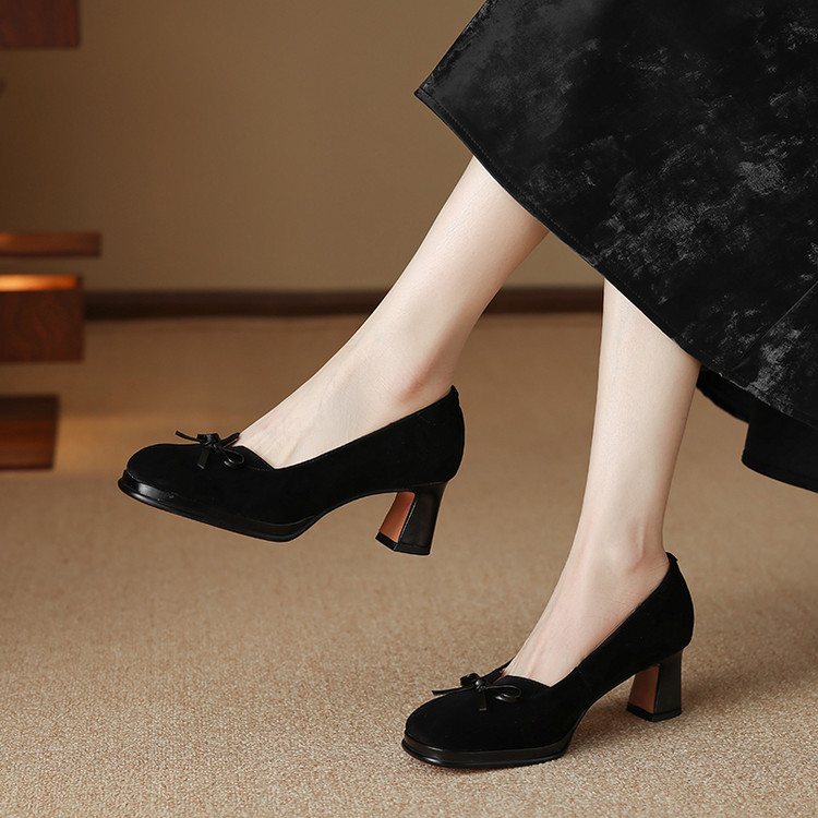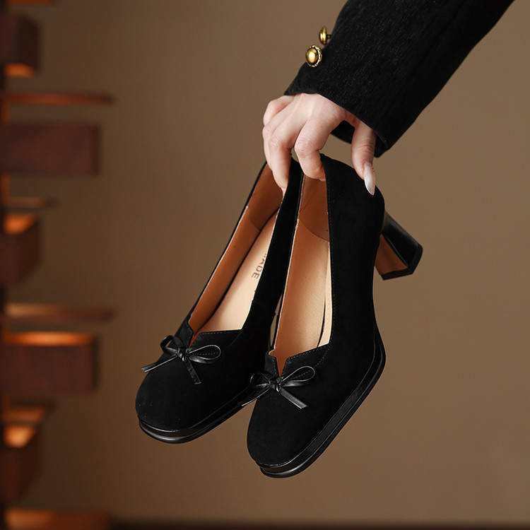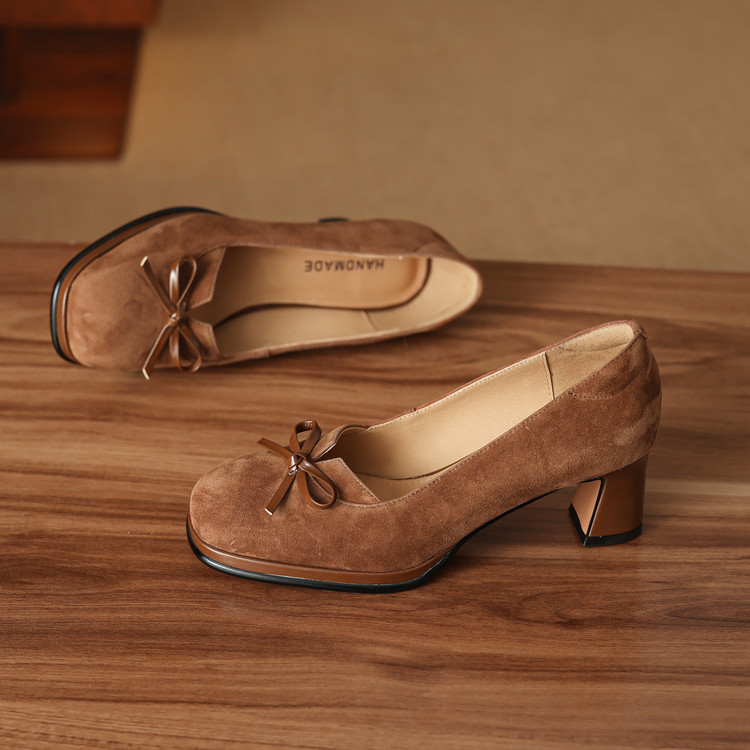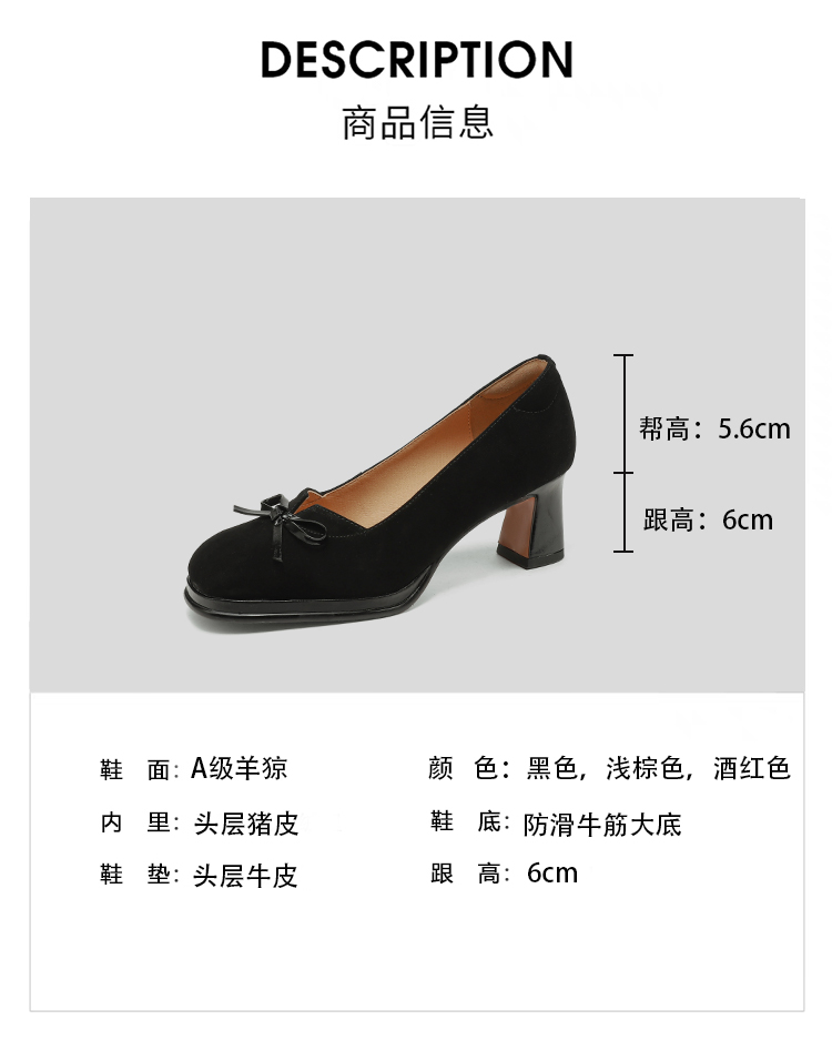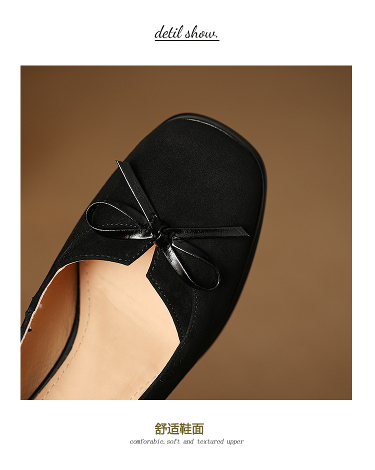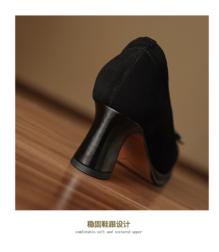 【预售5天】春秋季新款时尚百搭蝴蝶结磨砂粗跟单鞋女浅口防水台粗跟单鞋XH&M988