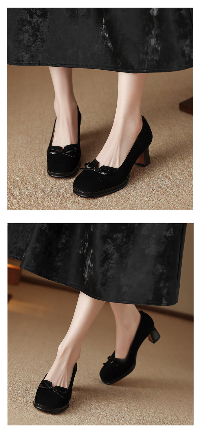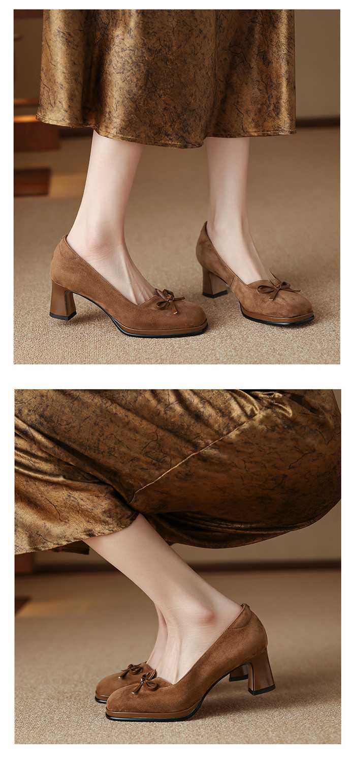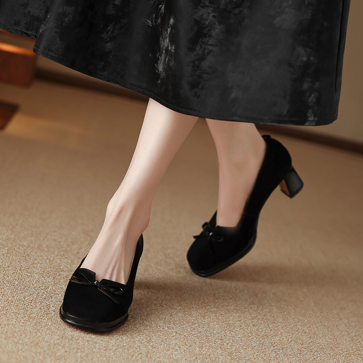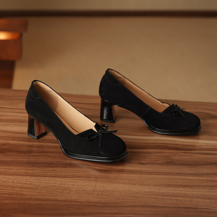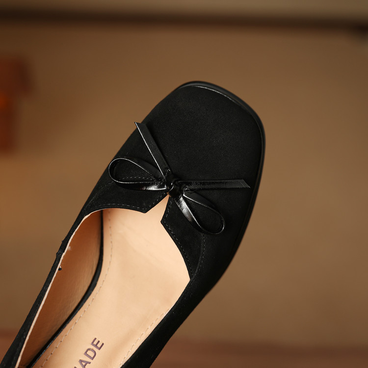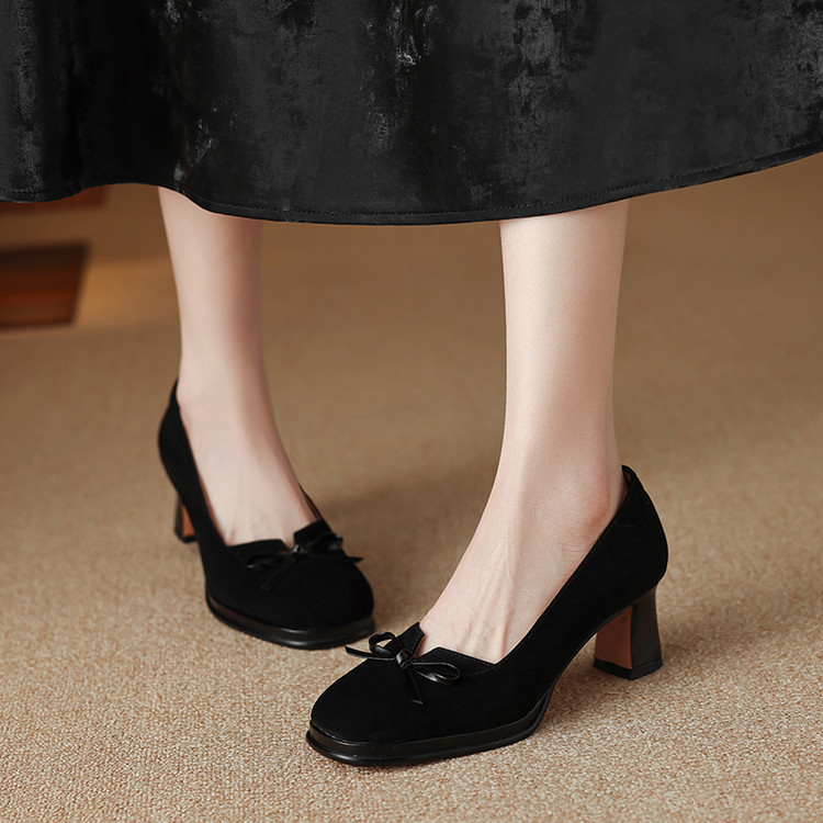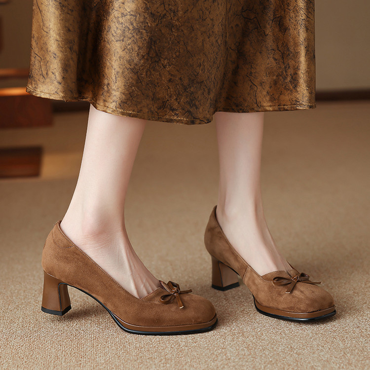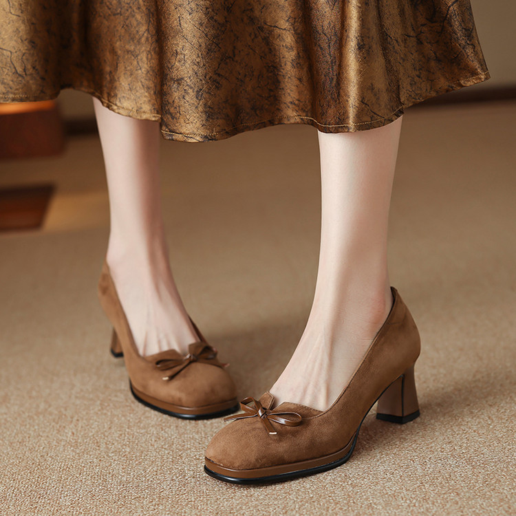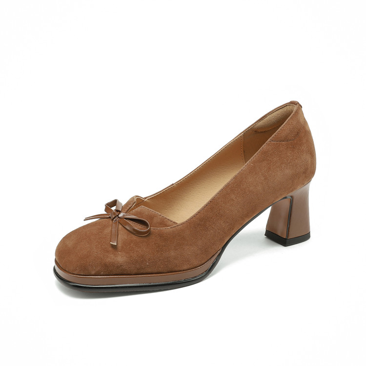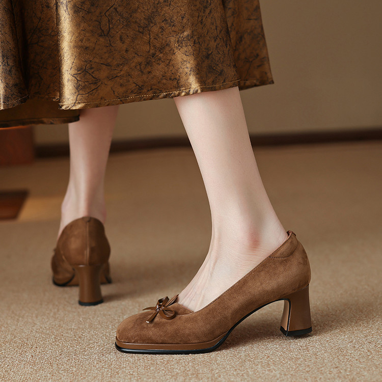 【预售5天】春秋季新款时尚百搭蝴蝶结磨砂粗跟单鞋女浅口防水台粗跟单鞋XH&M988