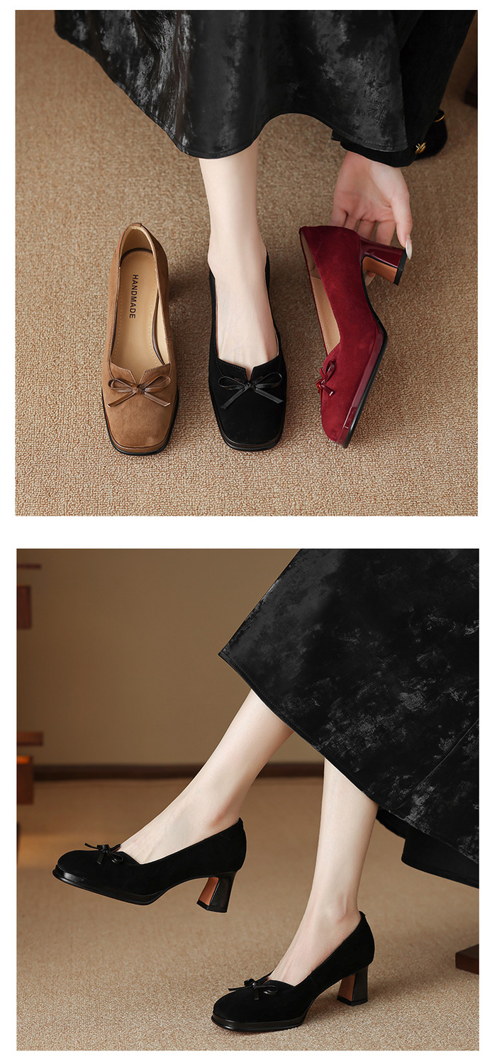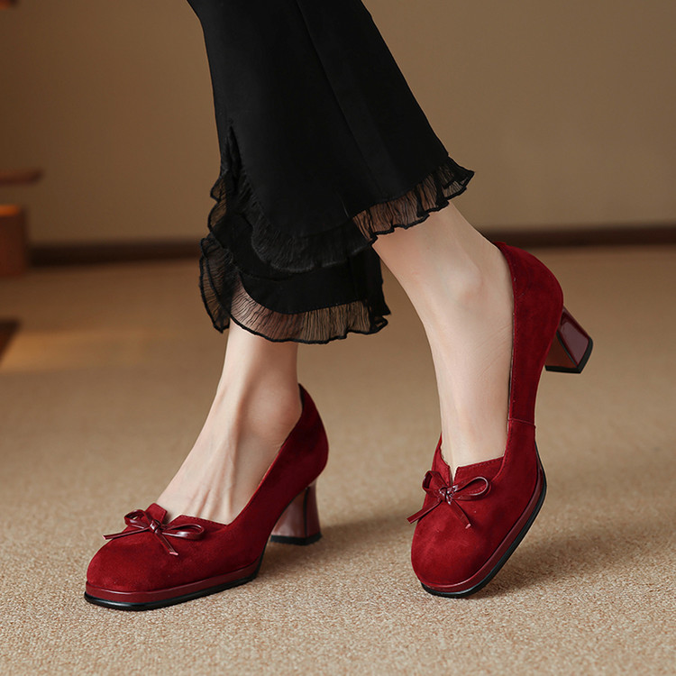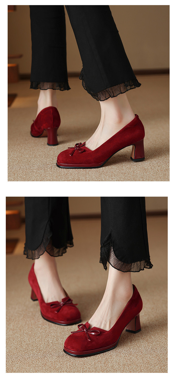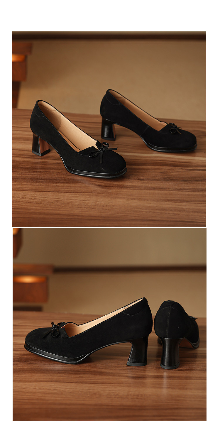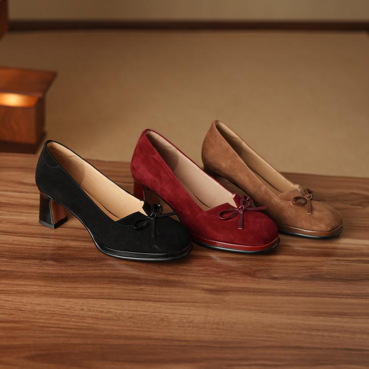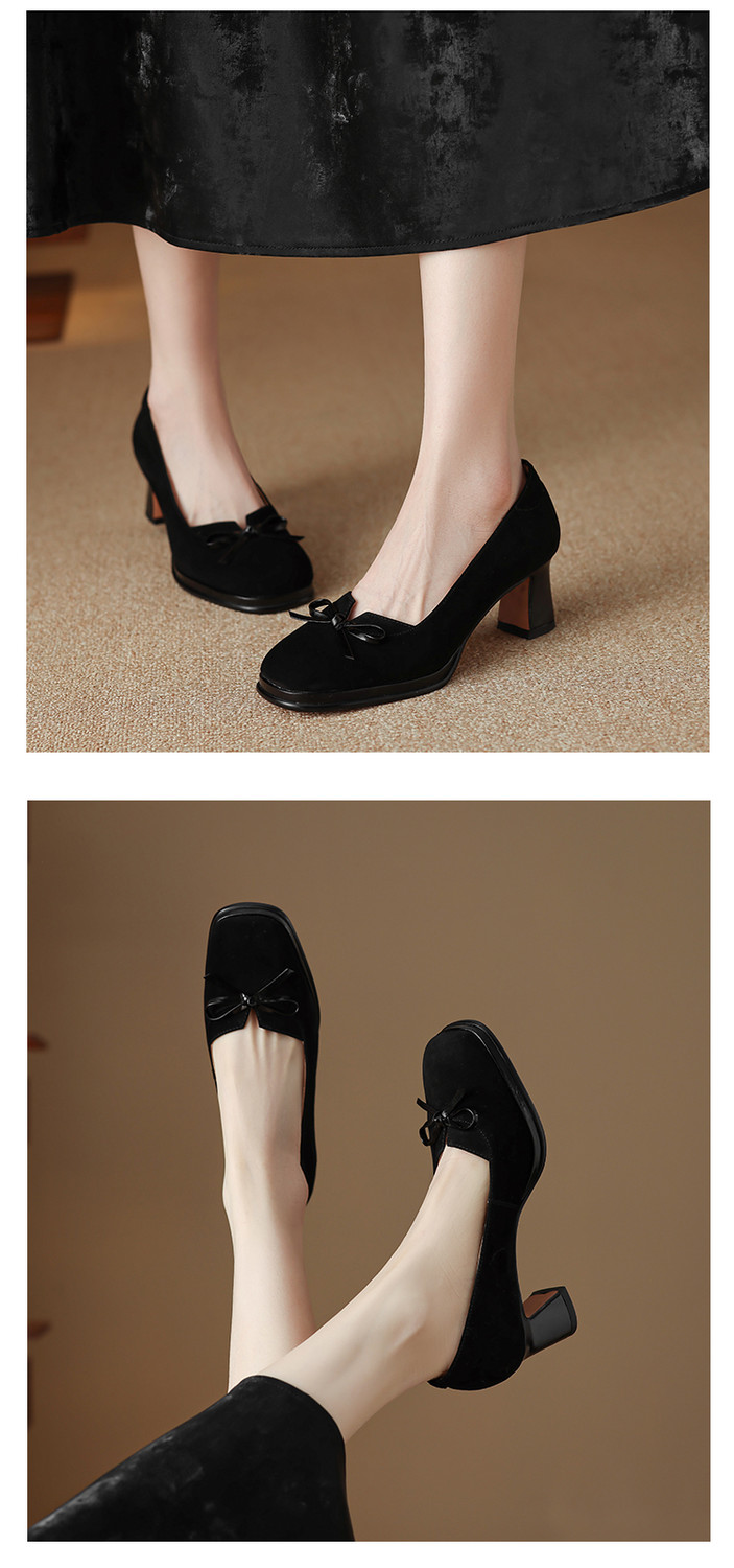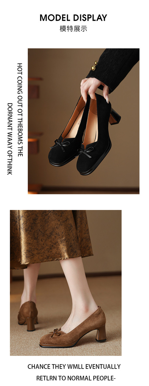 【预售5天】春秋季新款时尚百搭蝴蝶结磨砂粗跟单鞋女浅口防水台粗跟单鞋XH&M988