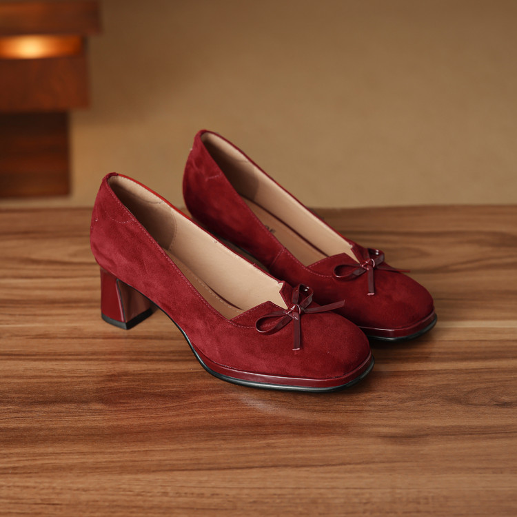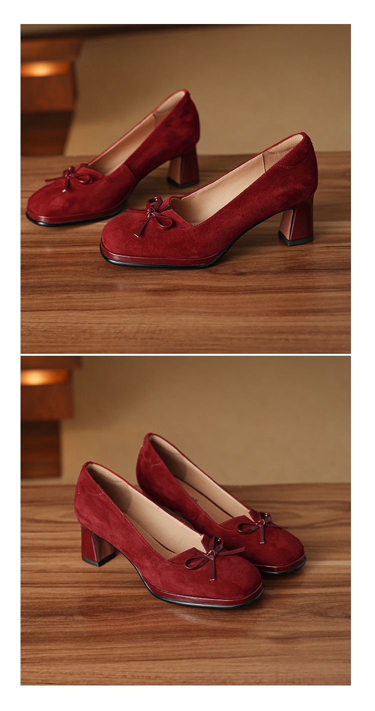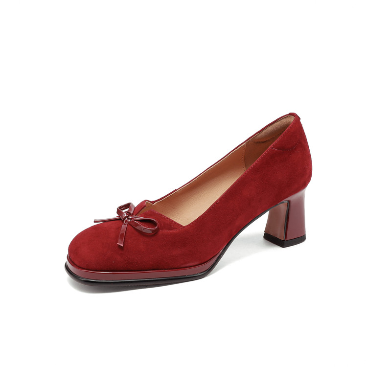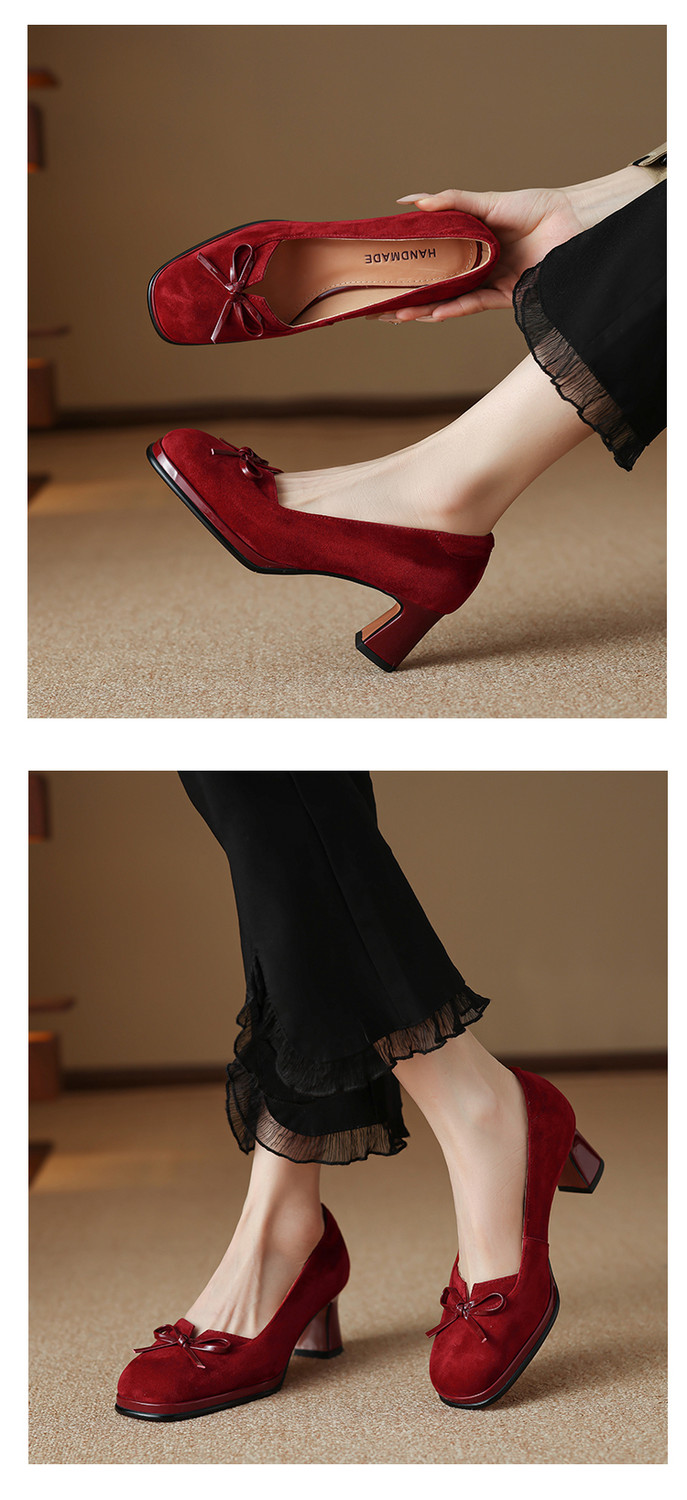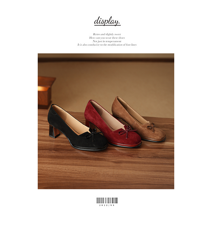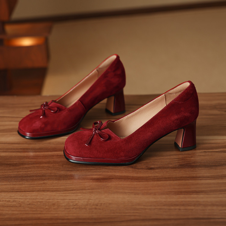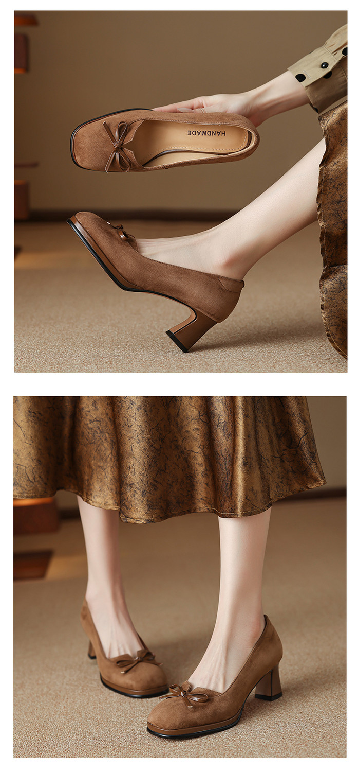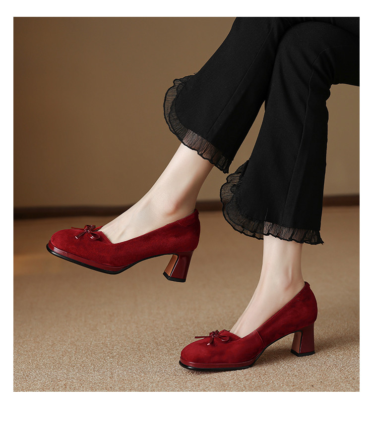 【预售5天】春秋季新款时尚百搭蝴蝶结磨砂粗跟单鞋女浅口防水台粗跟单鞋XH&M988