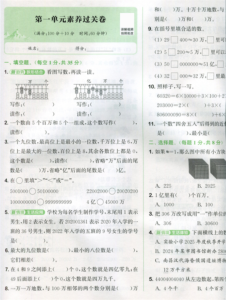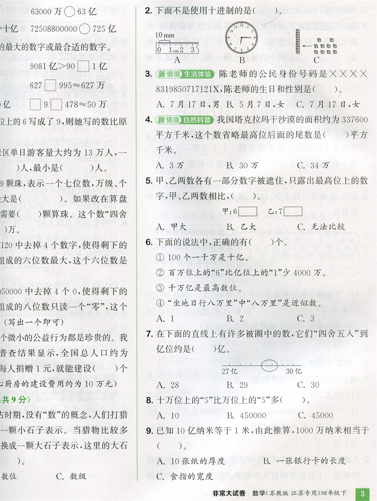2026春 拔尖大试卷 数学四年级下册苏教版 小学教辅 4下小学试卷新题型 新角度新材料新情境学生用书江苏专版