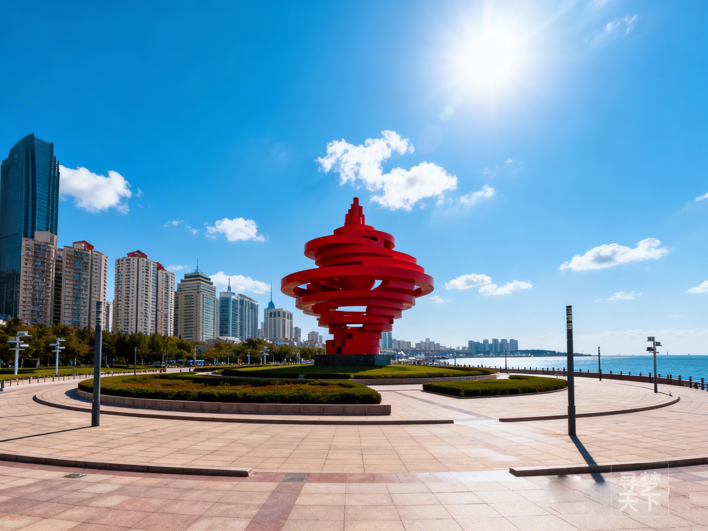 4.青岛:栈桥(航拍 “回澜阁 + 弧形栈桥”,海面倒影与城市背景交融)、小麦岛(环形海岸环绕绿岛,航拍显 “海上绿洲” 与城市天际线对比)、五四广场(地标建筑与海岸线同框,展现青岛城市海岸美学)。