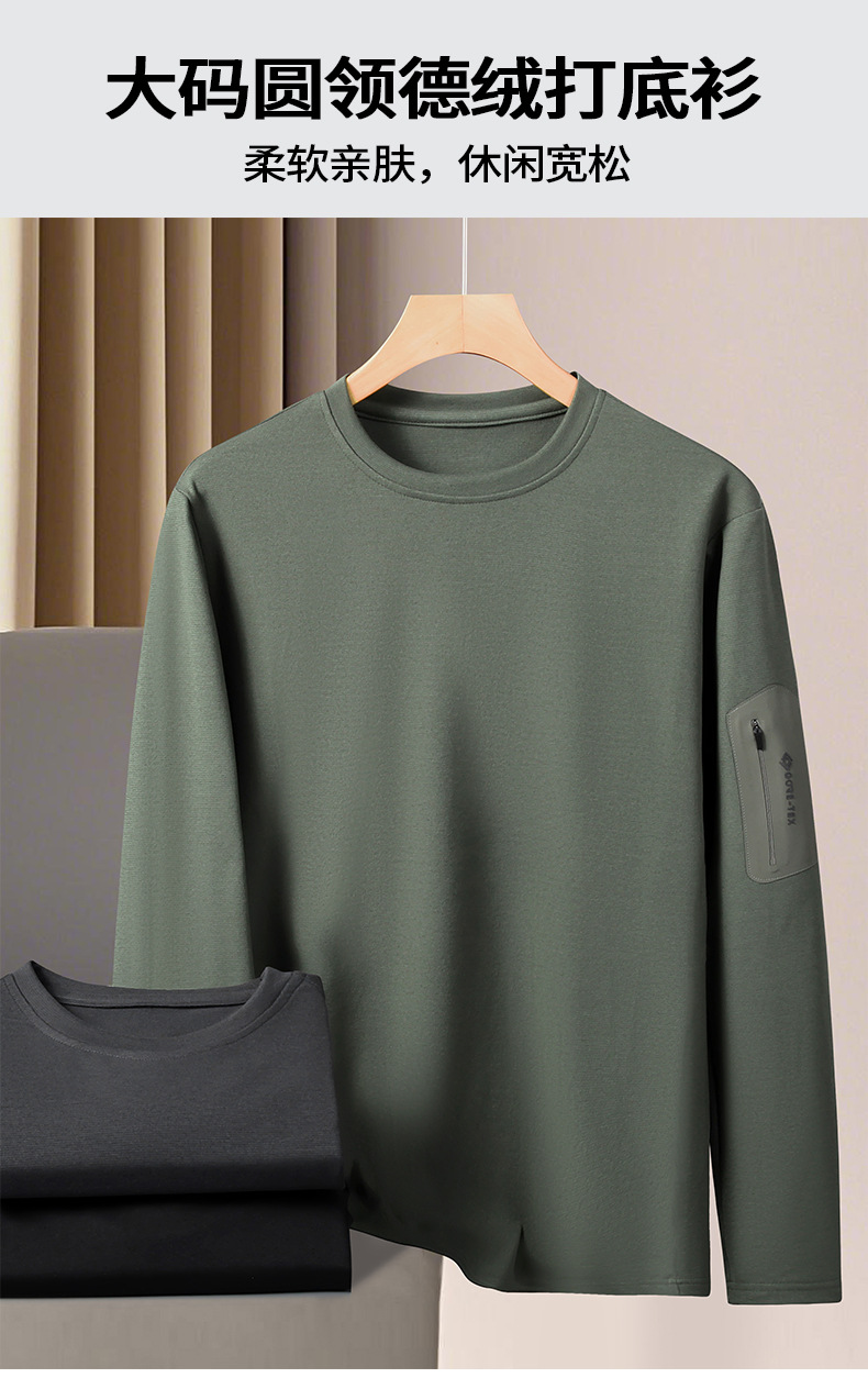 【DK】大依优型大码男装德绒长袖T恤男加大码秋冬款纯色保暖打底衫绵羊毛桑蚕丝肥佬宽松圆领长袖体恤