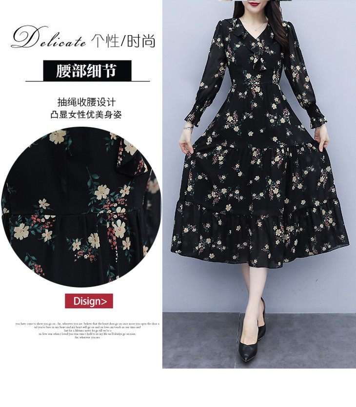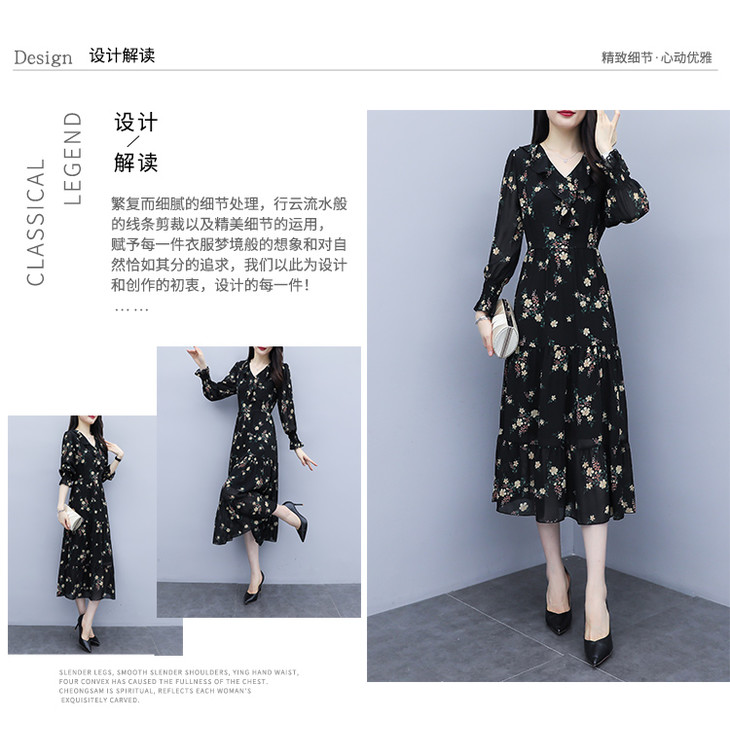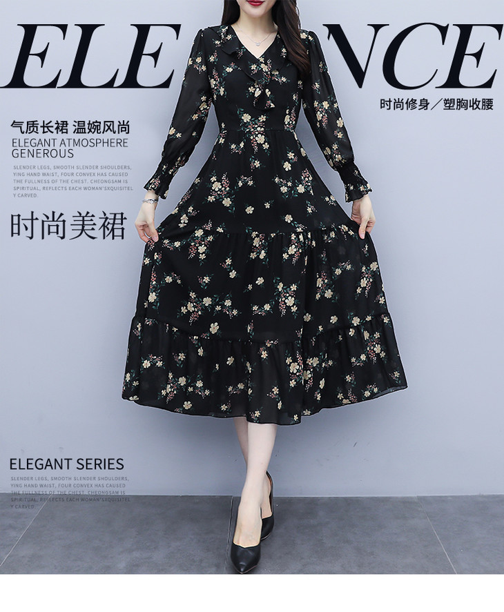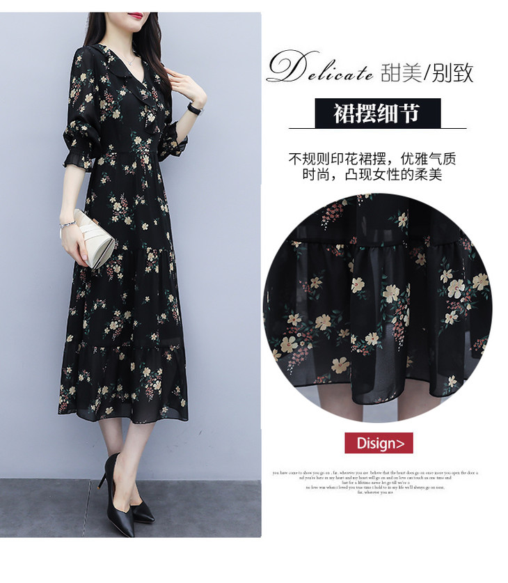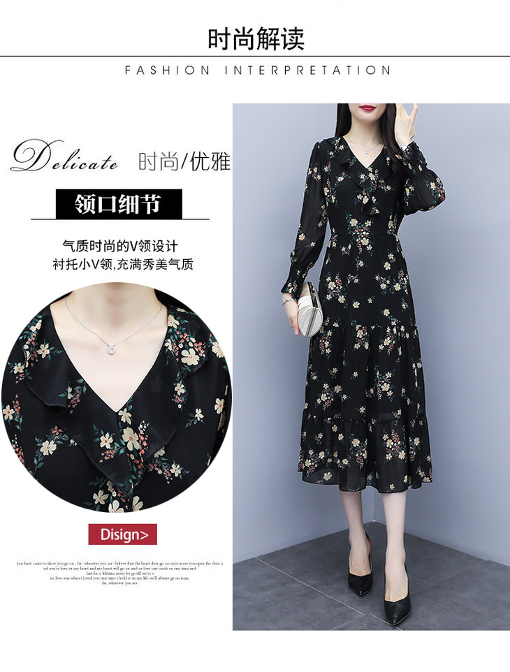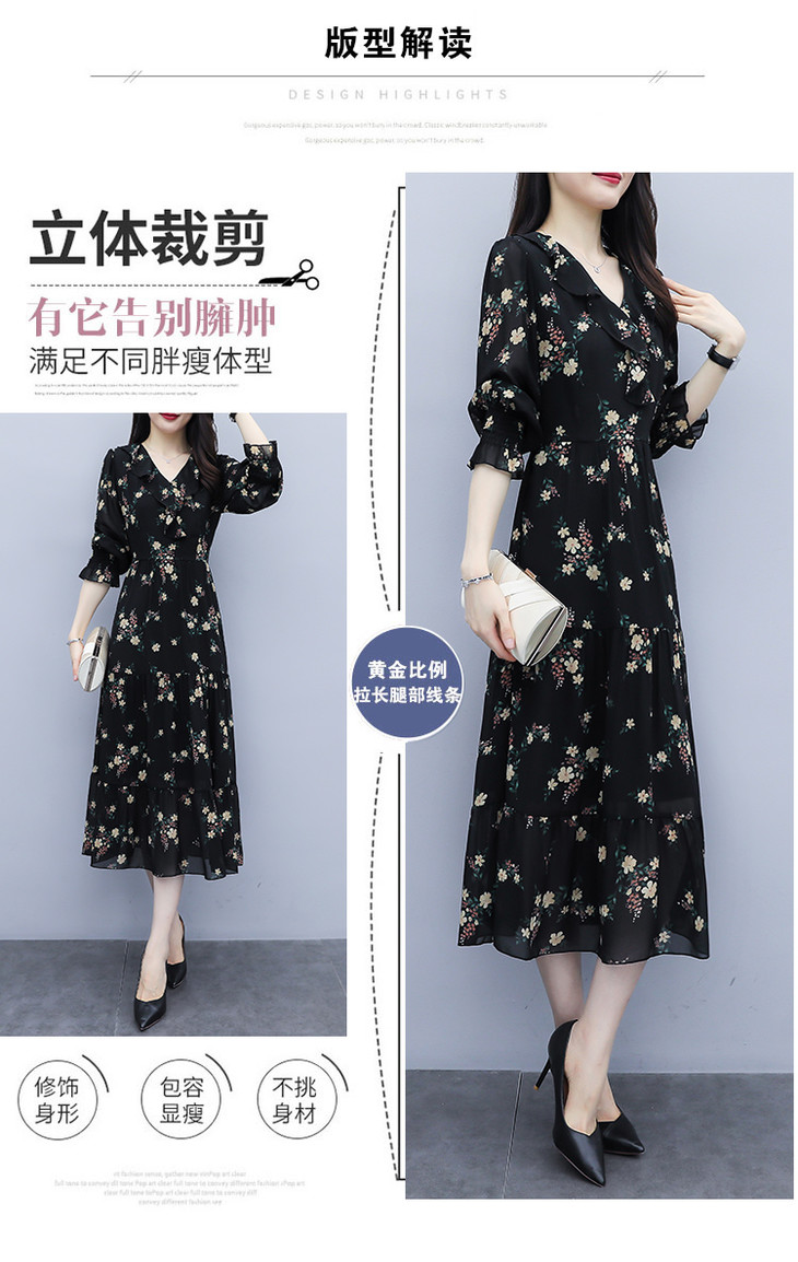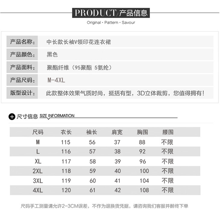 TZW- LDS7029韩版大码女装V领印花连衣裙
