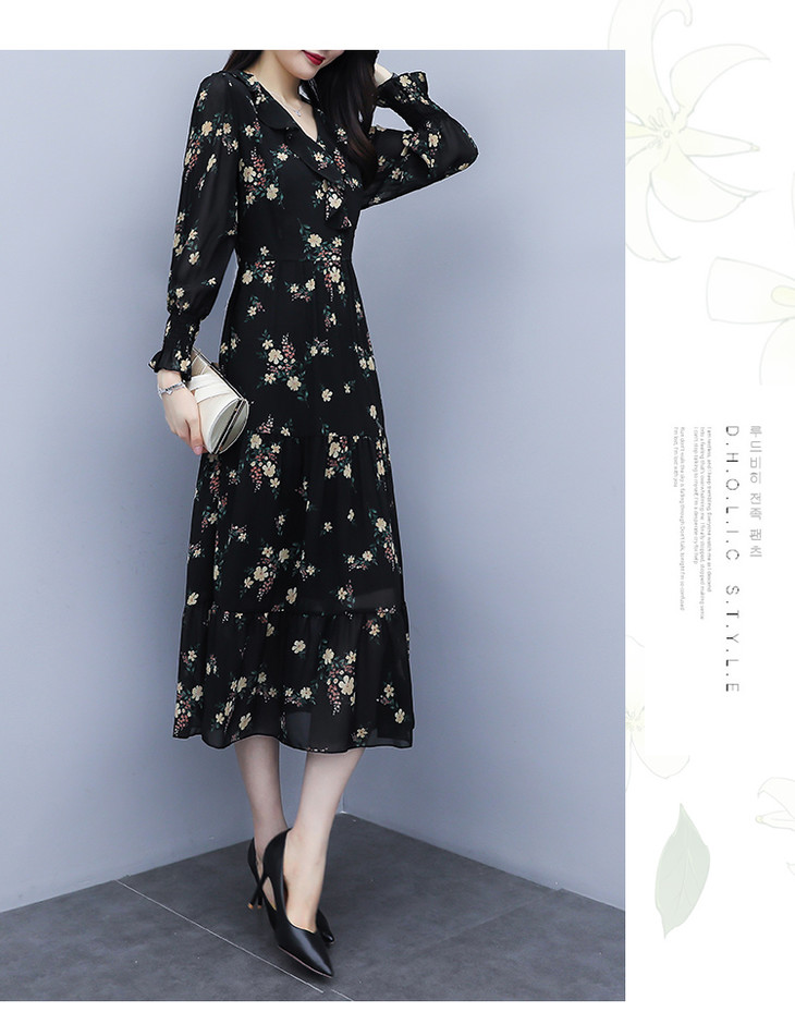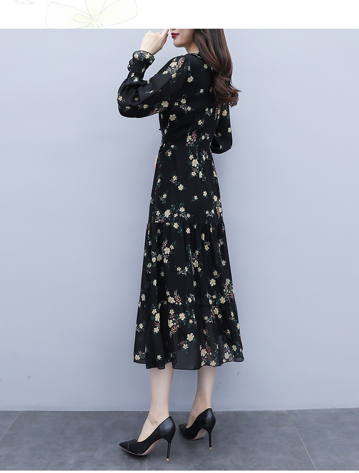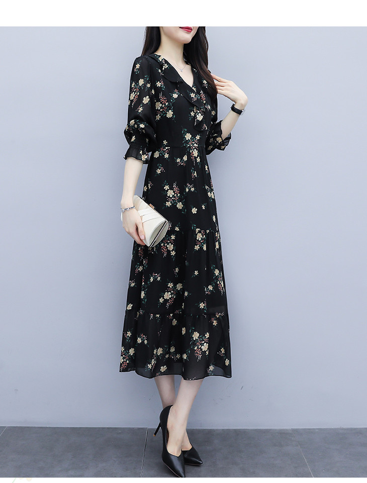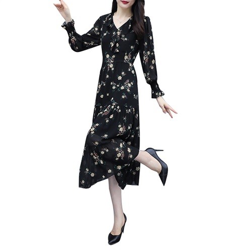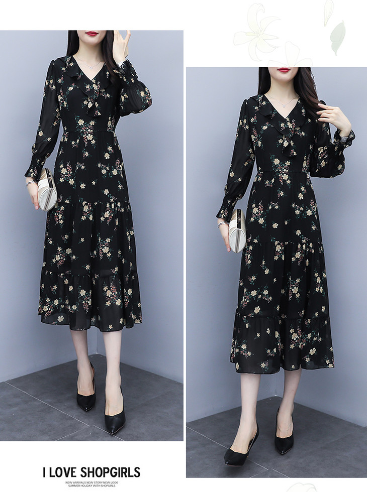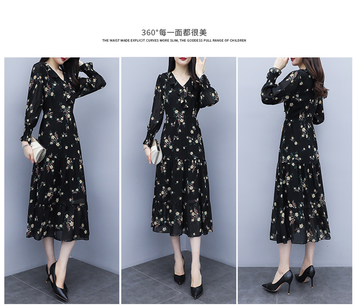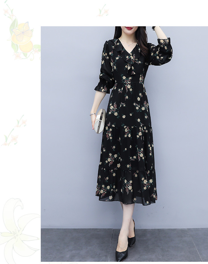 TZW- LDS7029韩版大码女装V领印花连衣裙