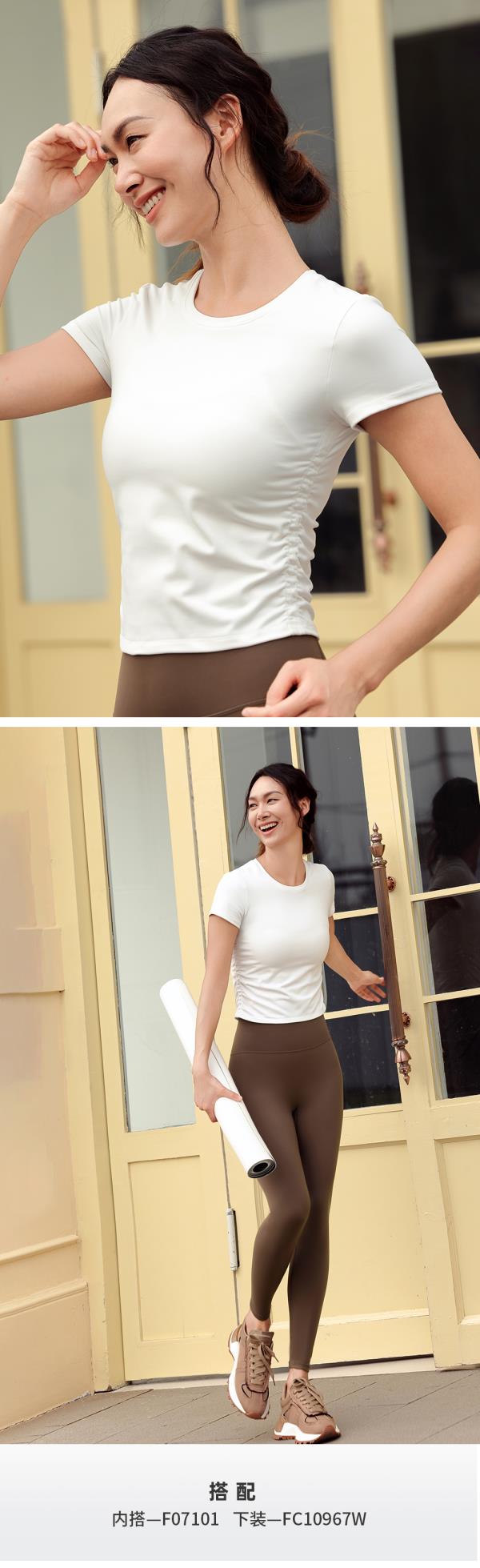 凡圣瑜伽圆领抽褶收腰短袖FC14353