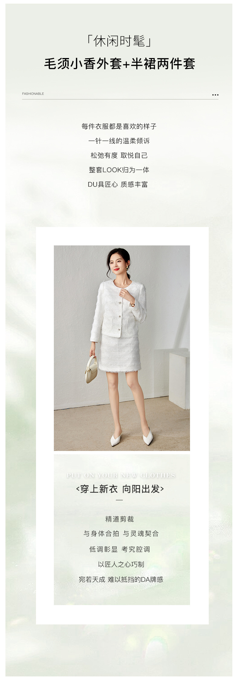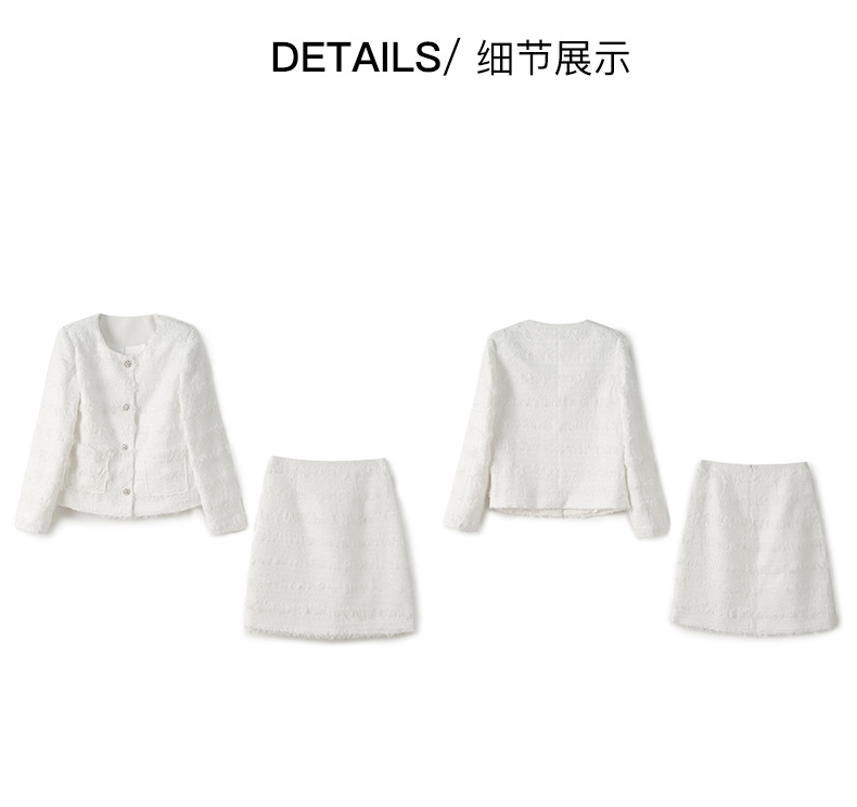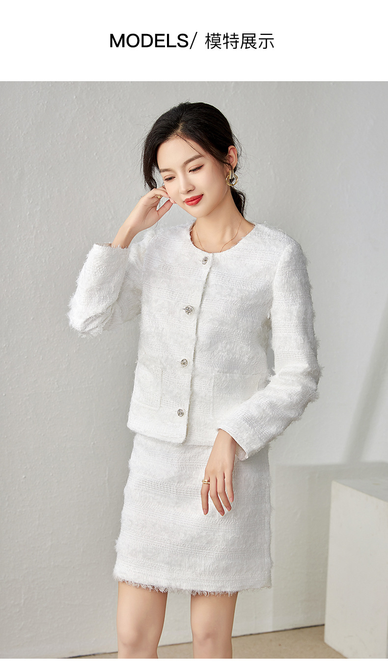 法式名媛,小香风套装羽毛纱通勤短外套+短裙两件套WLZD-23231409
