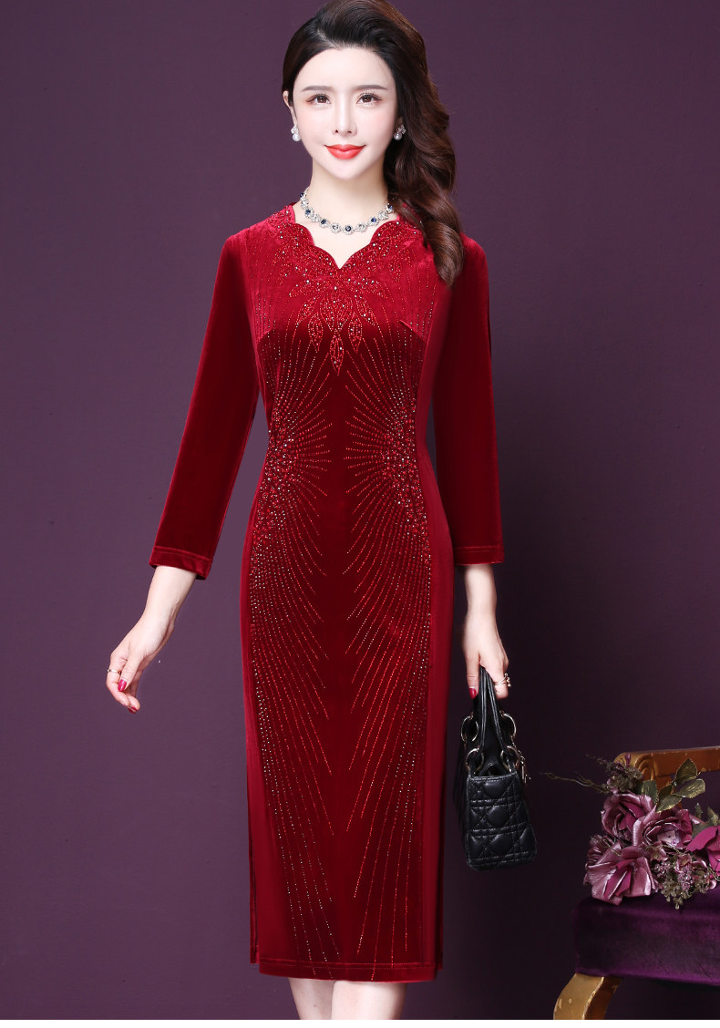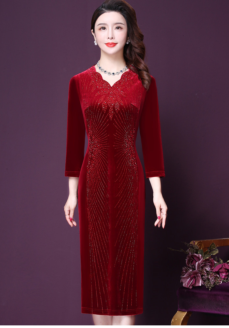 WXY-72650-1春季新款气质端庄大气优雅长款连衣裙