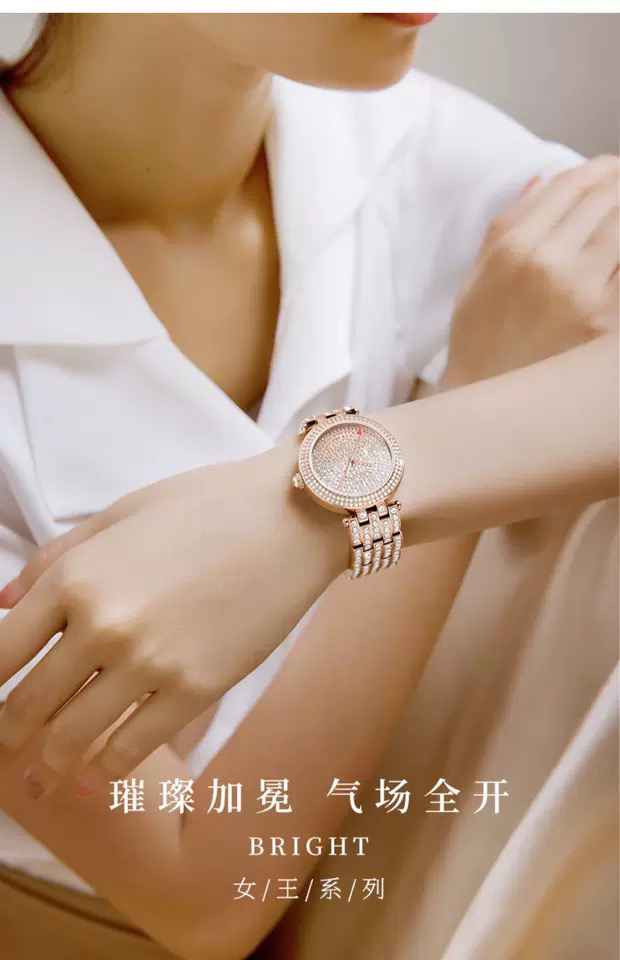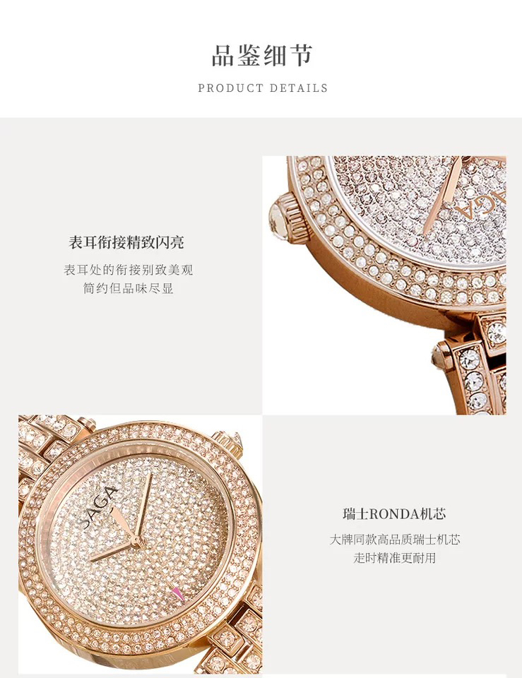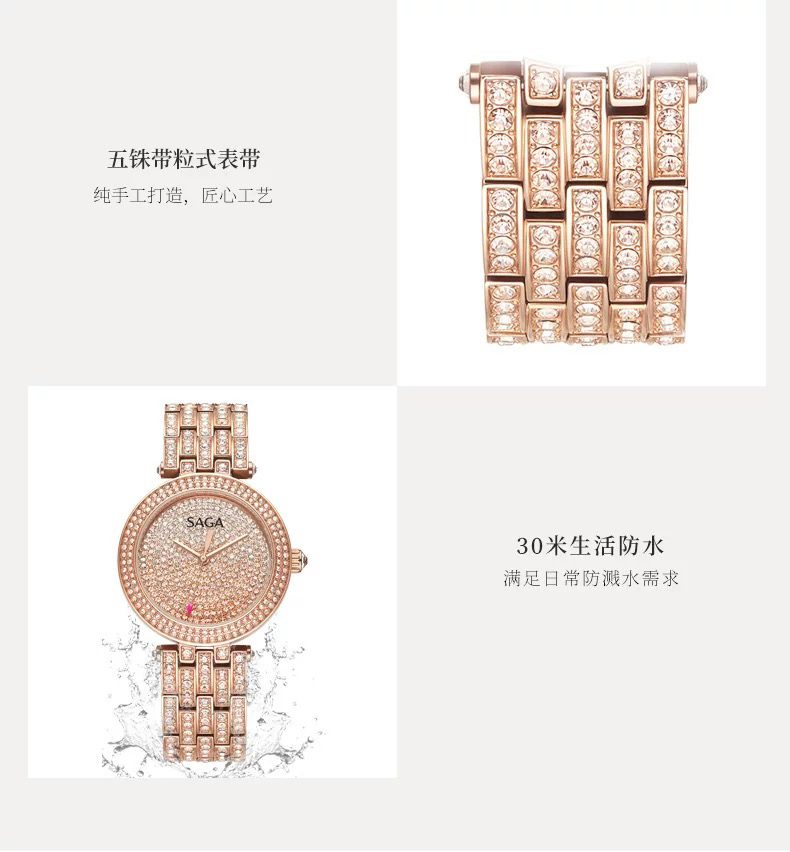 SAGA世家手表满钻女士腕表大表盘轻奢时尚潮流-银色