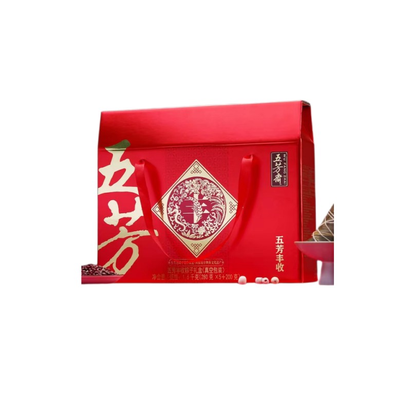 ①五芳斋五芳丰收粽子礼盒1.2kg【蛋黄猪肉粽100g*2、白玉香糯粽100g*2、家常赤豆粽100g*2 、 咖喱鸡肉粽100g*2、花生莲子粽100g*2、栗子猪肉粽100g*2】