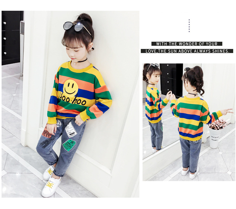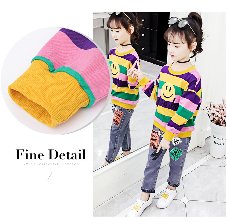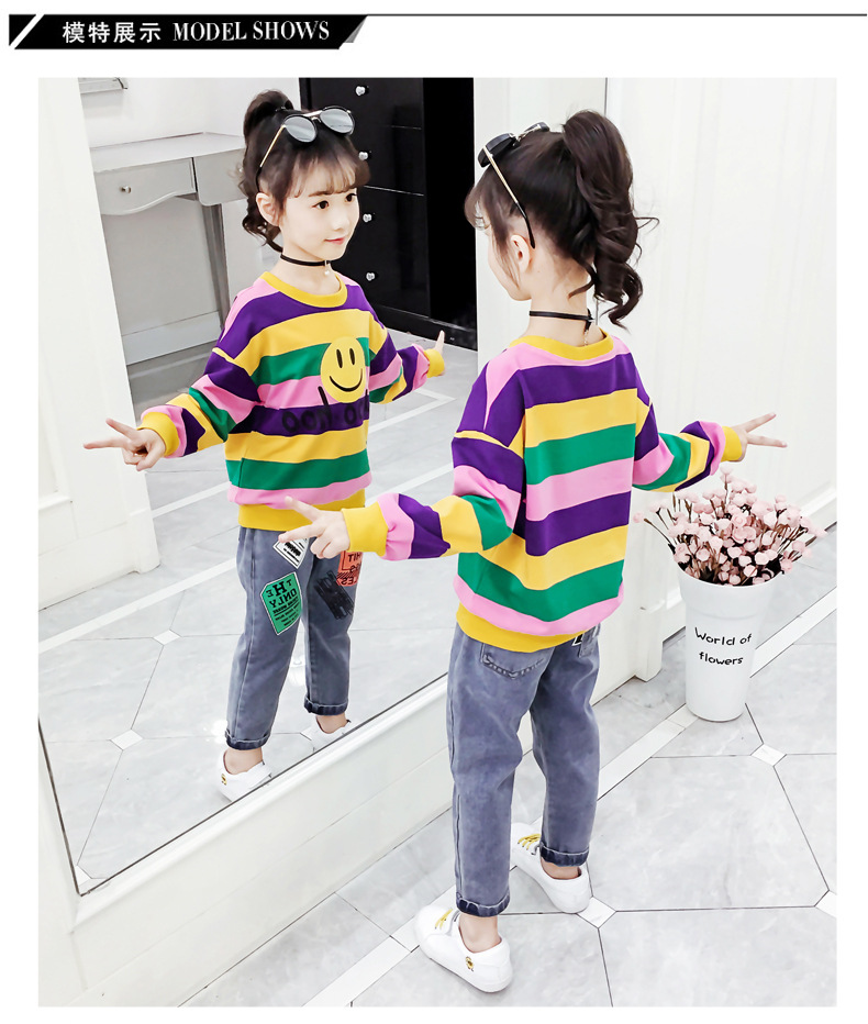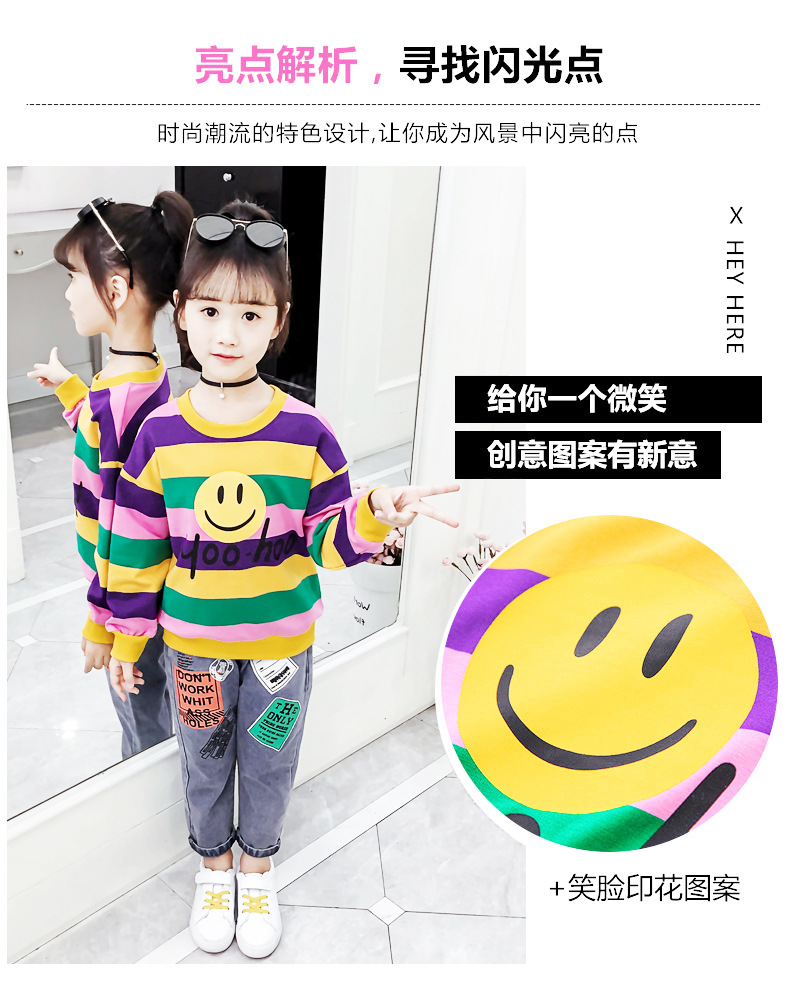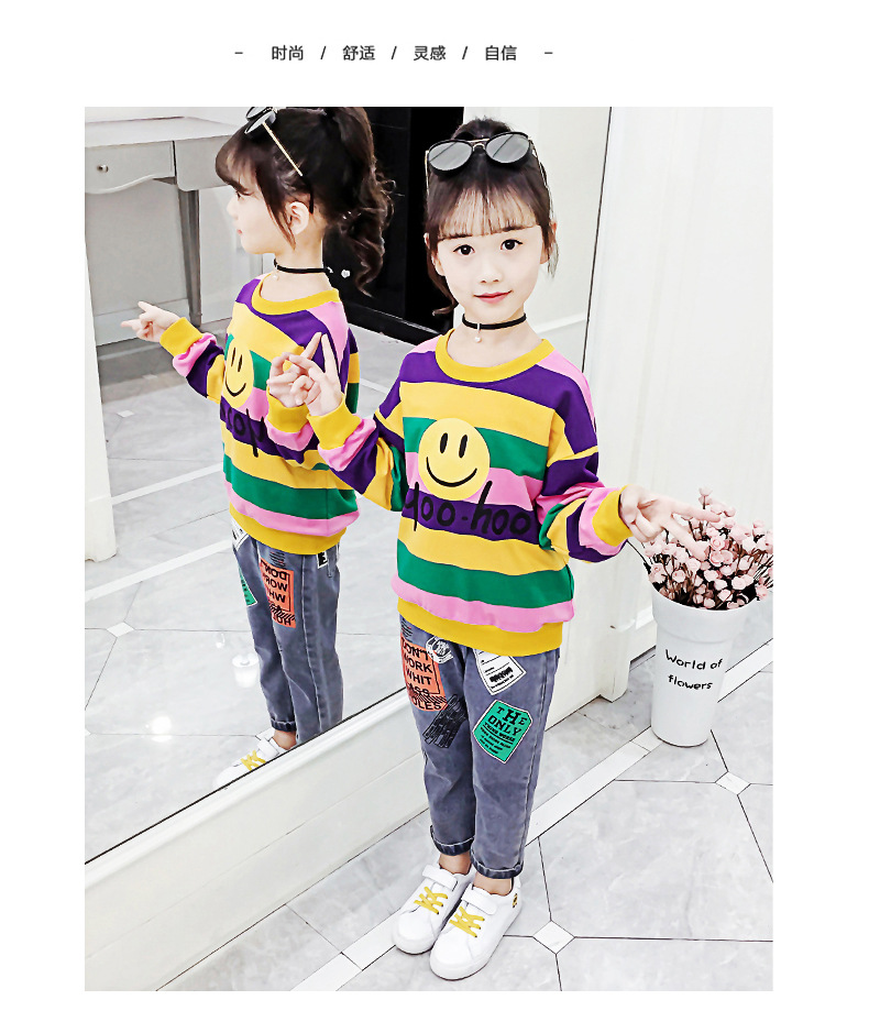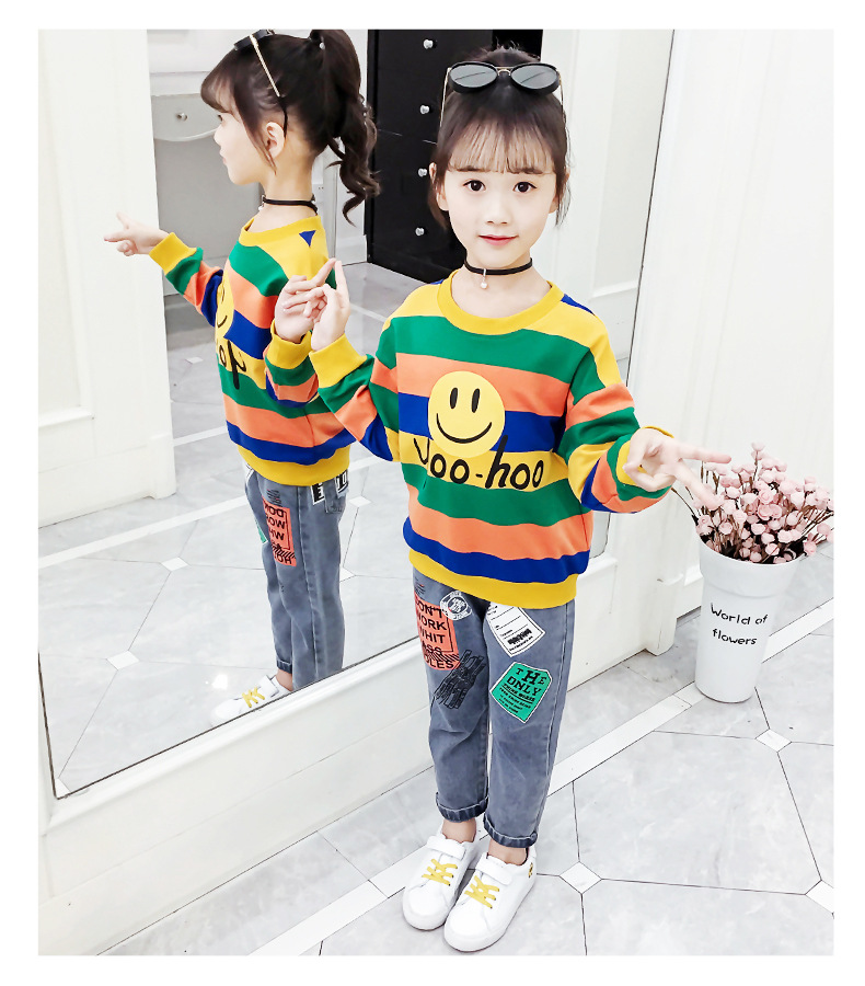 DK-T2019256新款韩版儿童洋气中大童时髦卫衣牛仔两件套TZW