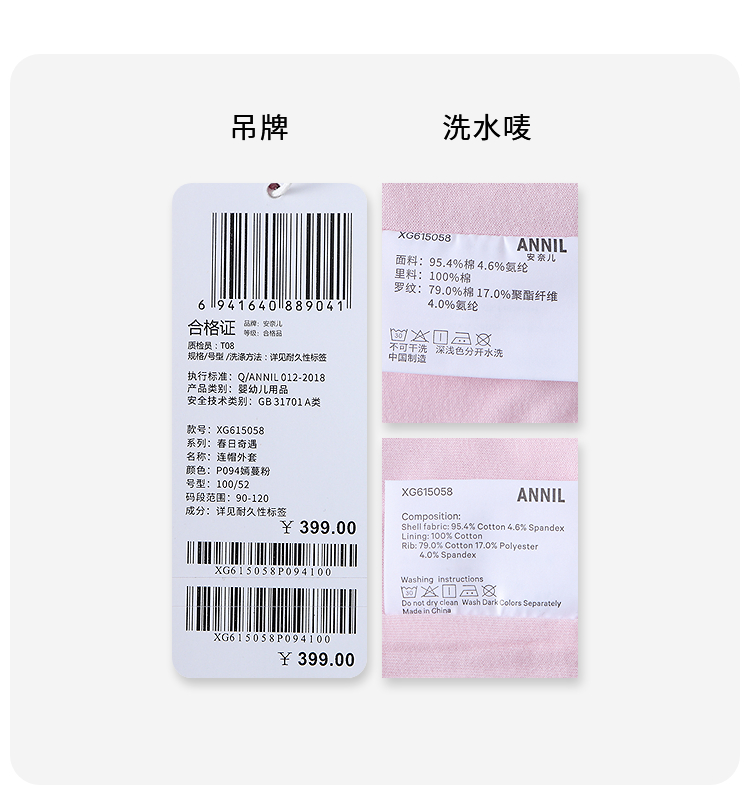 【实体店同款】女童连帽外套春季新款安奈儿童装XG615058