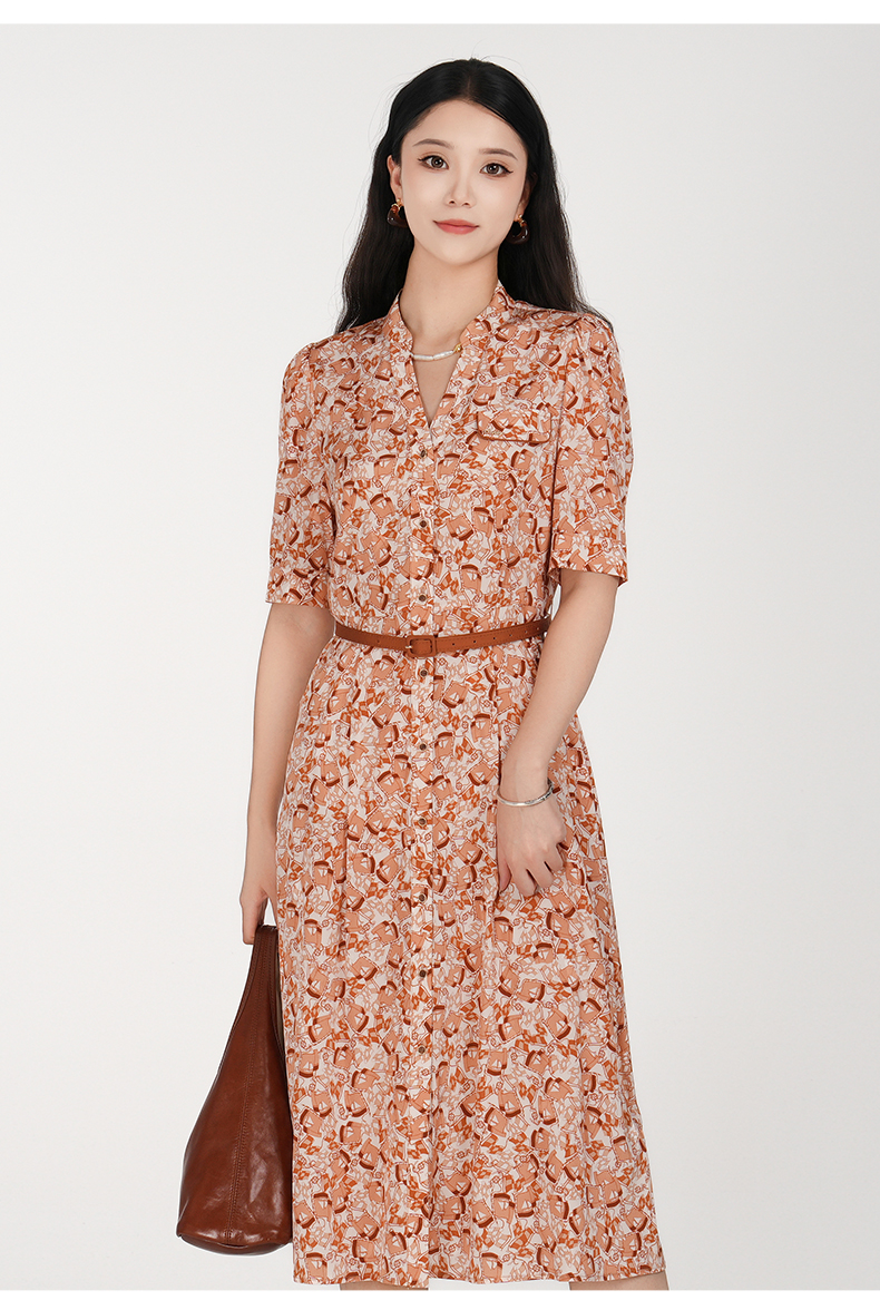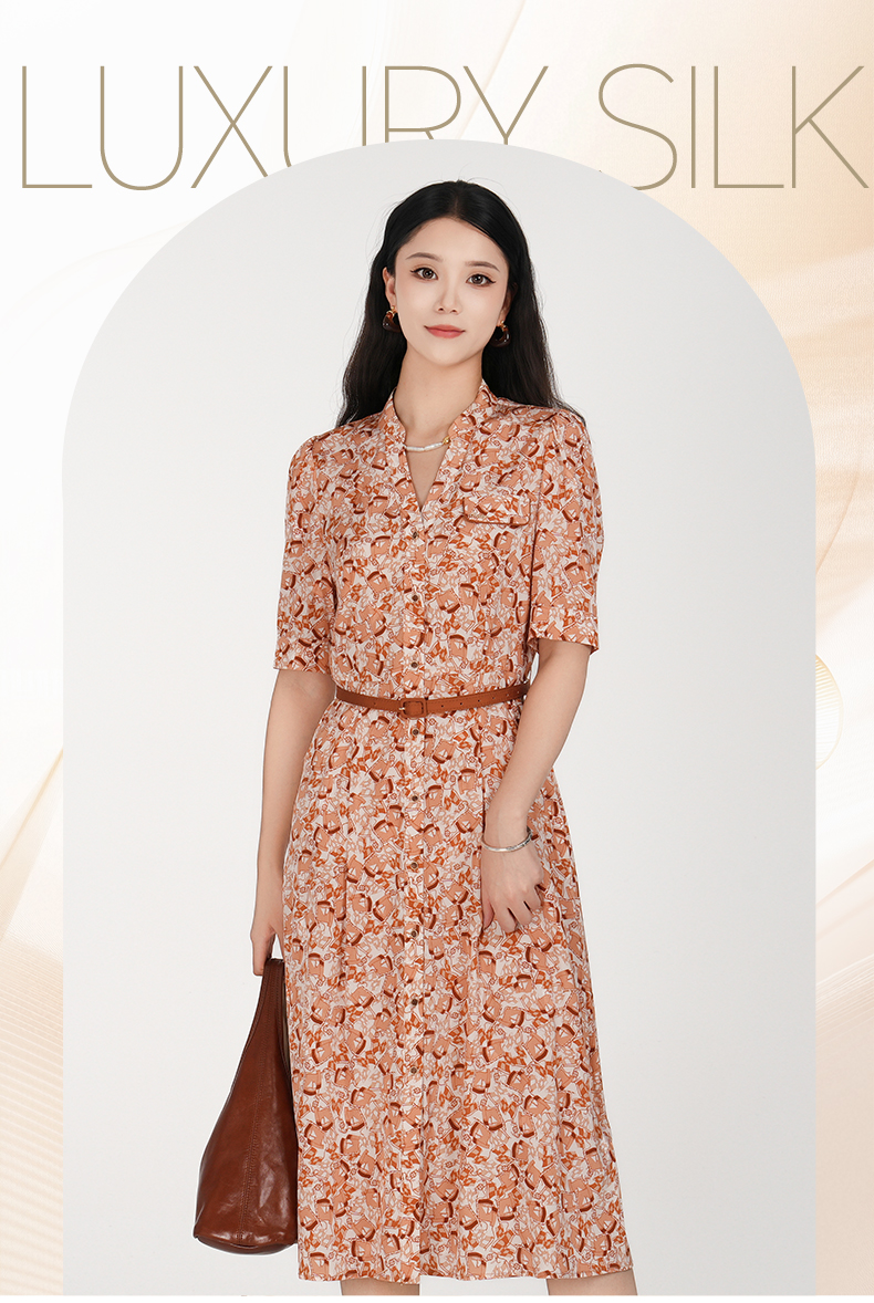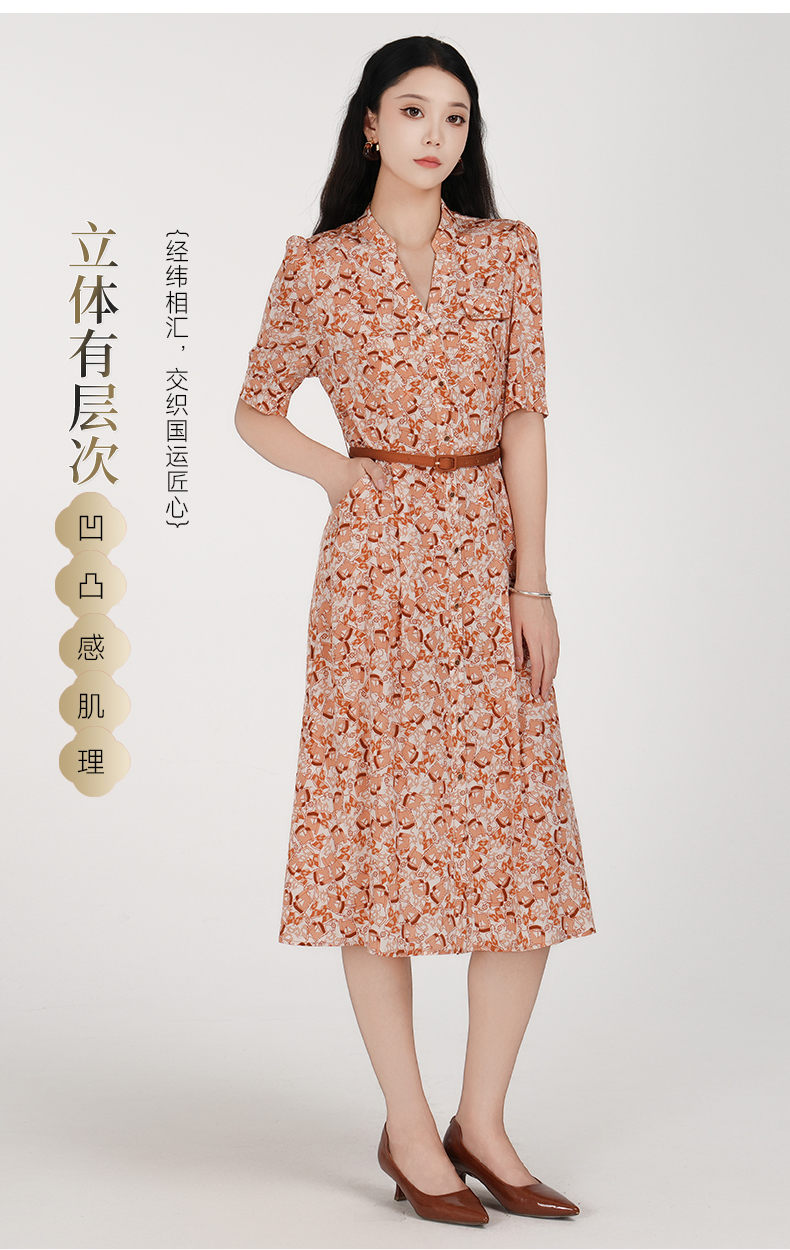 乔万尼新品X型提花V领设计真丝连衣裙ED2E500