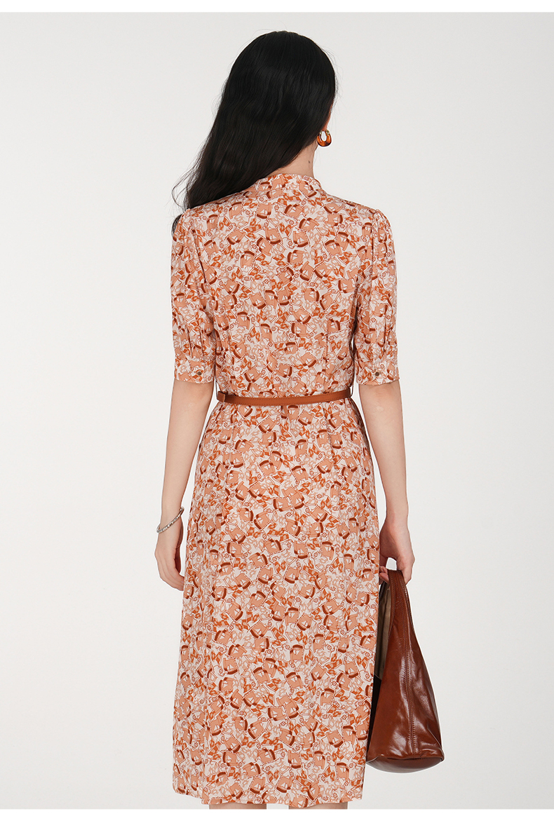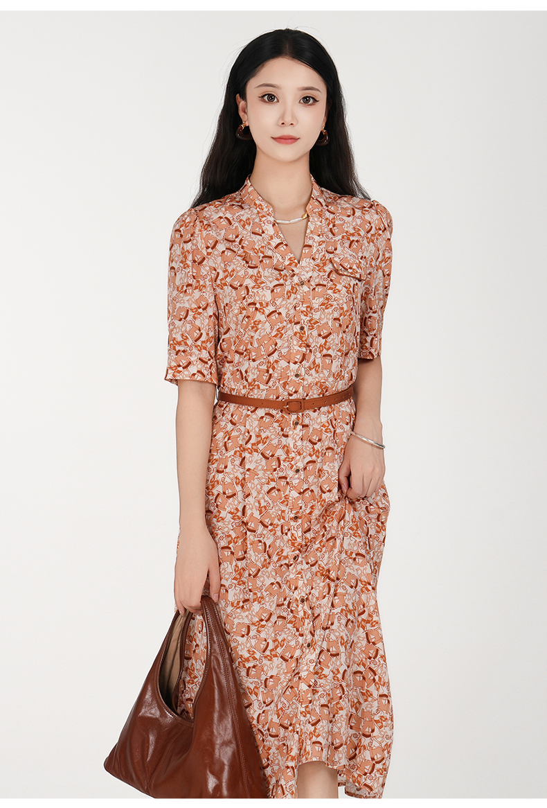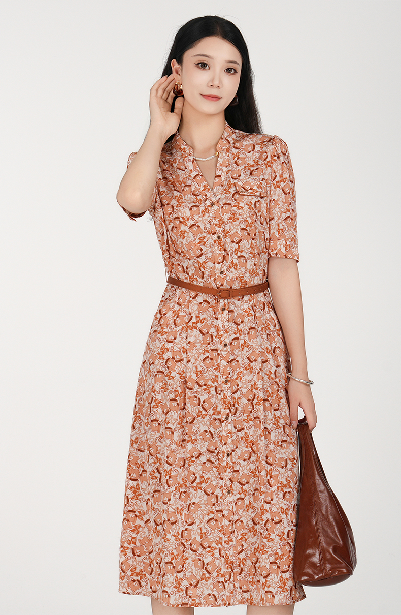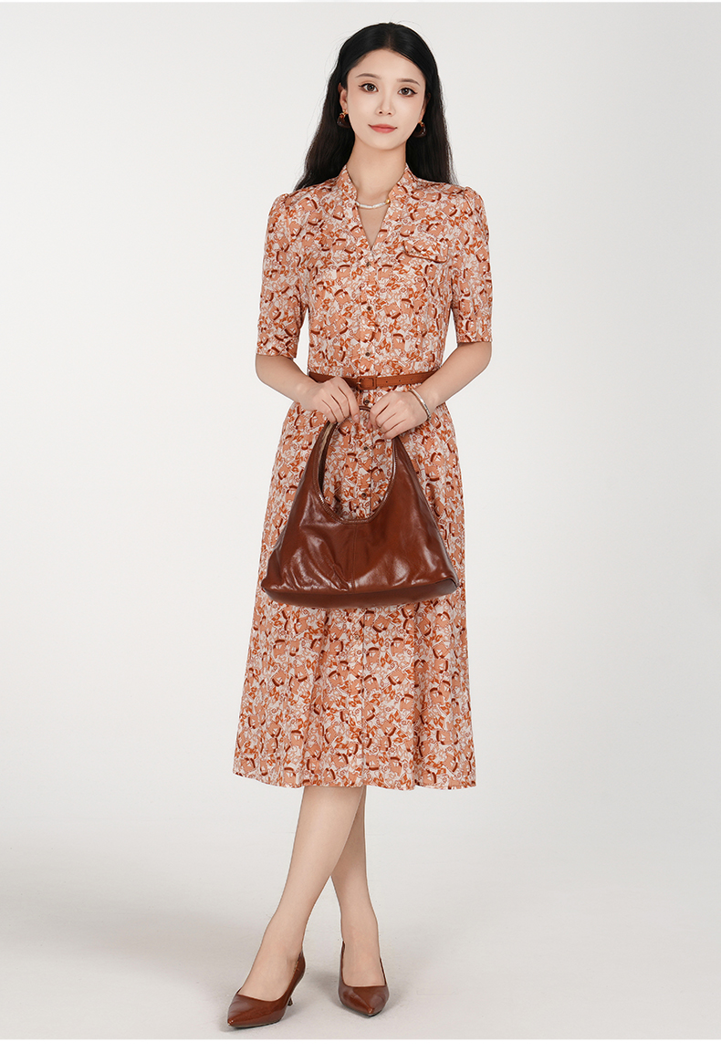 乔万尼新品X型提花V领设计真丝连衣裙ED2E500
