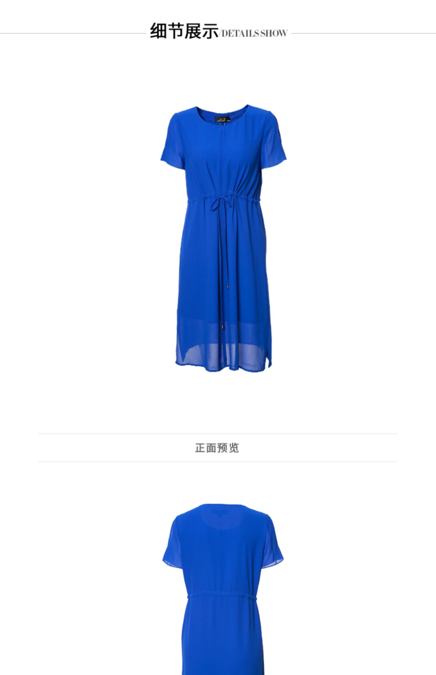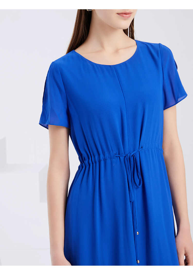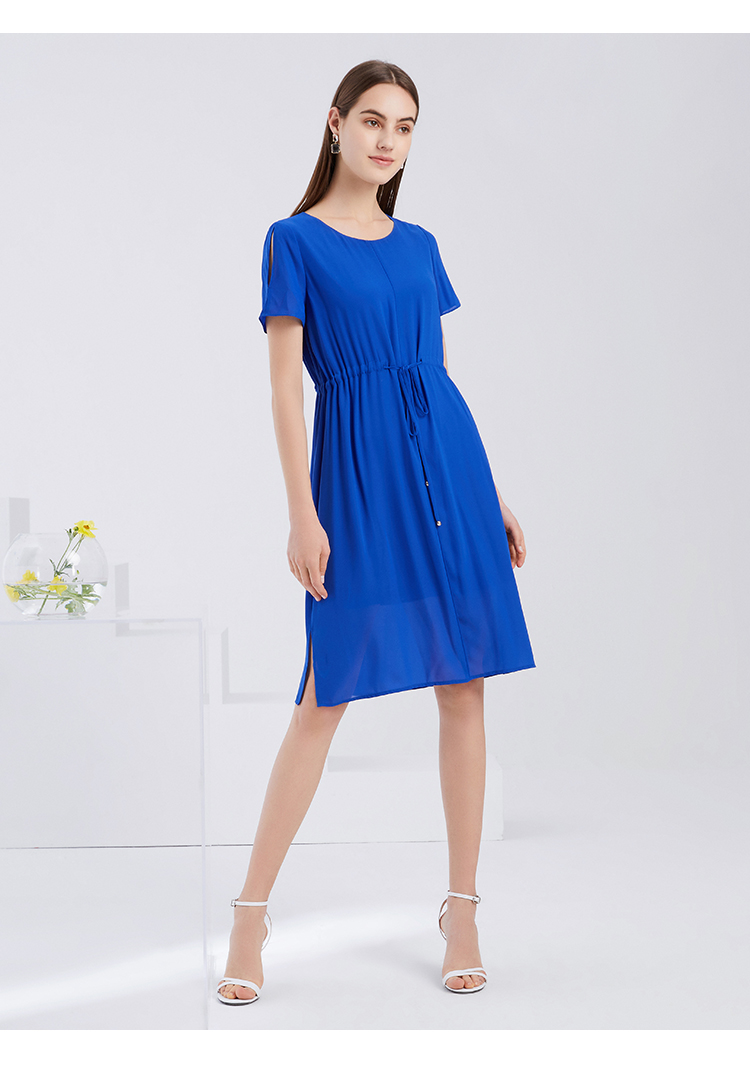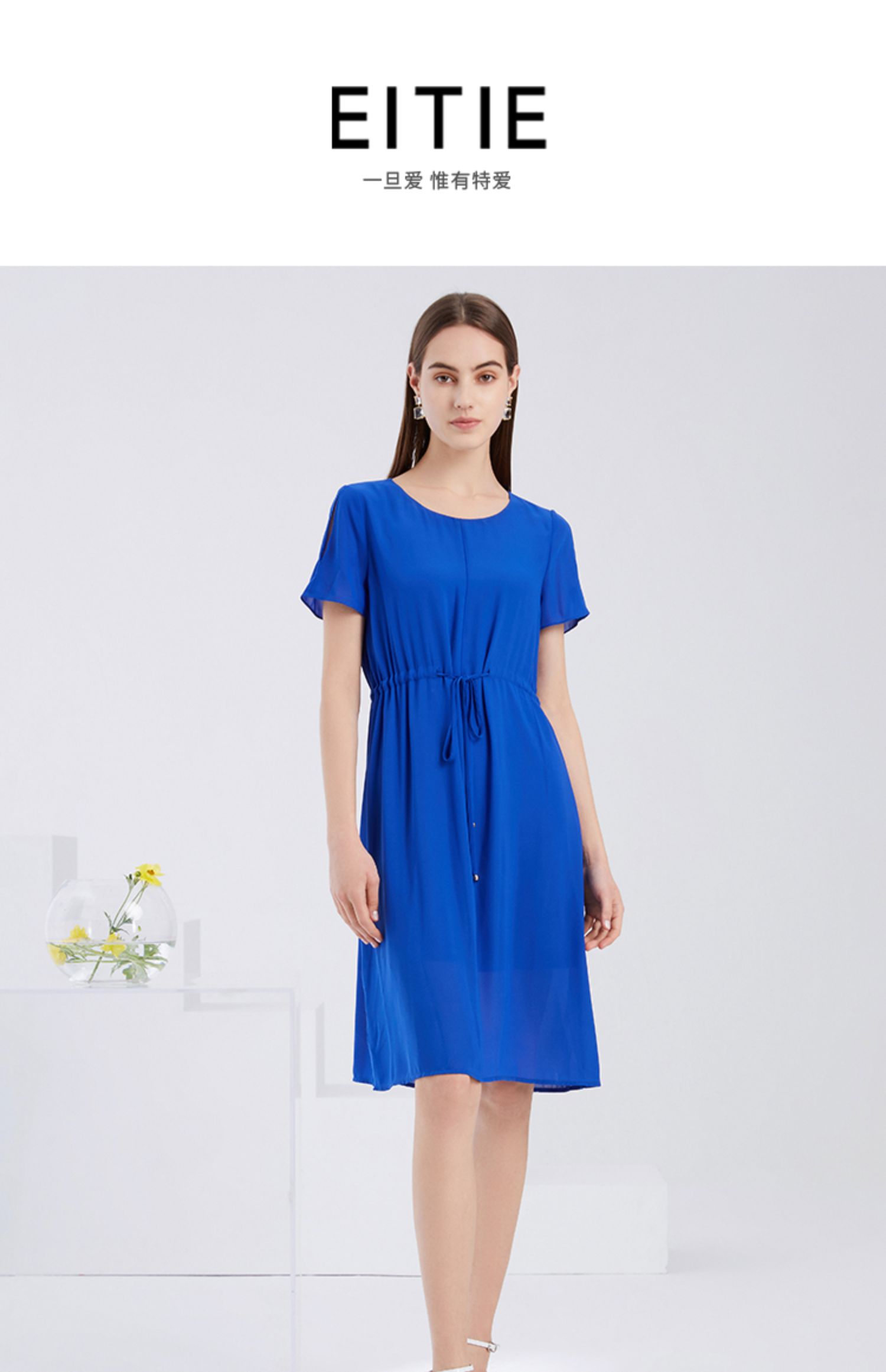 EITIE爱特爱夏季新款宽松舒适通勤简约抽绳收腰直筒连衣裙女6207968