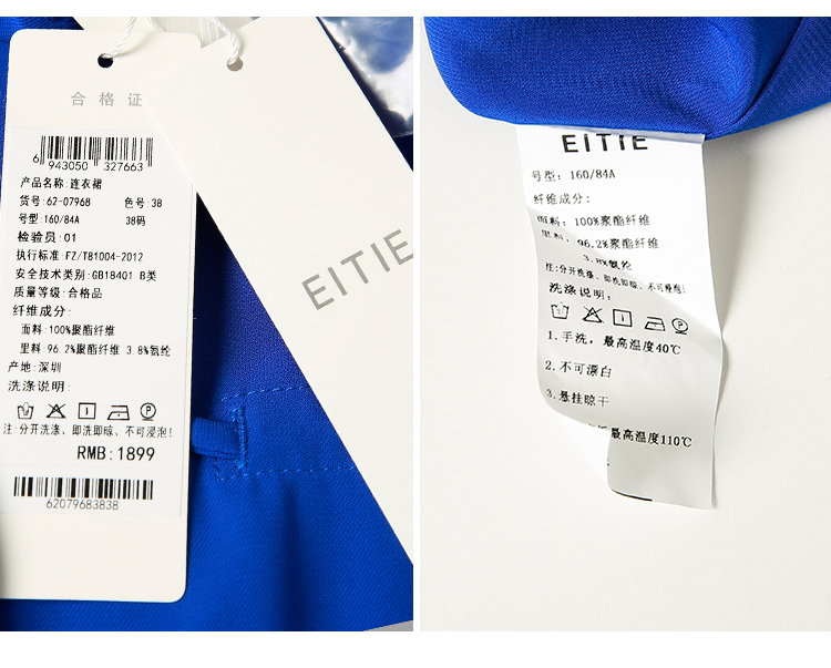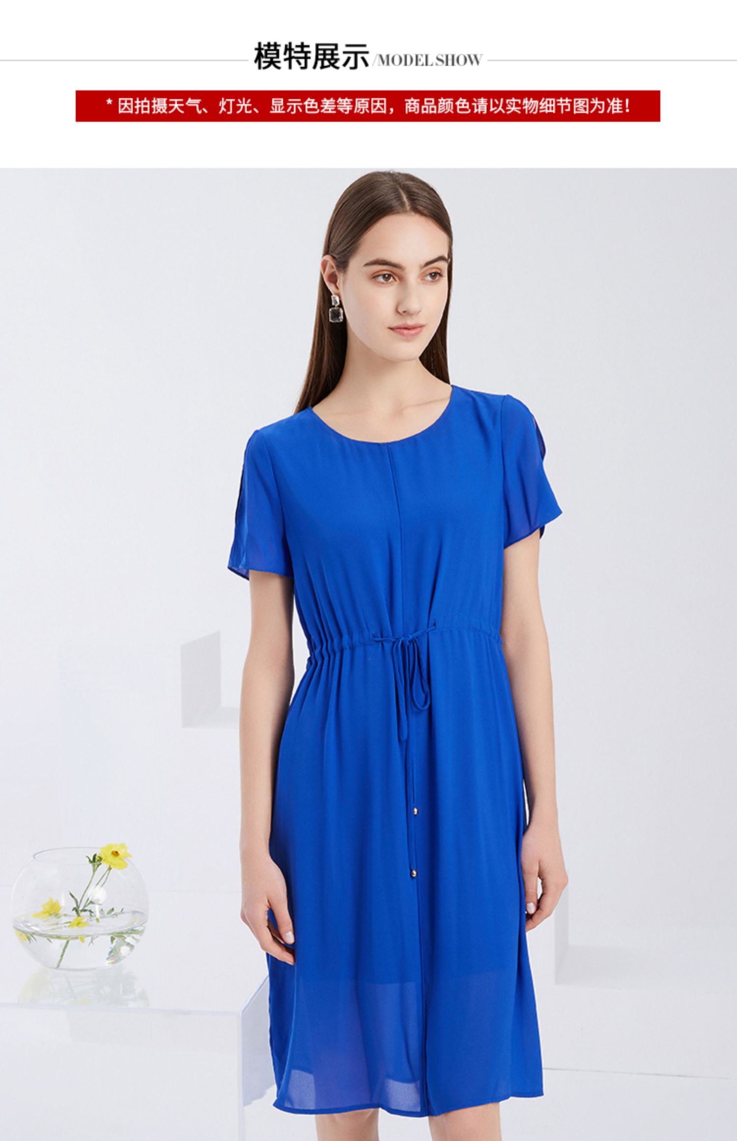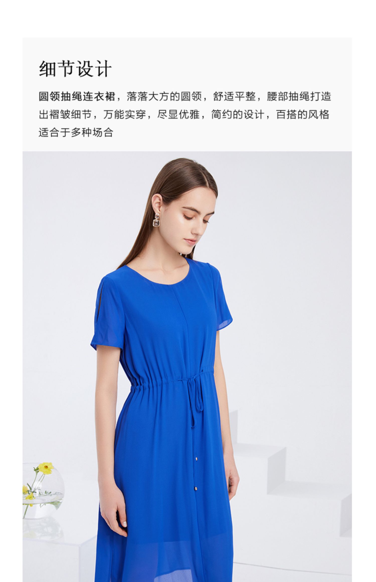 EITIE爱特爱夏季新款宽松舒适通勤简约抽绳收腰直筒连衣裙女6207968