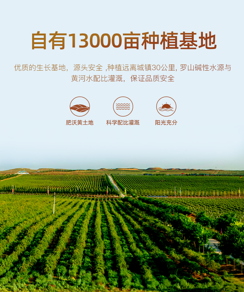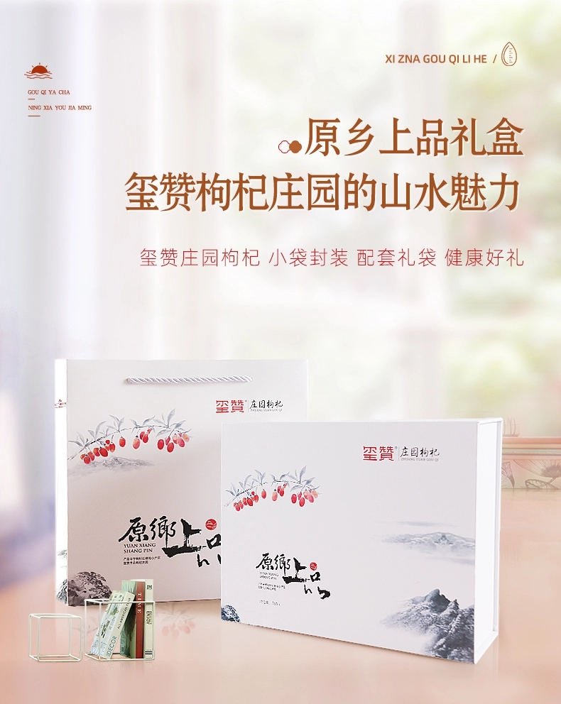 玺赞公司位于中国枸杞之乡—宁夏中宁县。在中宁枸杞红柳沟小产区建高标准枸杞种植基地一万三千亩—玺赞生态枸杞庄园,实现了研发、种植、加工、营销、文旅、生态“六位一体”的现代枸杞全产业链企业,本店是玺赞微店