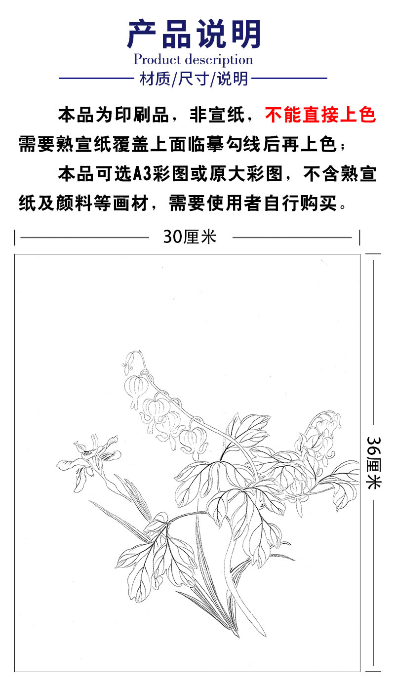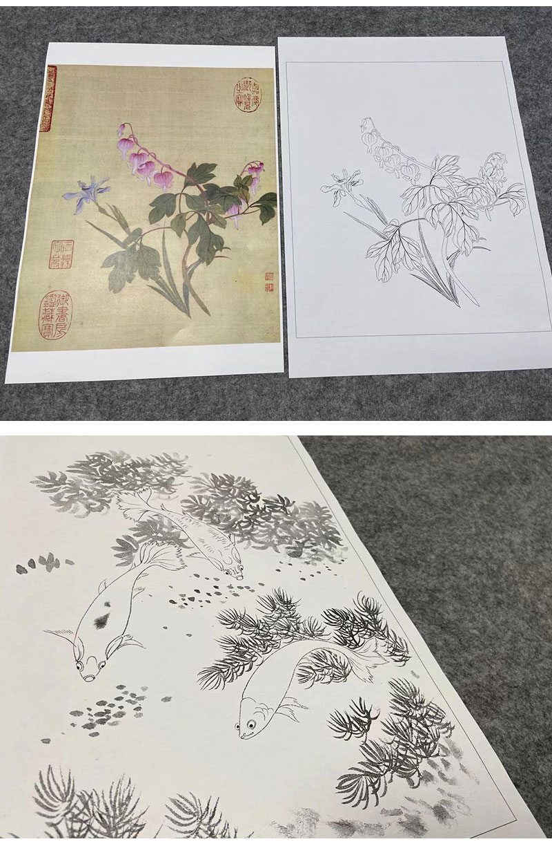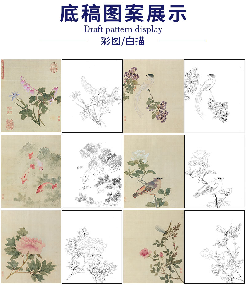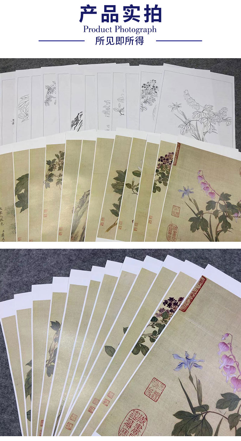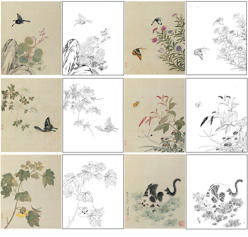 蒋廷锡工笔花鸟画白描底稿设色勾染图册小品一套十二幅册页尺寸30*36厘米MT11