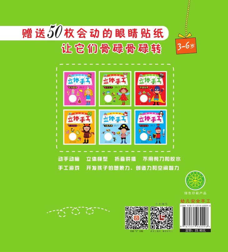 《幼儿创意立体手工趣味玩具》是一套可以让宝宝动手动脑的手工,不用剪刀不用胶水,既安全又方便。一套共六本,内容都是孩子们生活中常接触且感兴趣的东西。宝宝在动手操作的时候爸爸妈妈也可以参与进来,和宝宝一起完成手工游戏。
