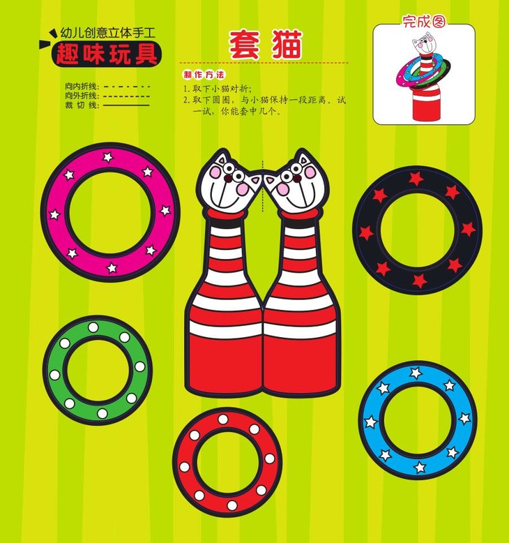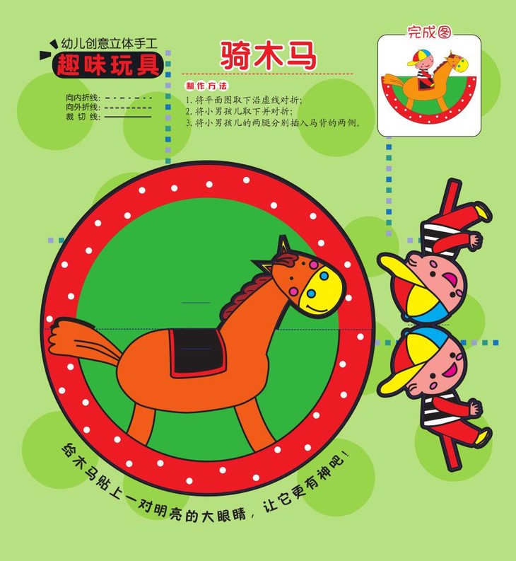 本书的主题是《趣味玩具》,孩子可以将生活中常见的小玩具,小摆件自己动手制作出来,这里有会跳舞的娃娃和会滑雪的猫头鹰,会做游戏的袋鼠和会藏猫猫的小猴。