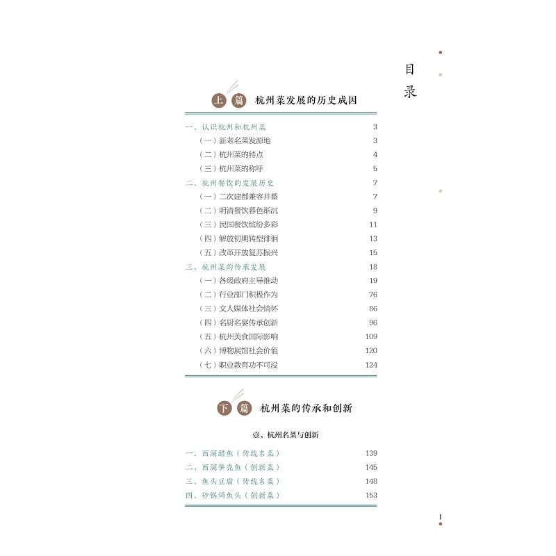 下篇选取81款杭州菜,解析其制作过程,加上二维码视频的立体呈现,系统解构名菜的制作精髓,充实了名菜的传说典故。不仅还原古法技艺的关键细节,还附以原料的选购要求和标准化鉴评体系,同时收录名厨精英的创新实践,通过具体菜式的演变轨迹,展现传统与现代碰撞的多元可能,为青年厨师提供可借鉴的创新案列。