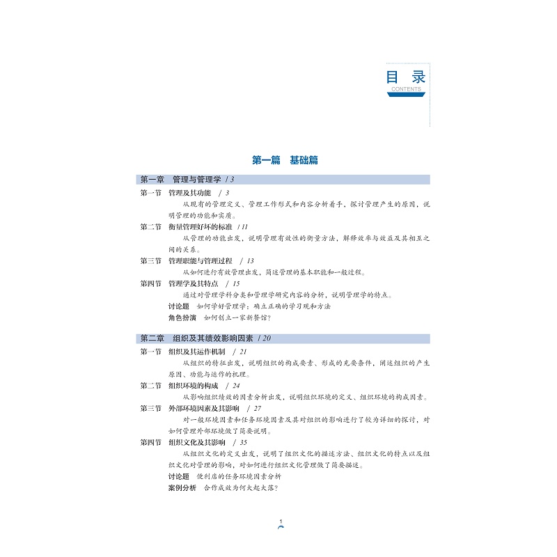 本书共15章,围绕“管理者如何有效地管理其组织”这一主题,着重就管理和组织是什么、管理者是干什么的、组织绩效受哪些因素的影响、有哪些主要的管理流派等基本问题和如何进行计划、组织、领导、控制等管理基本工作,以及管理创新,进行了理论结合实际的系统论述。