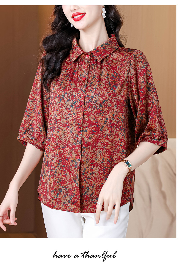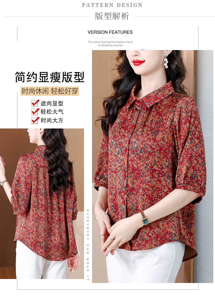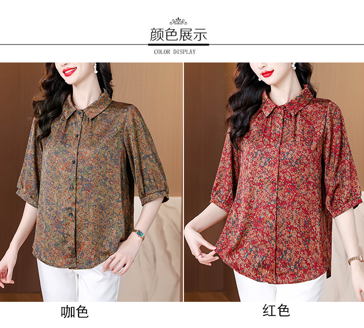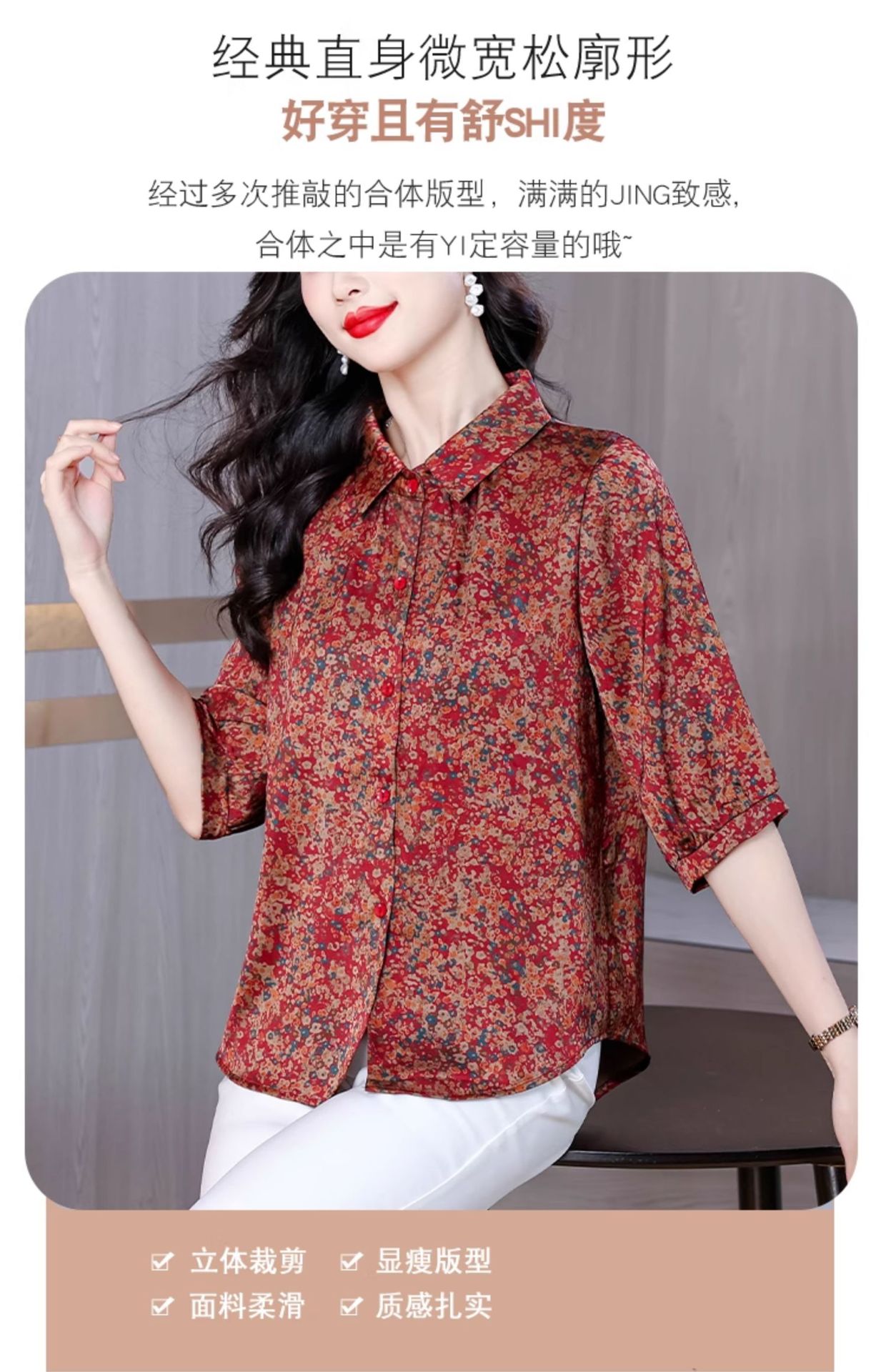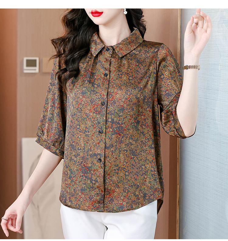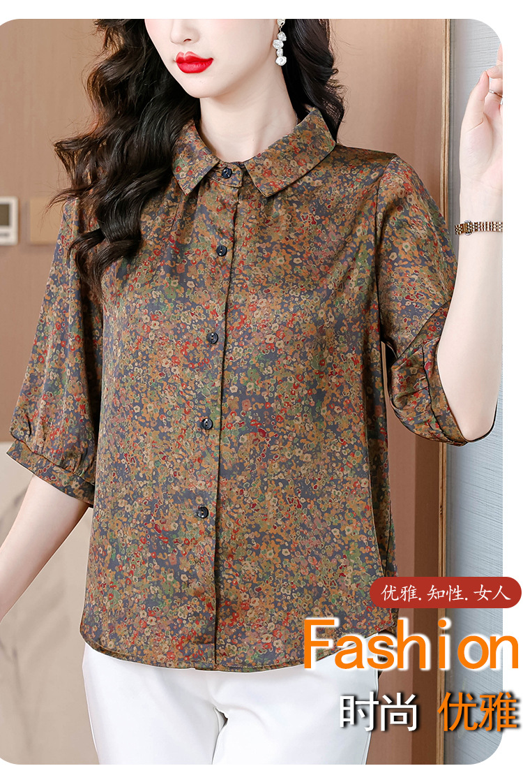 MZ18939高端复古碎花七分袖衬衫女夏装新款气质宽松小衫洋气妈妈遮肚上衣