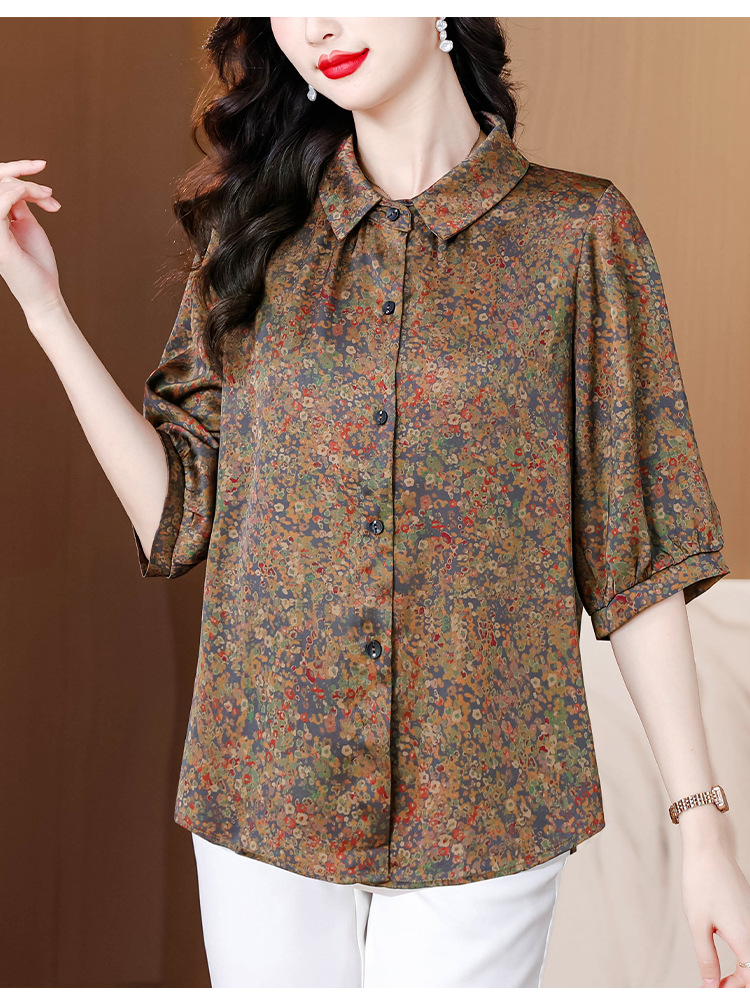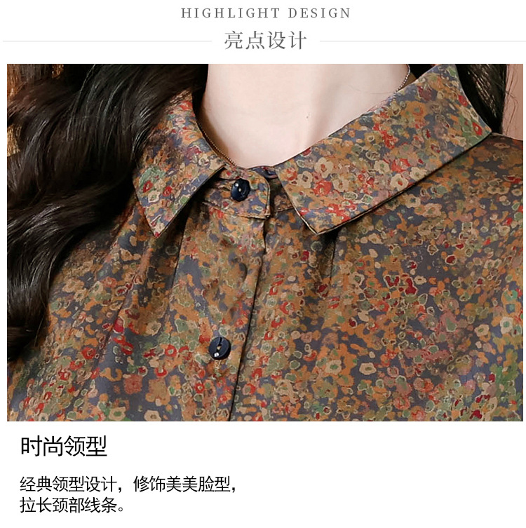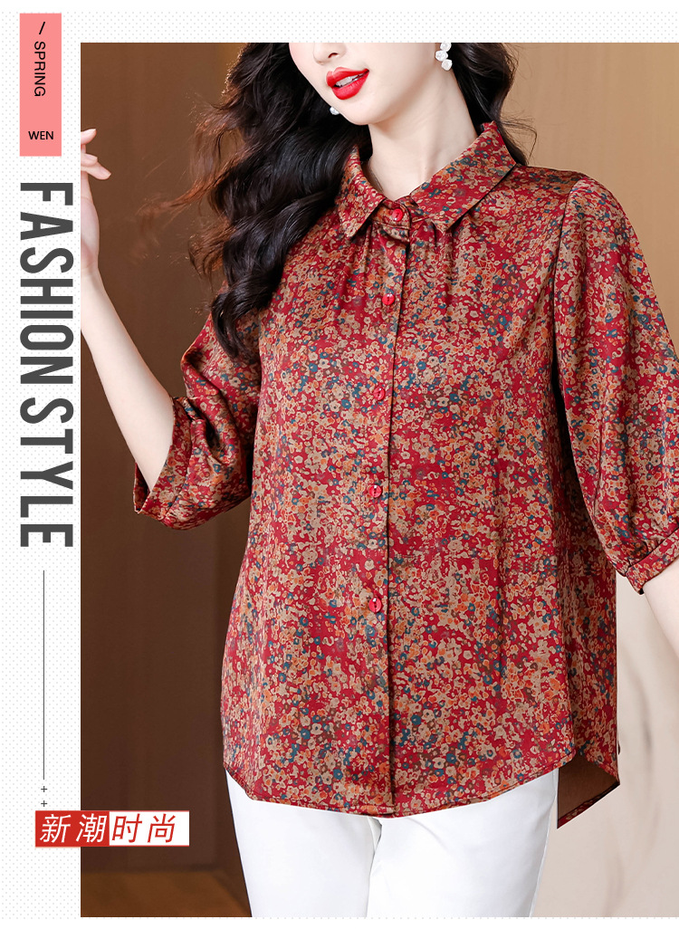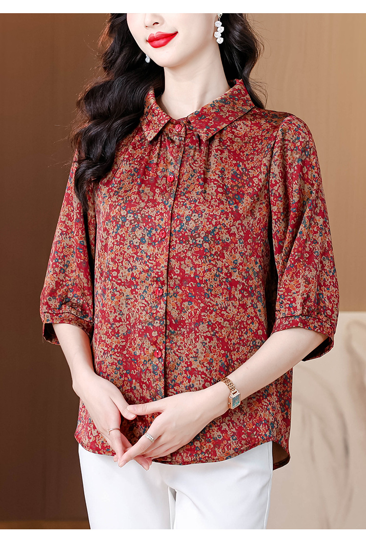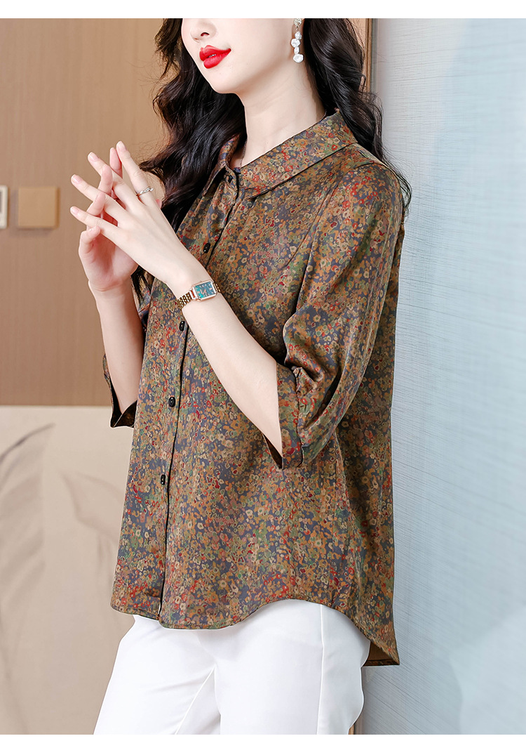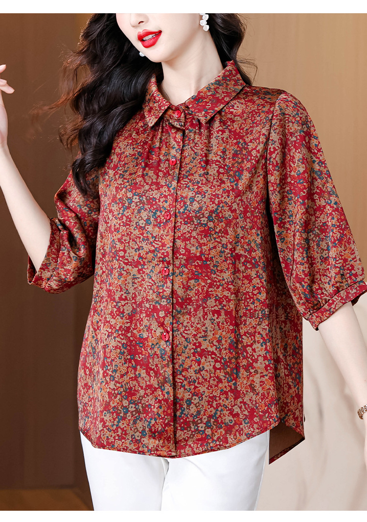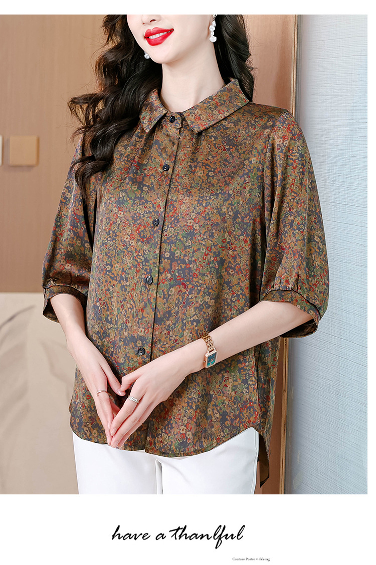 MZ18939高端复古碎花七分袖衬衫女夏装新款气质宽松小衫洋气妈妈遮肚上衣