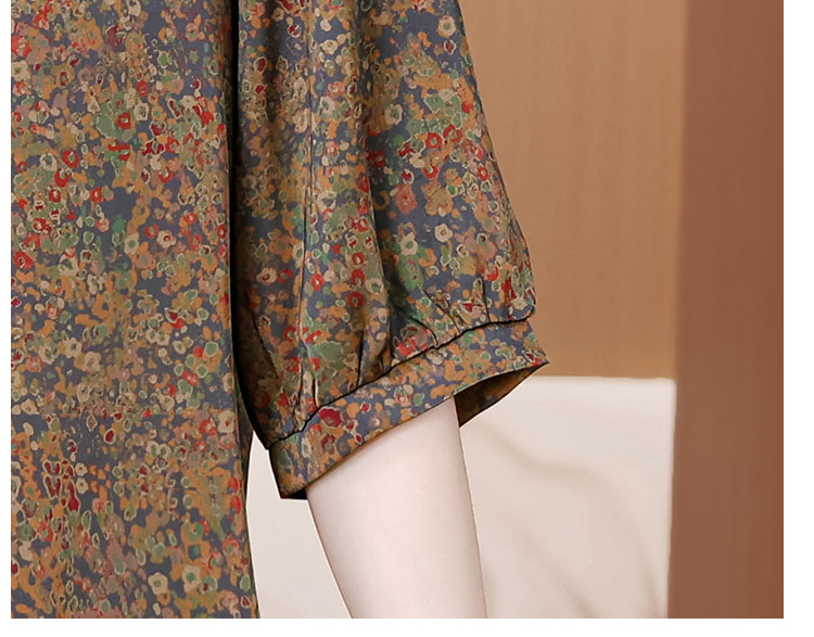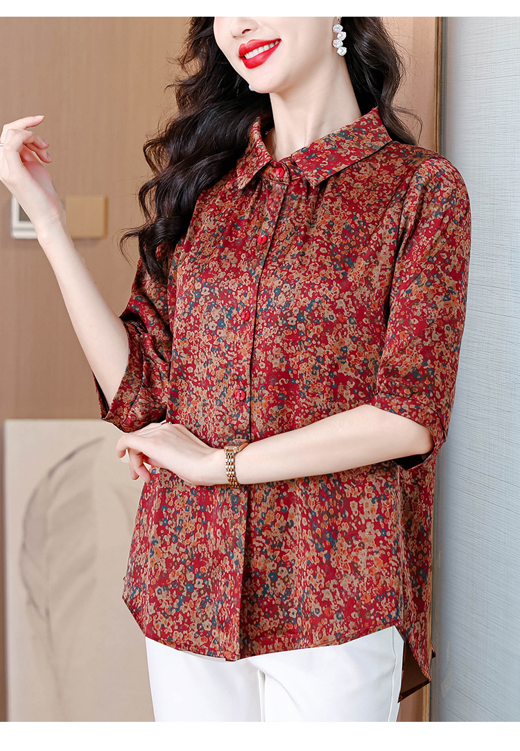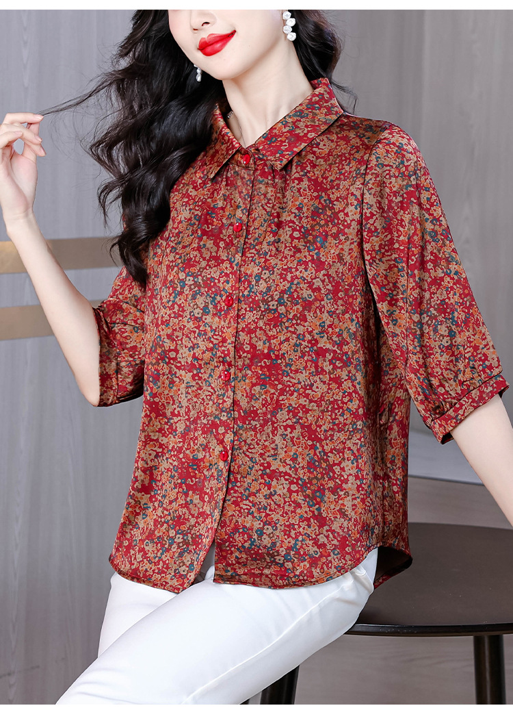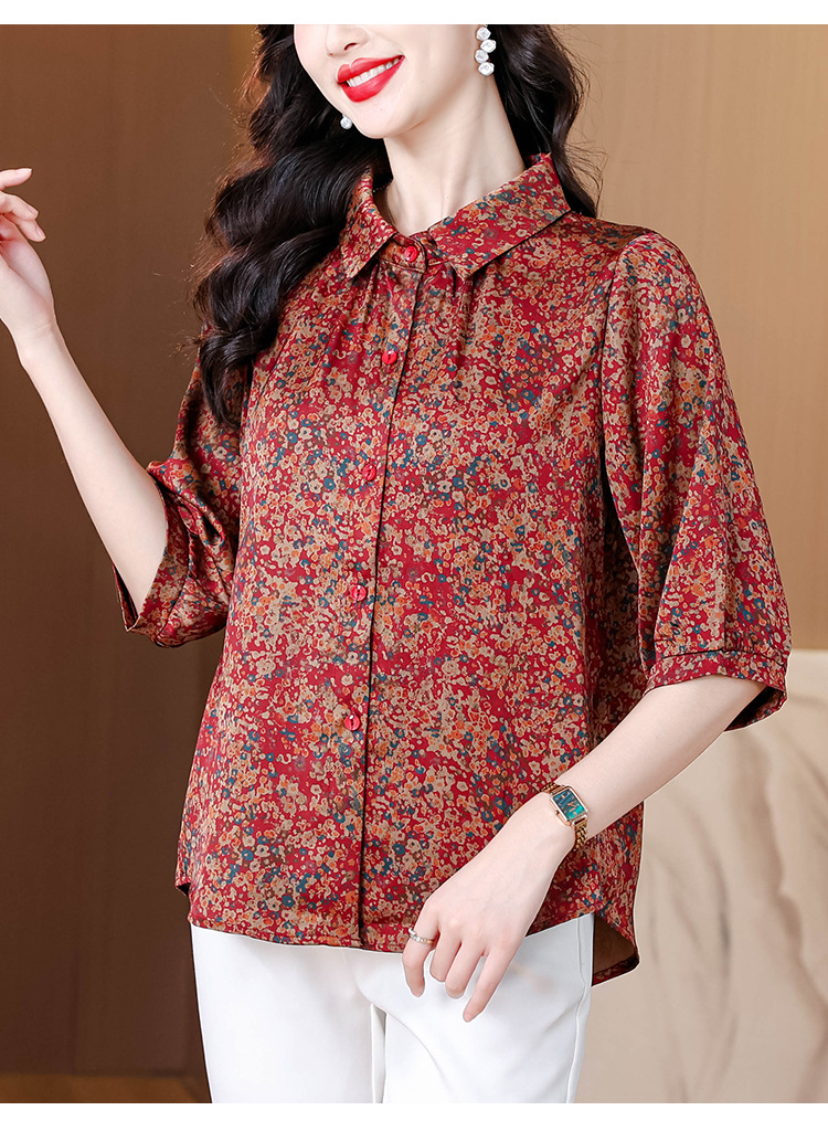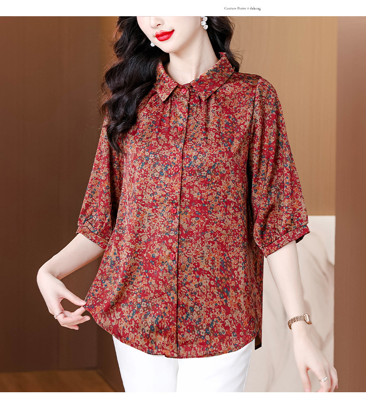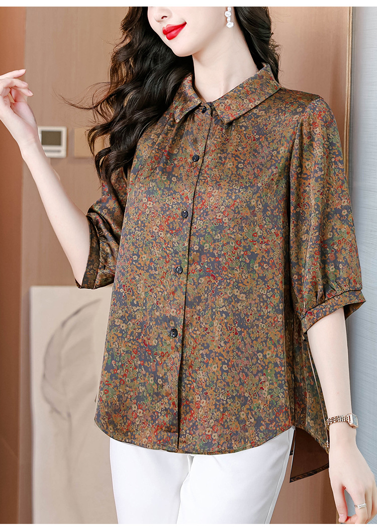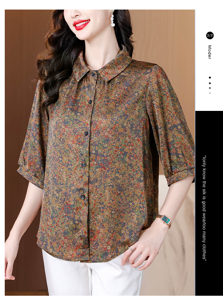 MZ18939高端复古碎花七分袖衬衫女夏装新款气质宽松小衫洋气妈妈遮肚上衣