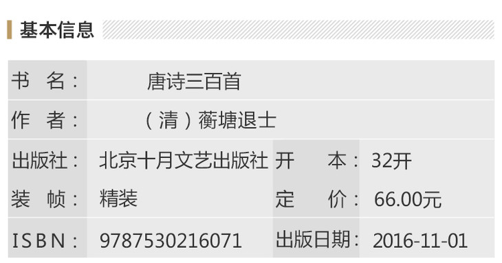 本书采用的是清文学家蘅塘退士(孙洙)《唐诗三首》的选本,篇目、排序一概未动。翻译成新诗是本书的重点。为了读者阅读和理解方便,还增加了诗人简介、对原作思想与艺术特色简要平析的“说明”,以及词语典故的注释。本书由吴坤定、陶文鹏、张厚感三位先生合作完成,但大体上又有分工,因而在翻译风格上自然有所差异。有的译作,在诗行乃至用韵上尽可能贴近原诗;有的则驰骋想象,作了一些合理的发挥。这样也是考虑到无须人为地设定一个模式,避免篇一律,希图达到清新活泼、“异彩纷呈”的效果。