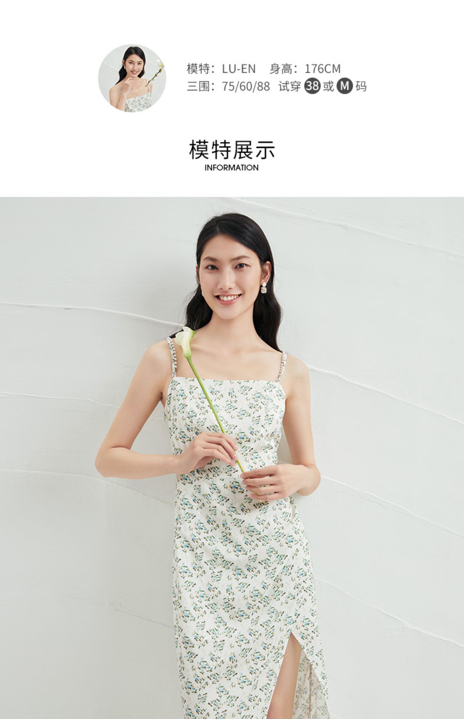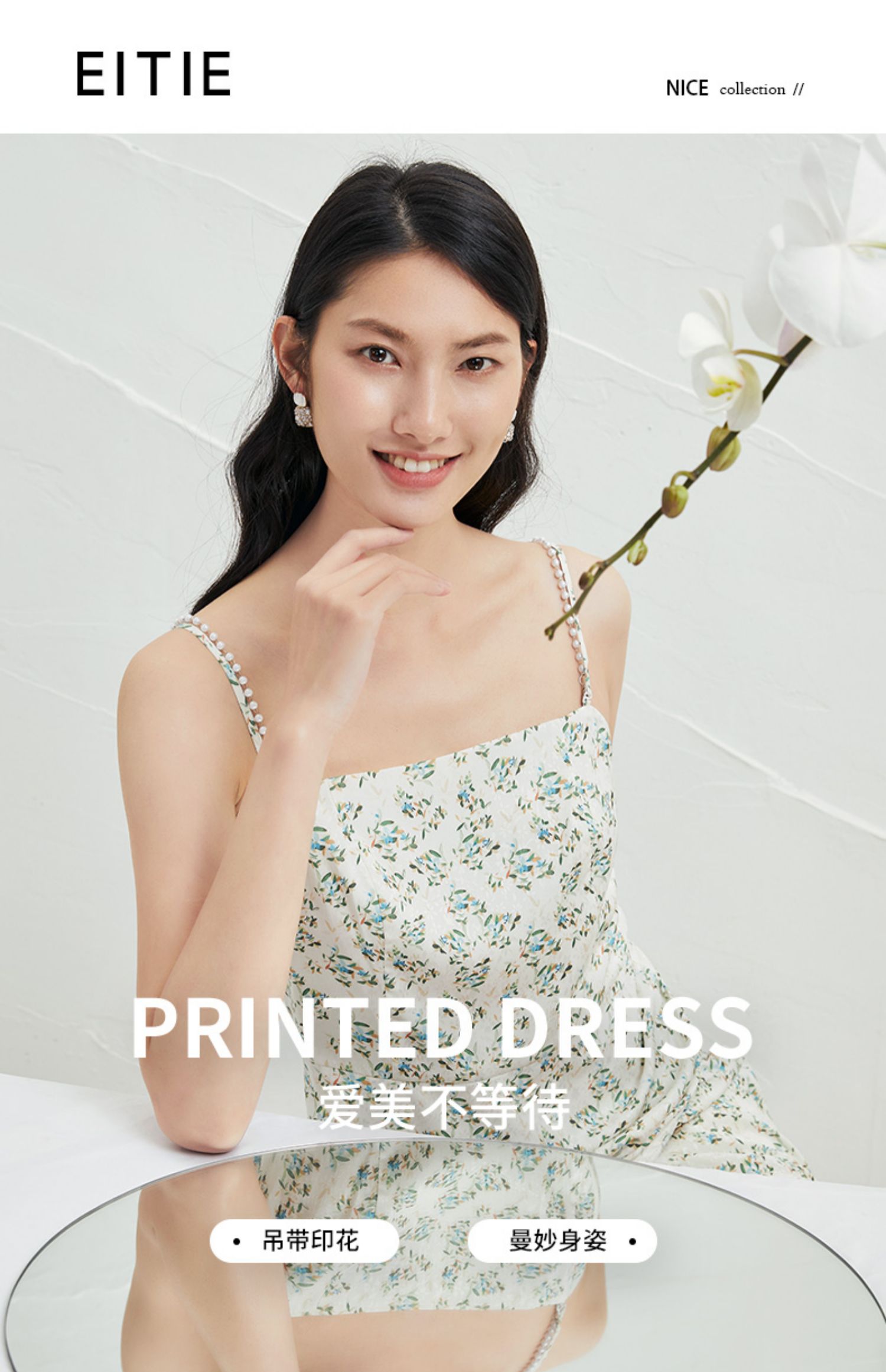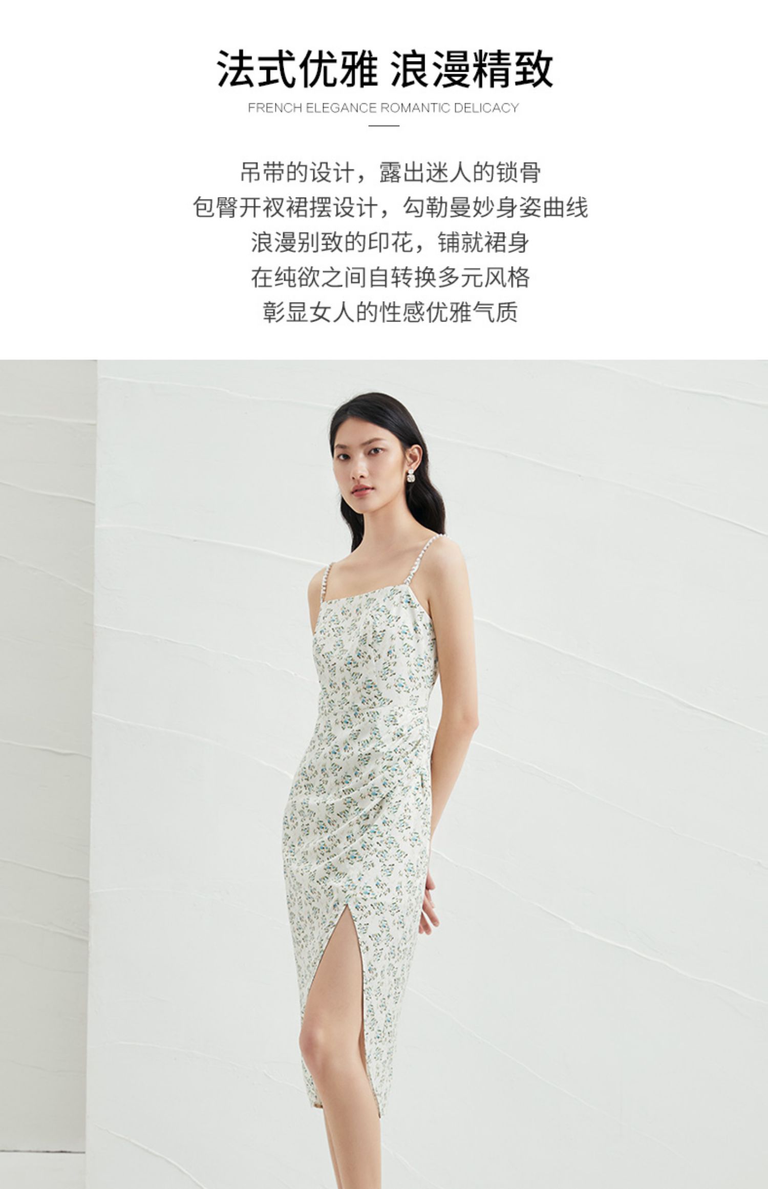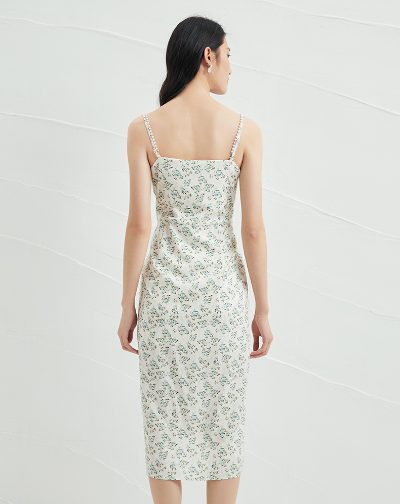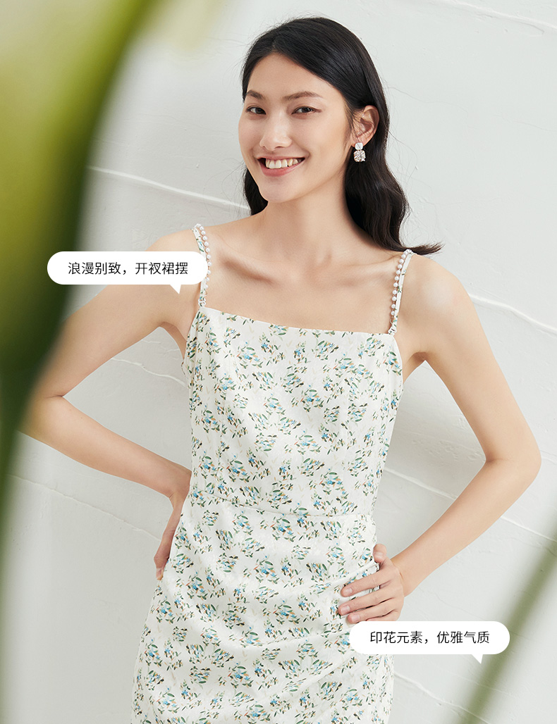 EITIE爱特爱夏新款气质显瘦修身时尚性感碎花开叉吊带连衣裙B2207972