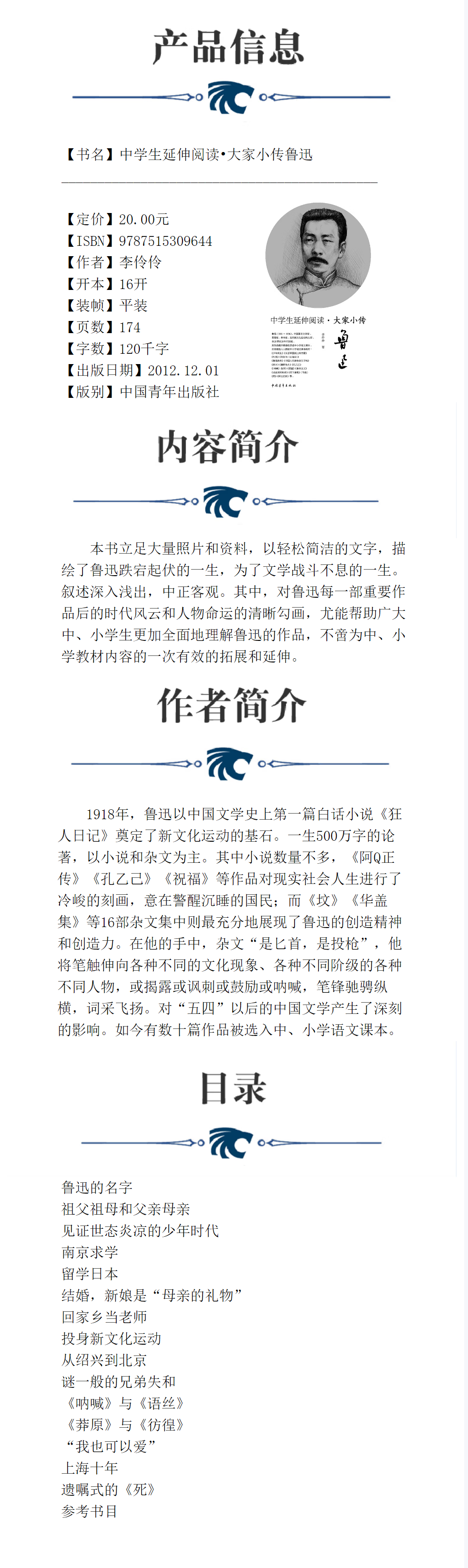 中学生延伸阅读•大家小传鲁迅 李伶伶著 中国青年出版社