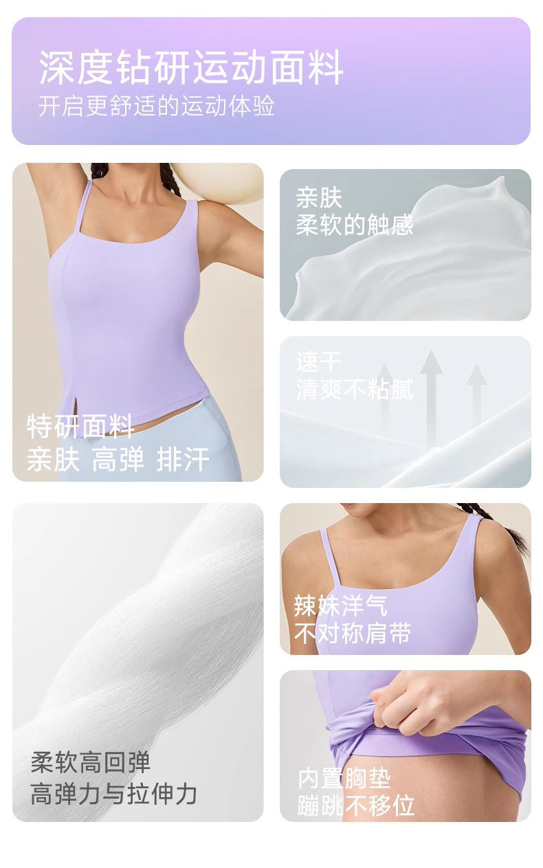 跃牌【欲动春风】系列 瑜伽吊带背心女裸感透气带胸垫外穿运动背心跑步健身上衣24060