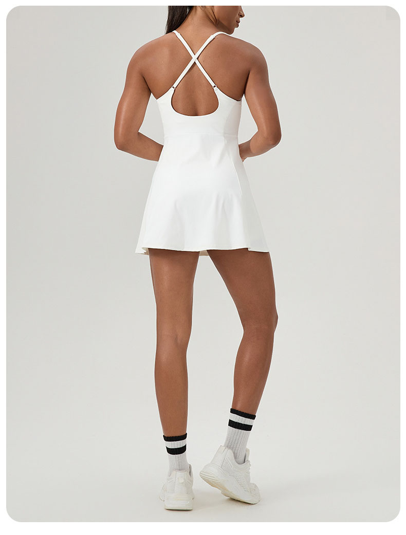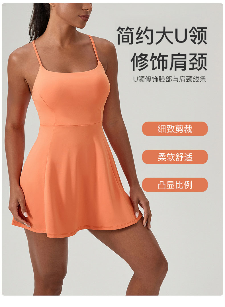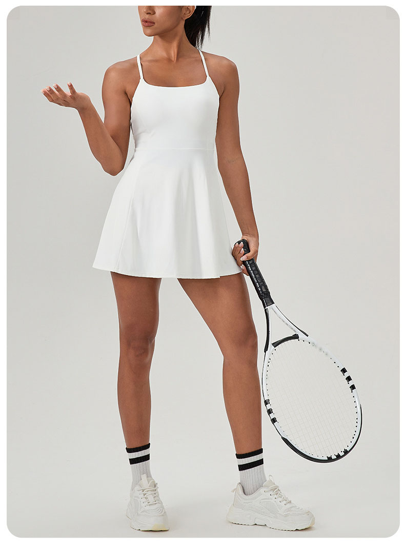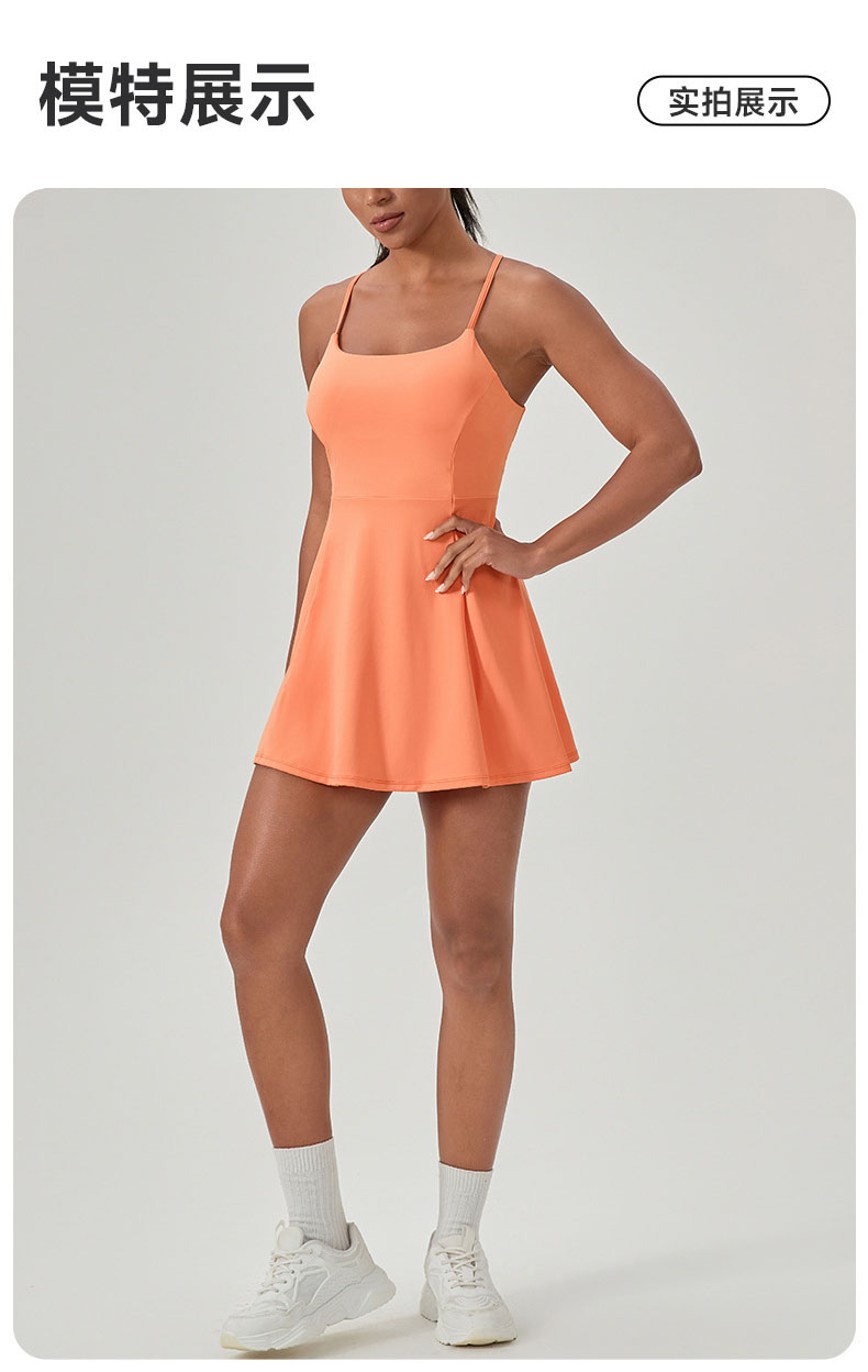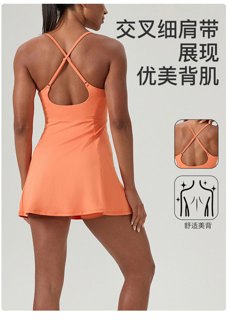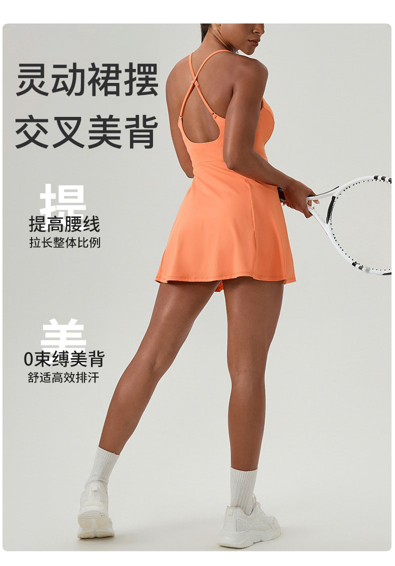 跃牌【欲动春风】系列 夏健身连体网球裙带胸垫女裸感速干运动连衣裙52166