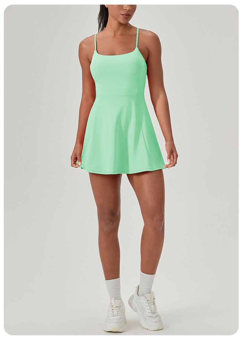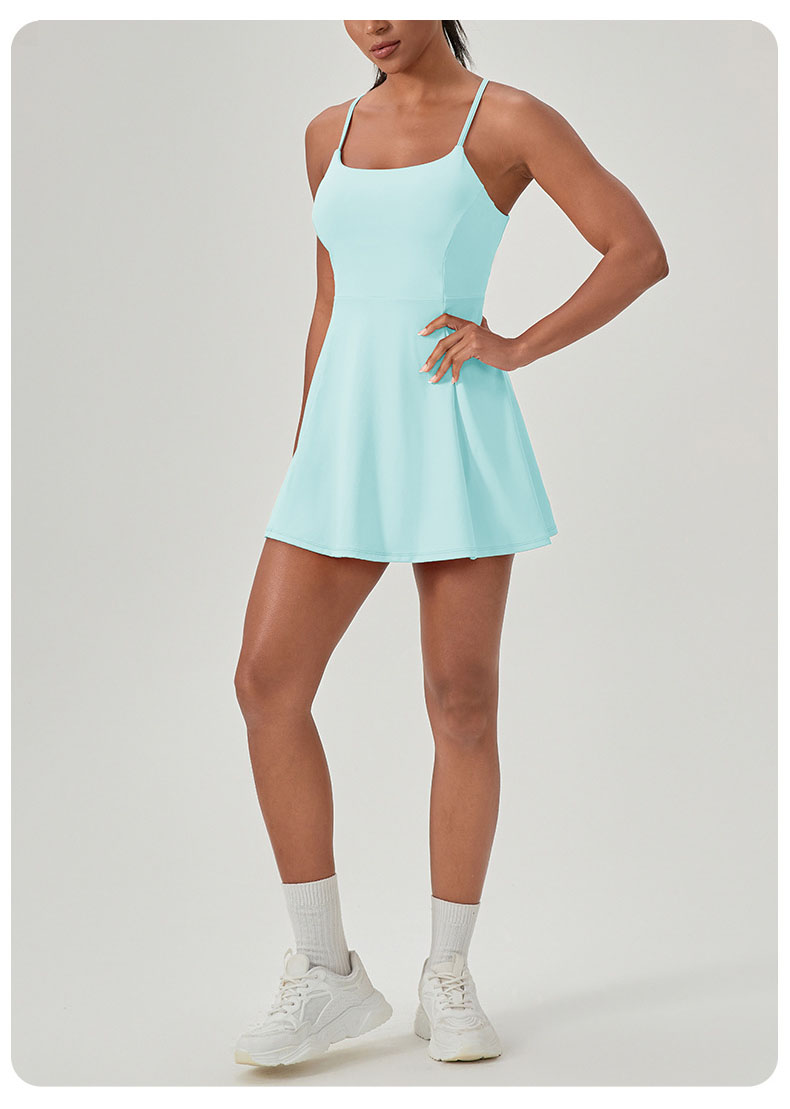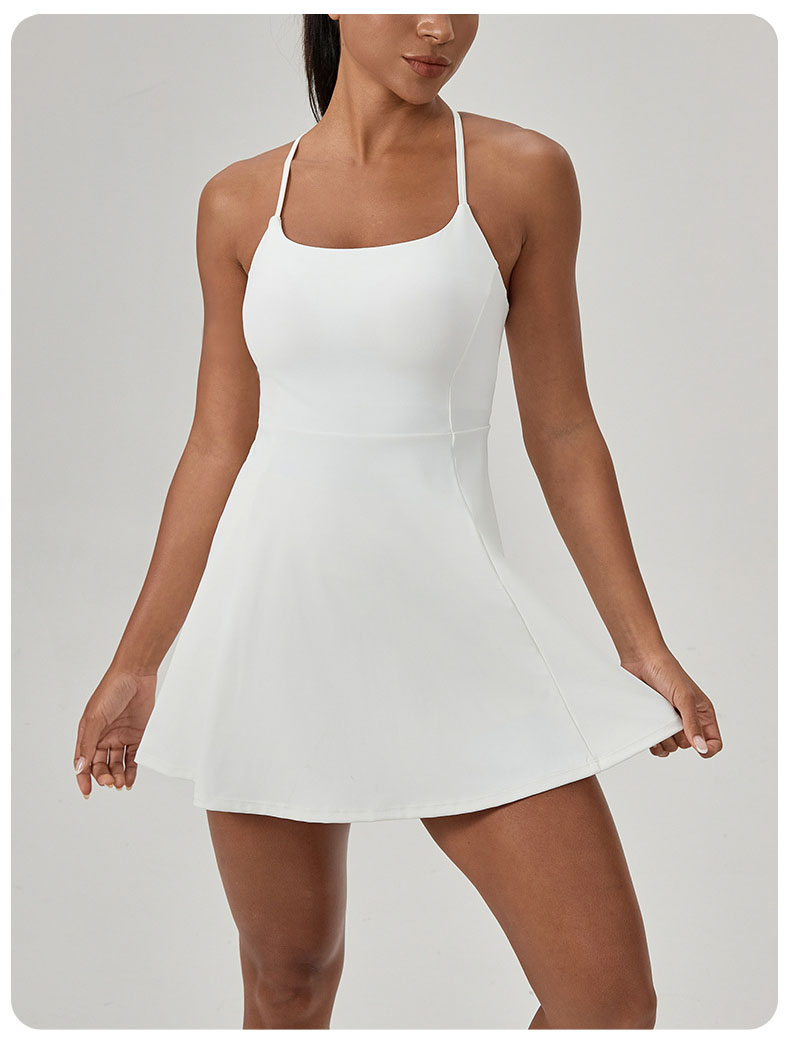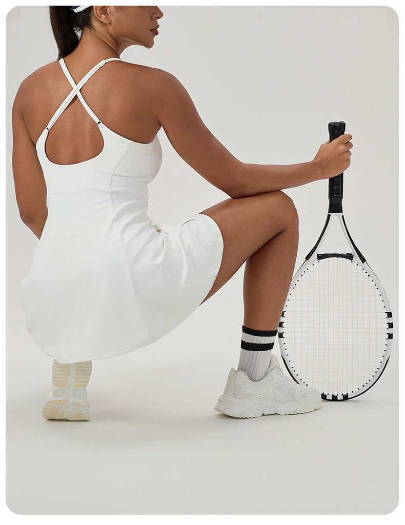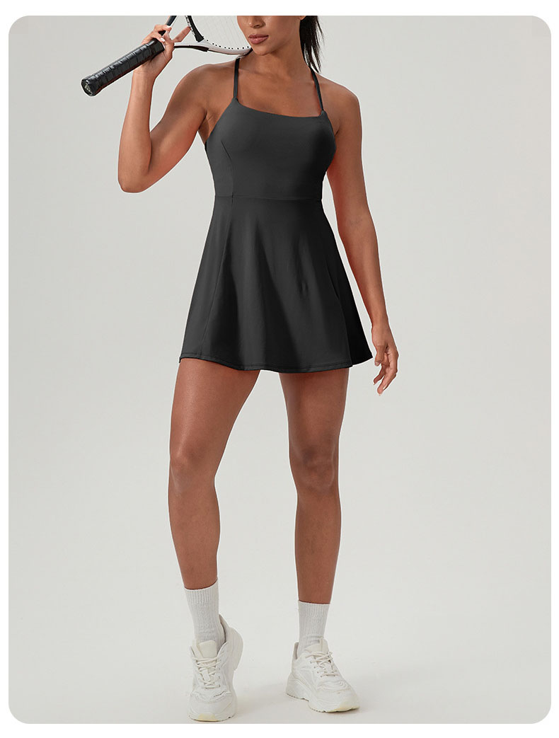 跃牌【欲动春风】系列 夏健身连体网球裙带胸垫女裸感速干运动连衣裙52166