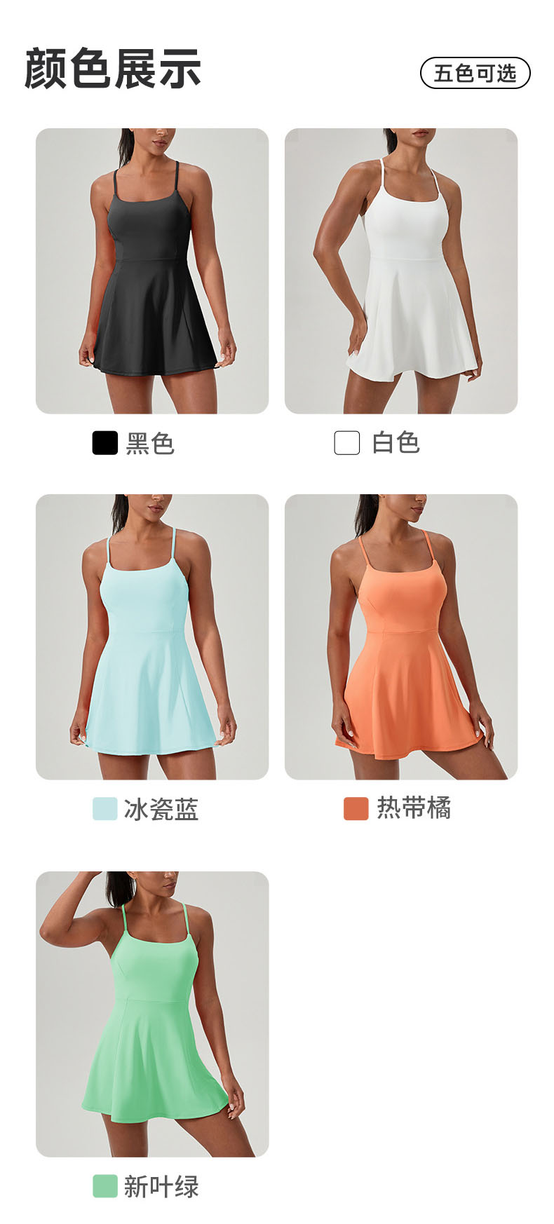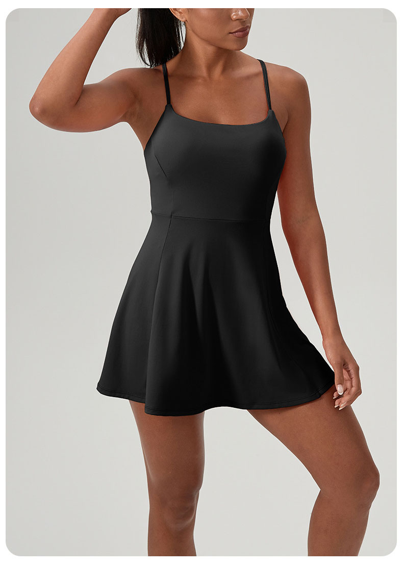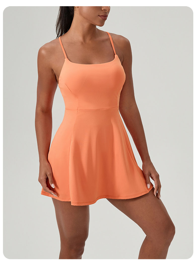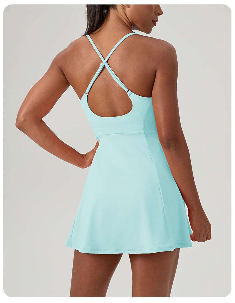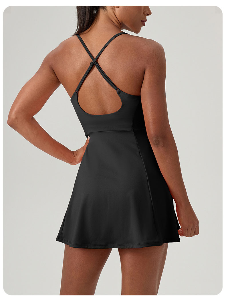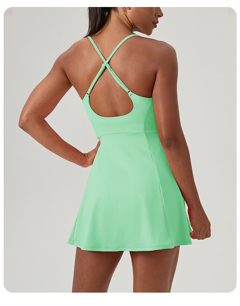 跃牌【欲动春风】系列 夏健身连体网球裙带胸垫女裸感速干运动连衣裙52166