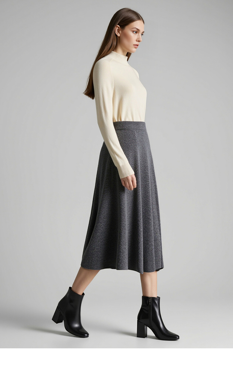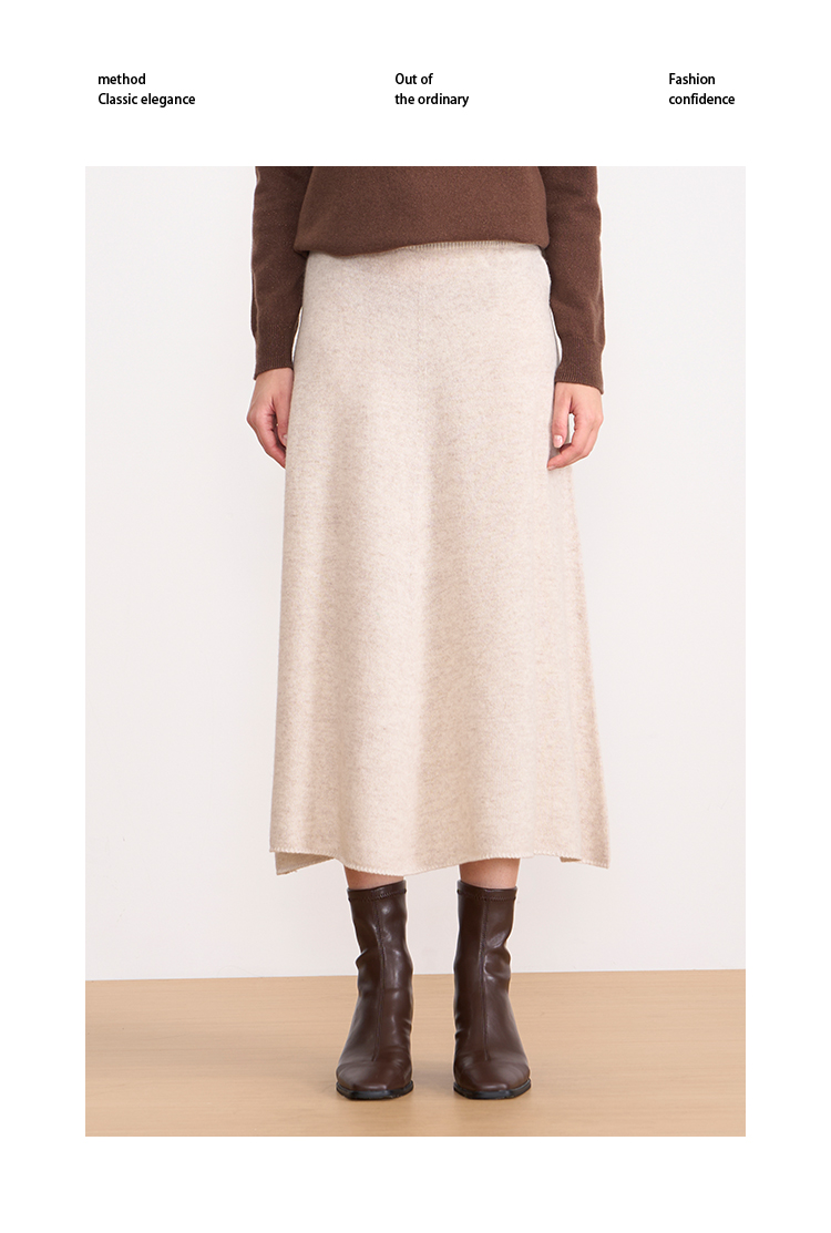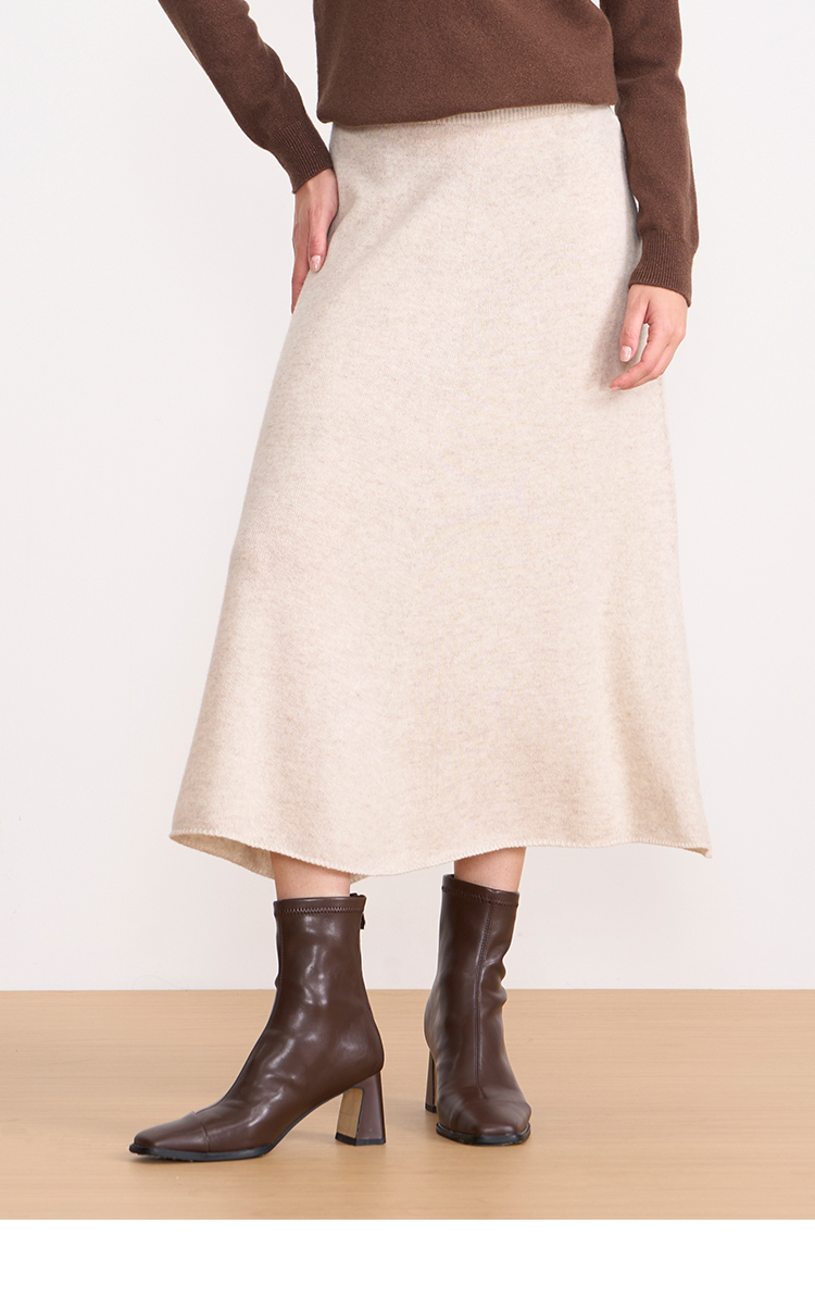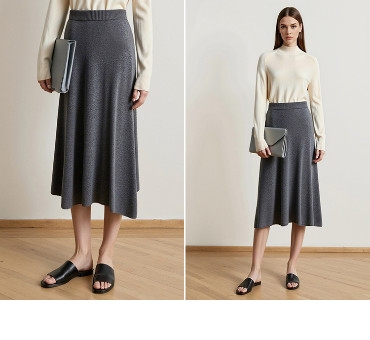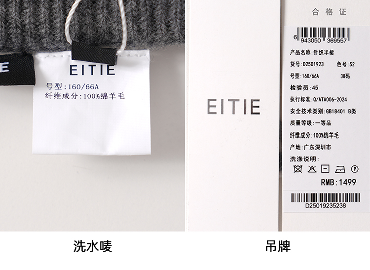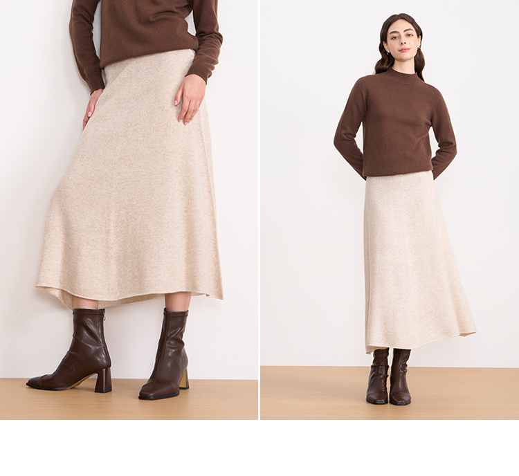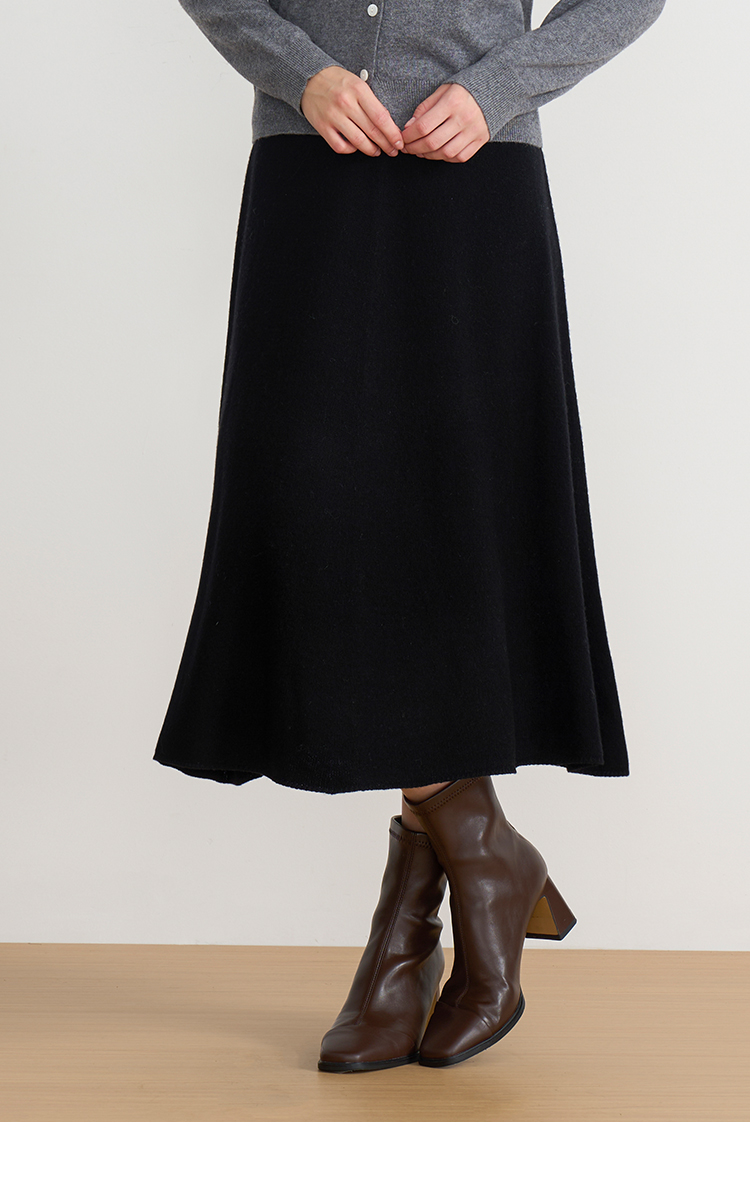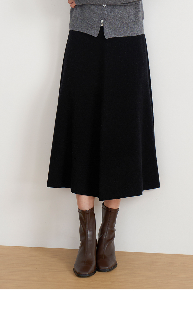 【A字针织半身裙】EITIE爱特爱极简纯色羊毛高腰显瘦秋季新款针织半裙D2501923