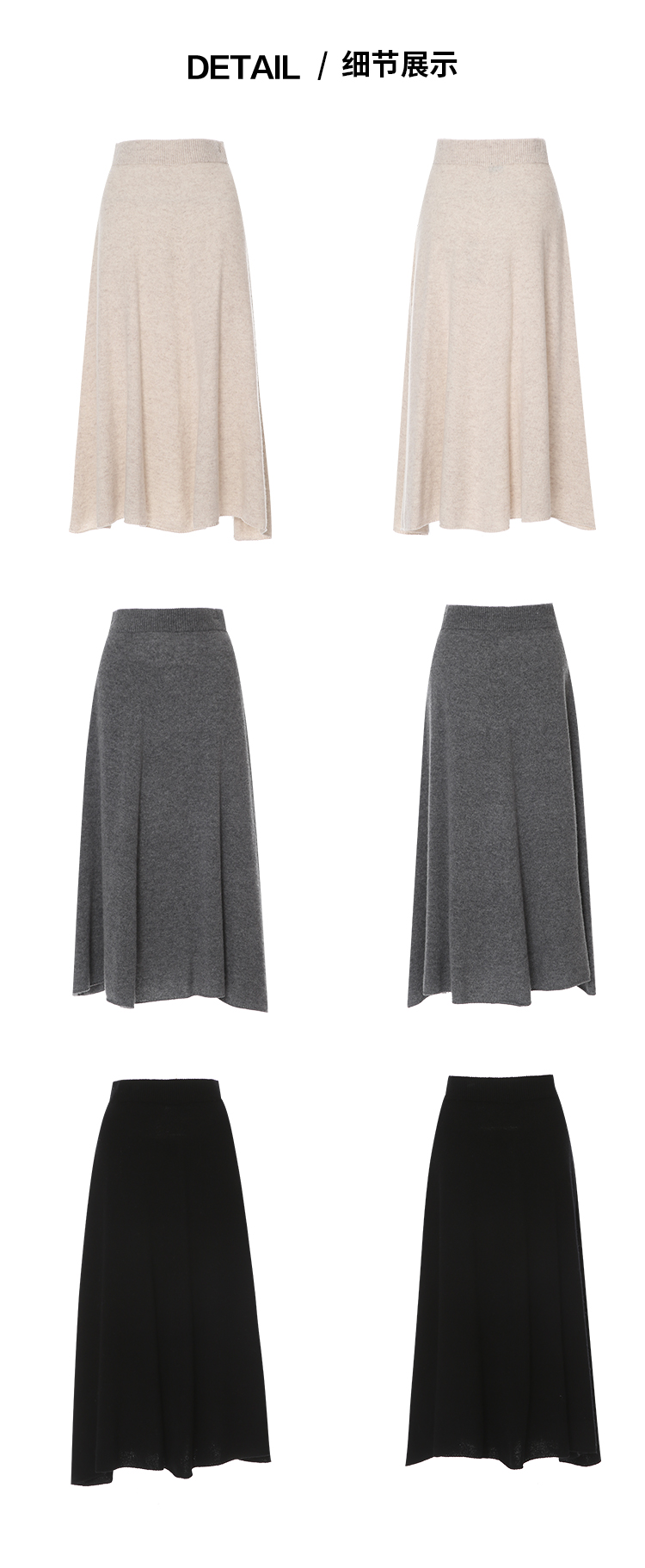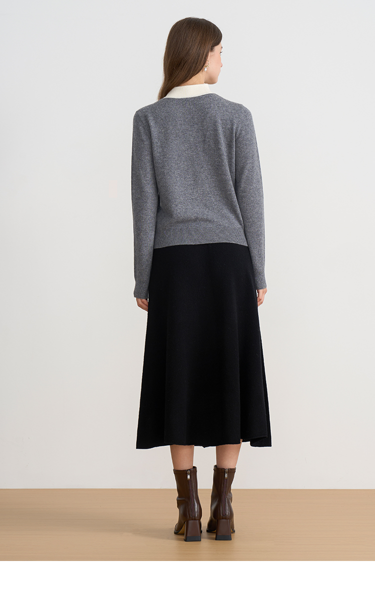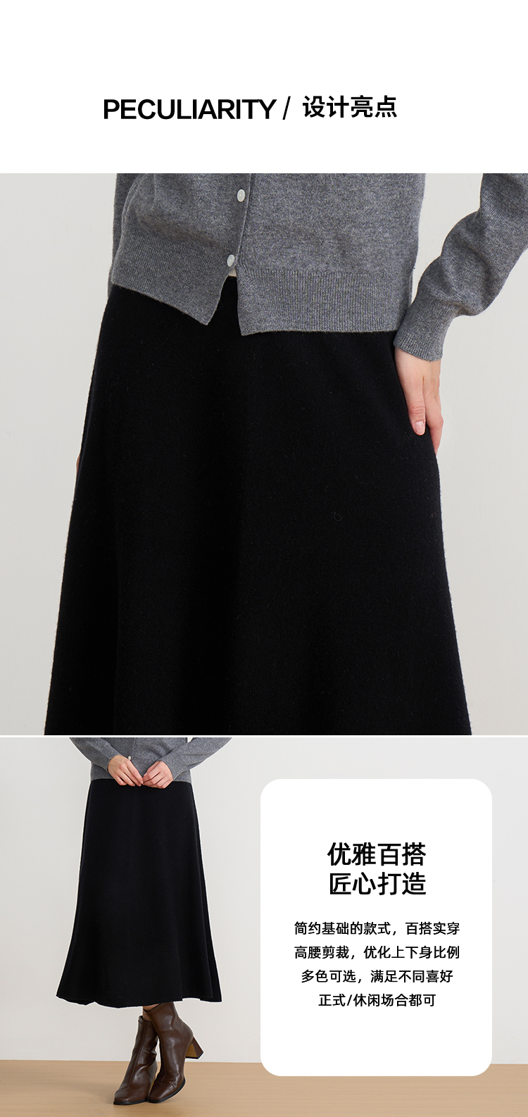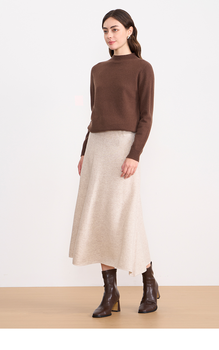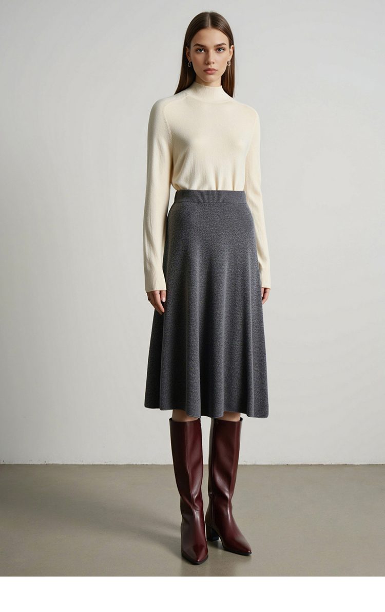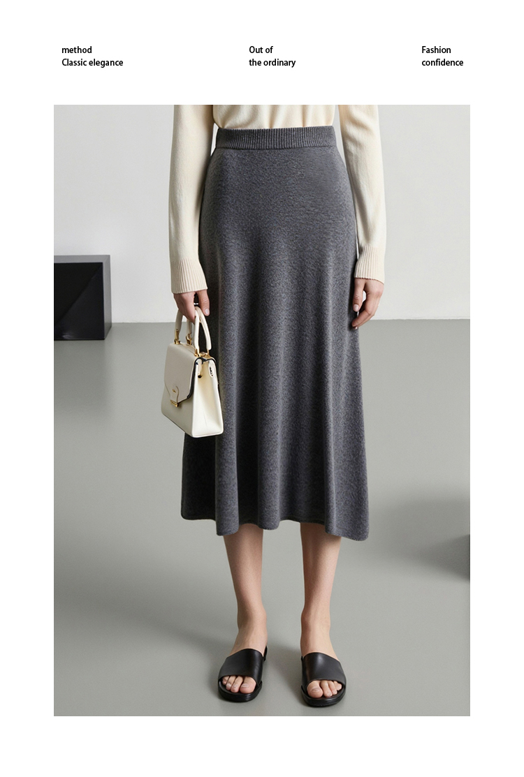 【A字针织半身裙】EITIE爱特爱极简纯色羊毛高腰显瘦秋季新款针织半裙D2501923