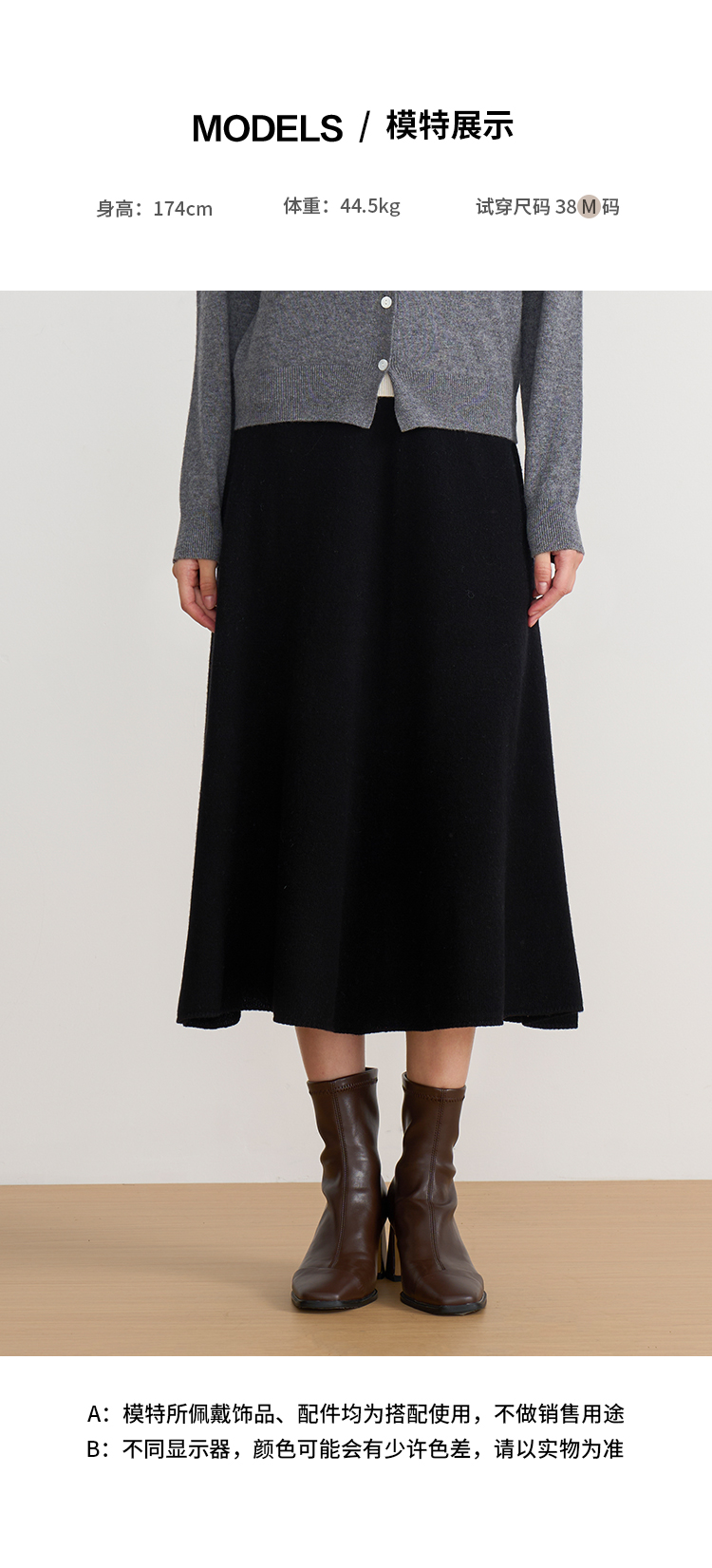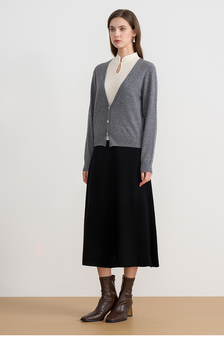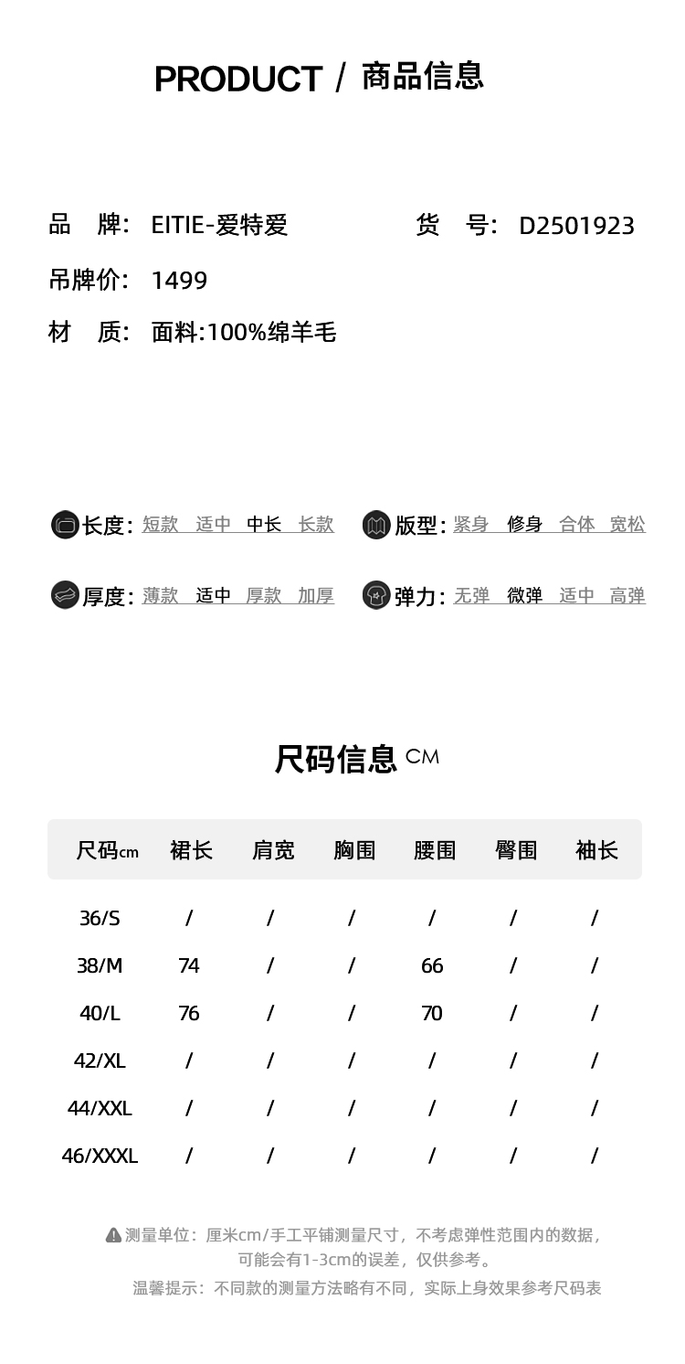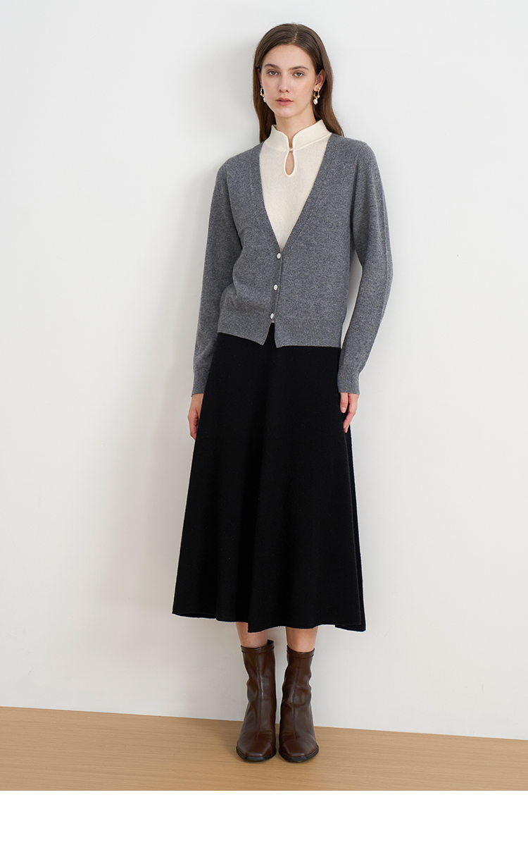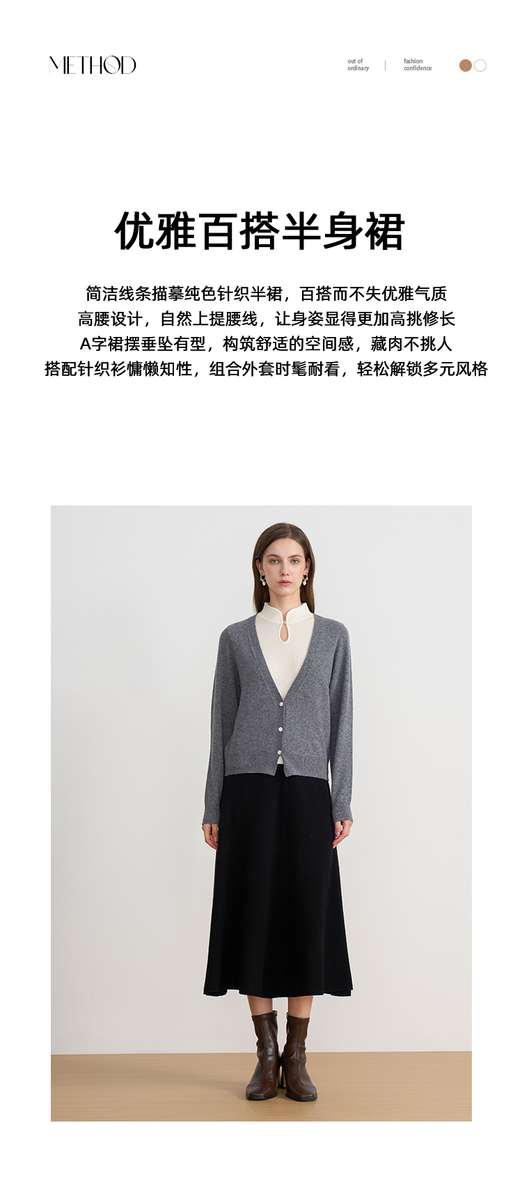 【A字针织半身裙】EITIE爱特爱极简纯色羊毛高腰显瘦秋季新款针织半裙D2501923