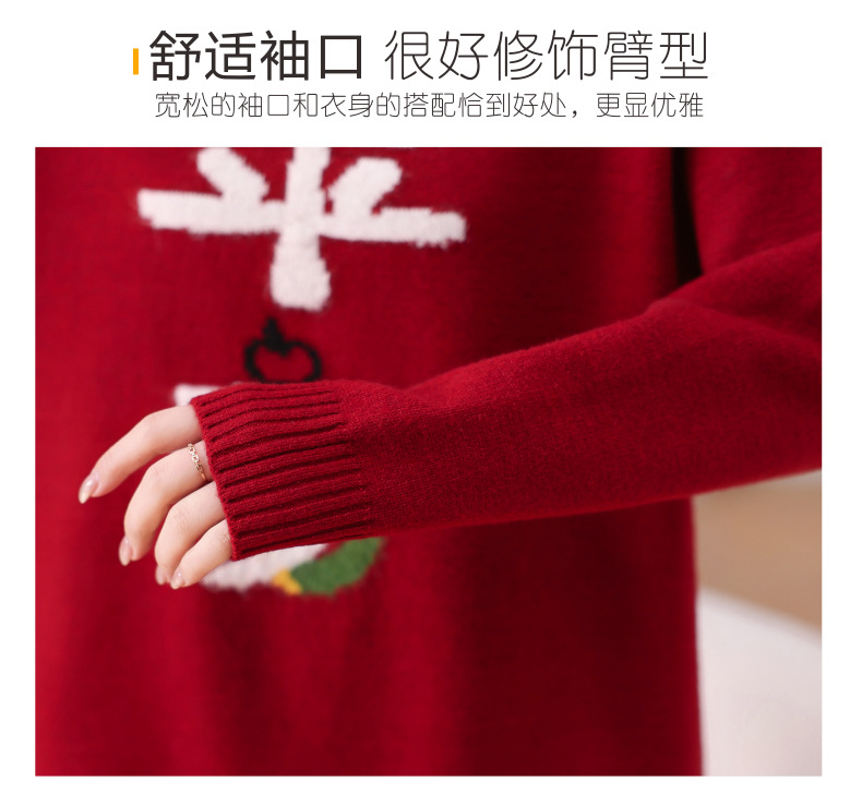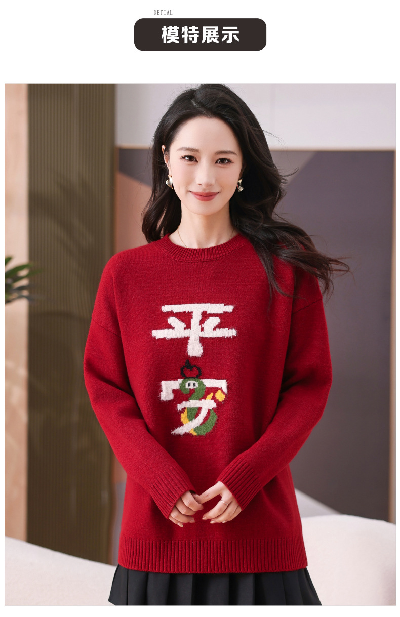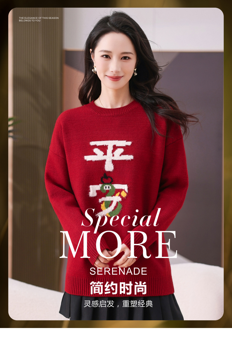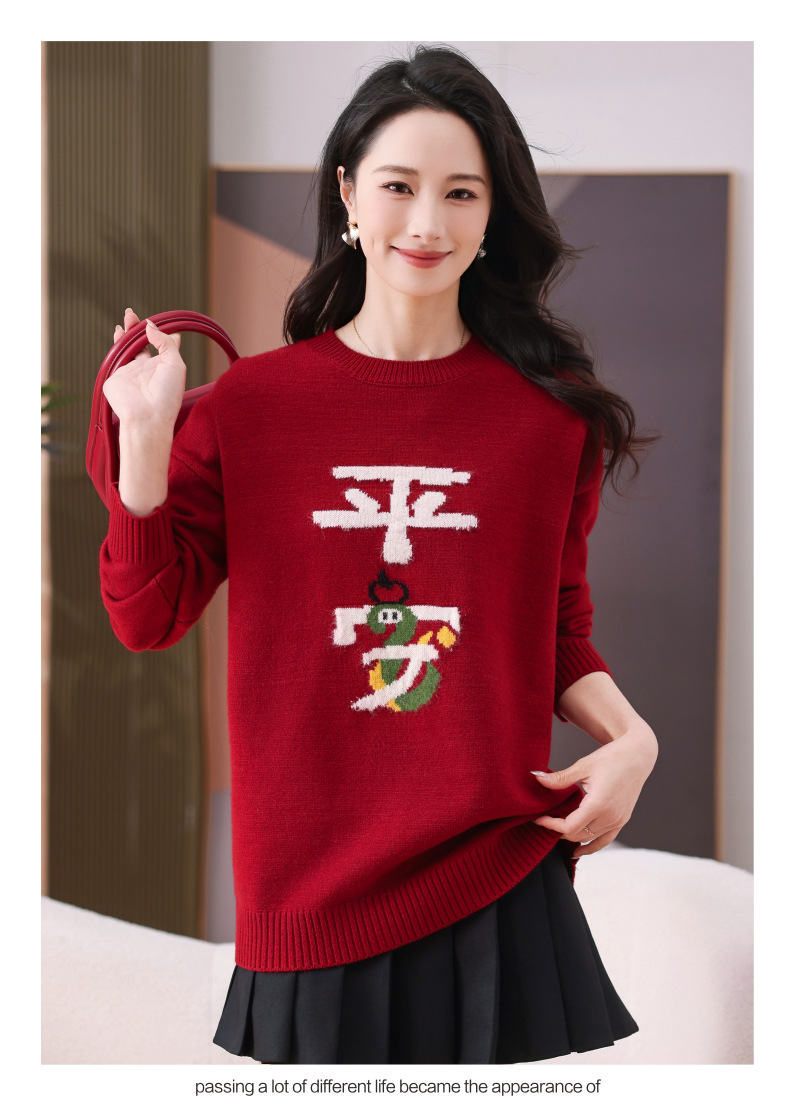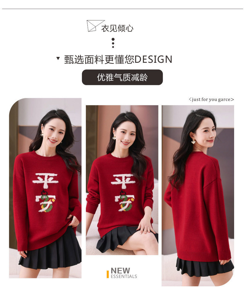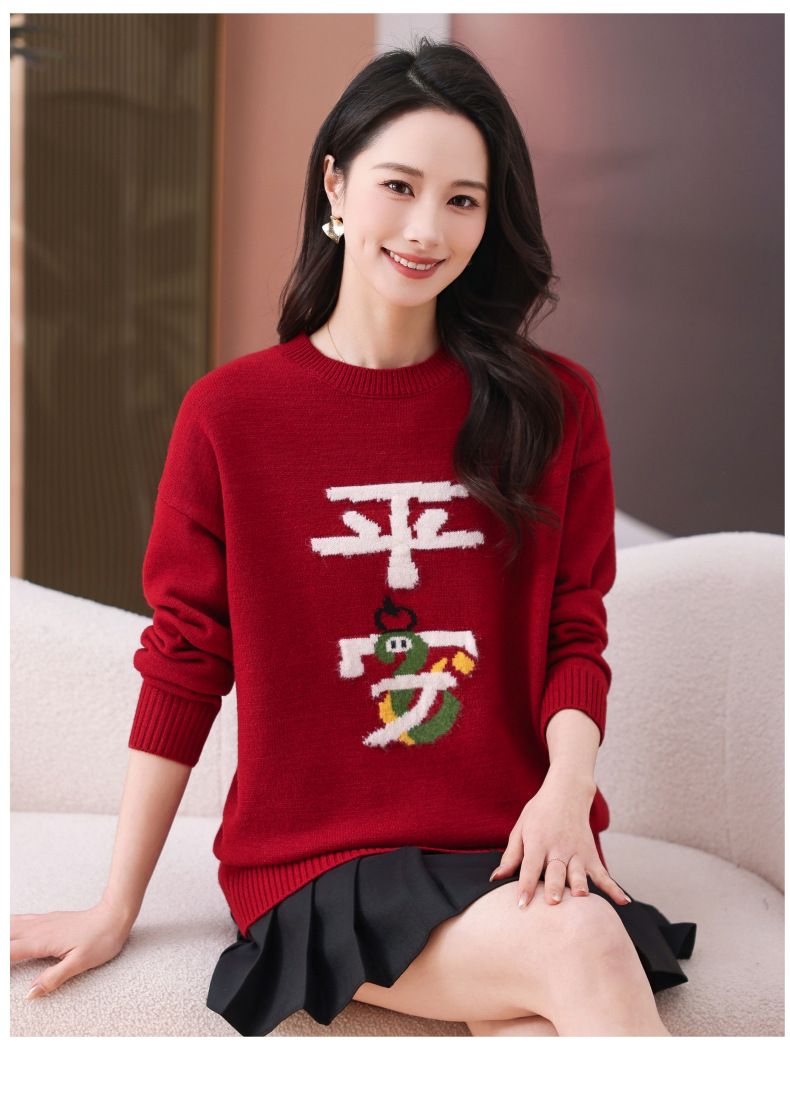 本命年新年红色毛衣,洋气减龄宽松提花打底衫上衣CC- 89-2515