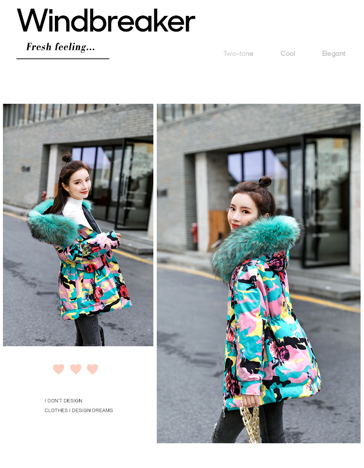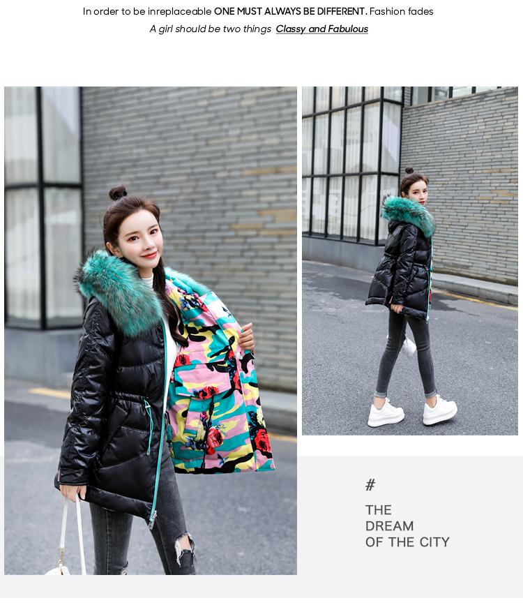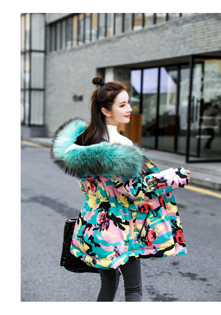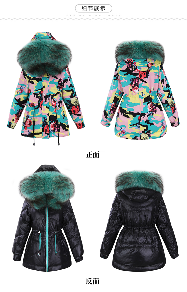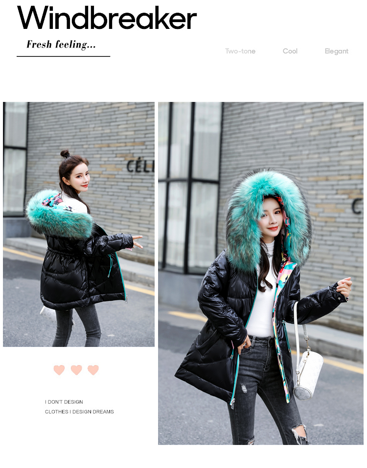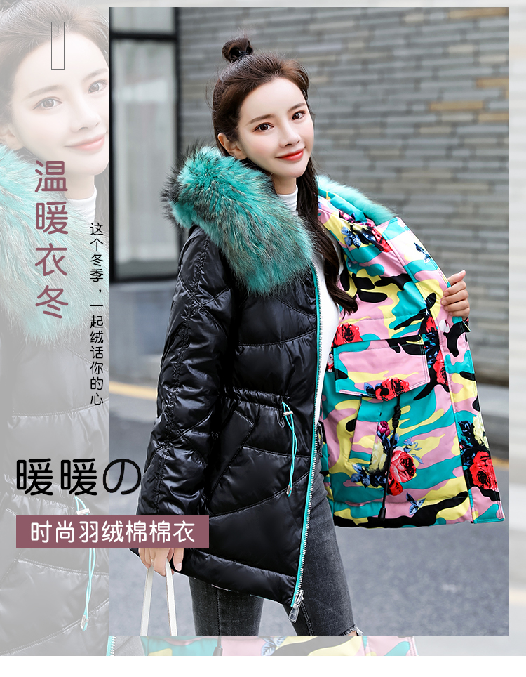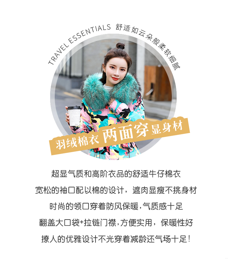 WZNH-BBL3612冬季新款时尚宽松舒适两面穿大毛领连帽羽绒棉棉衣