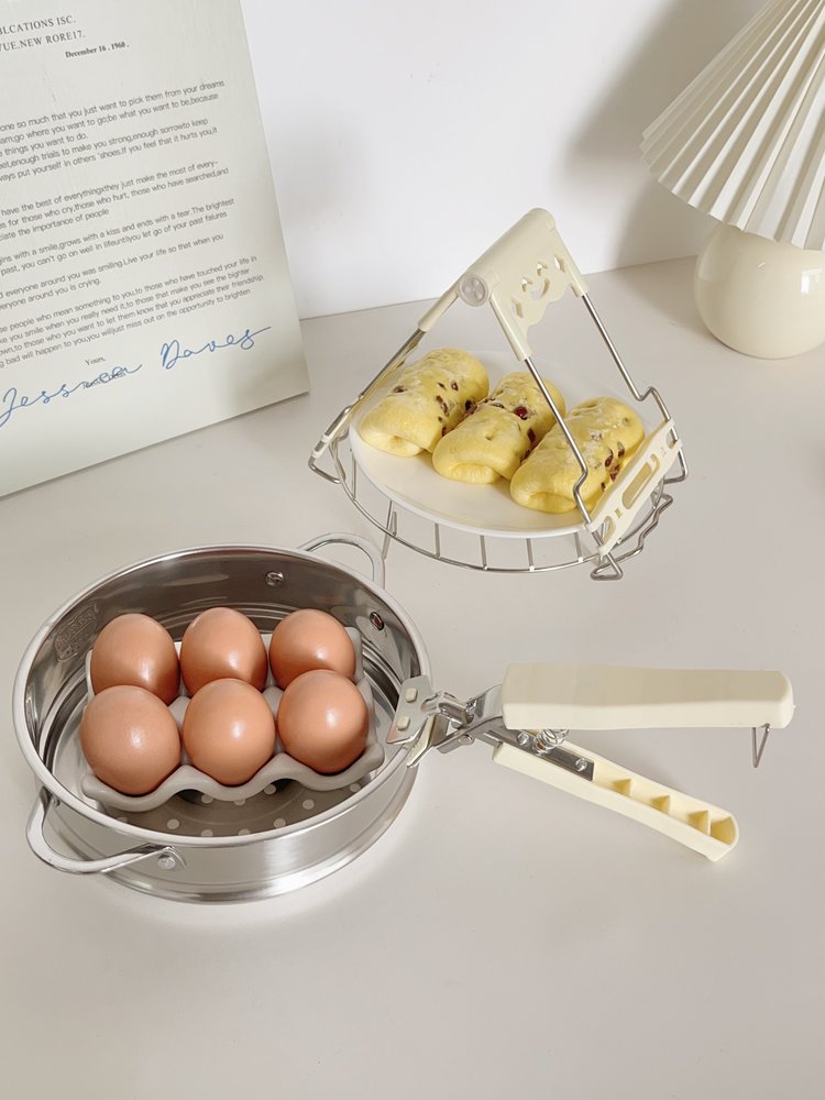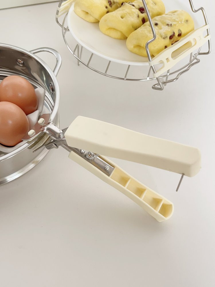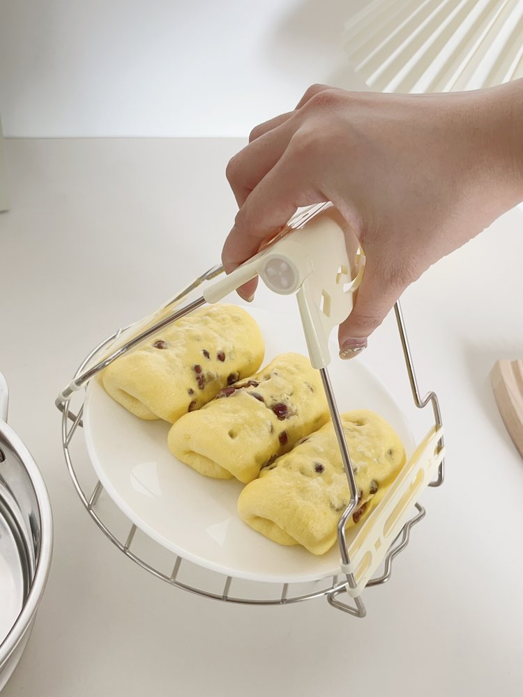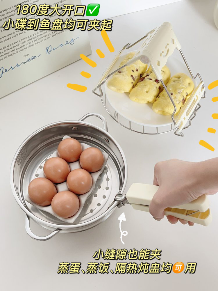 3.碗夹:防滑硅胶垫夹头设计,夹碗更稳固;小缝隙,也能夹,蒸蛋、蒸饭、隔热炖盅均离不开