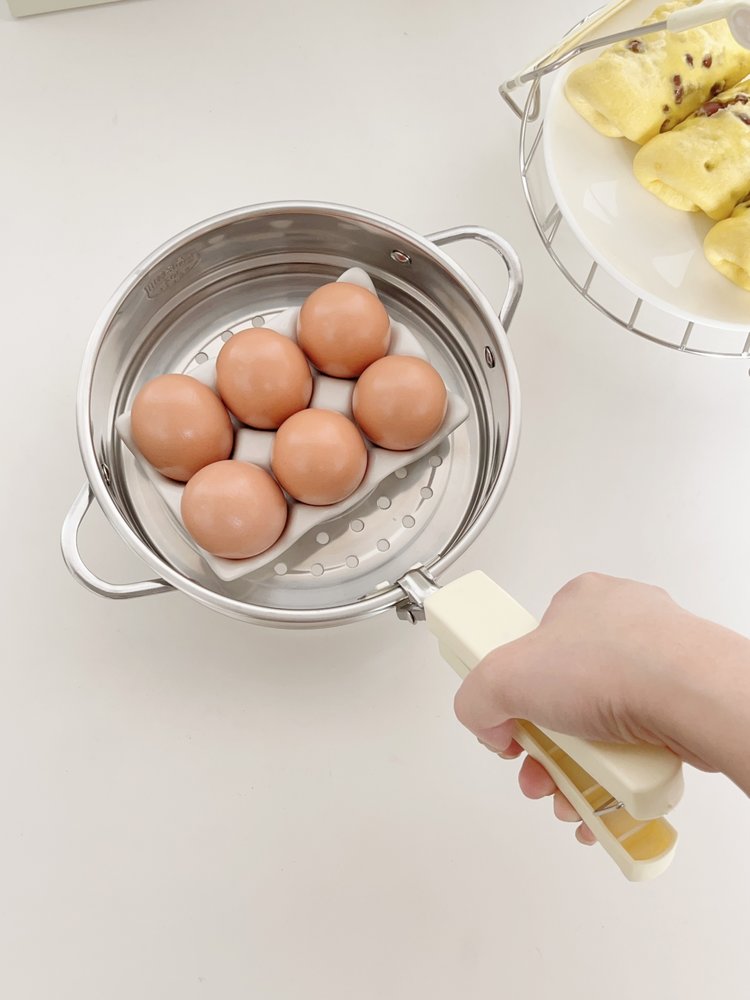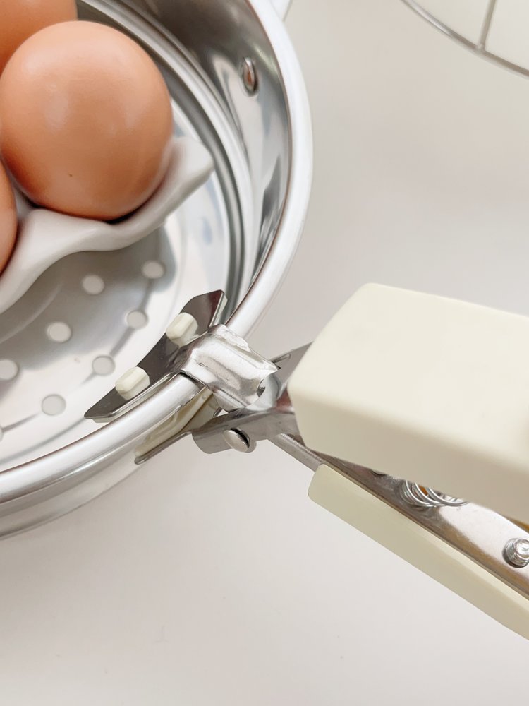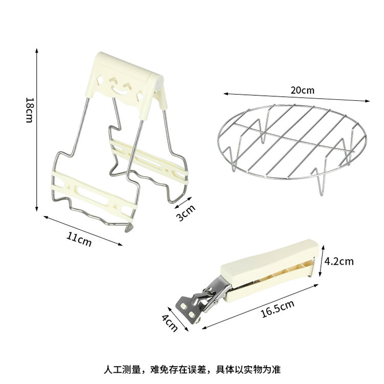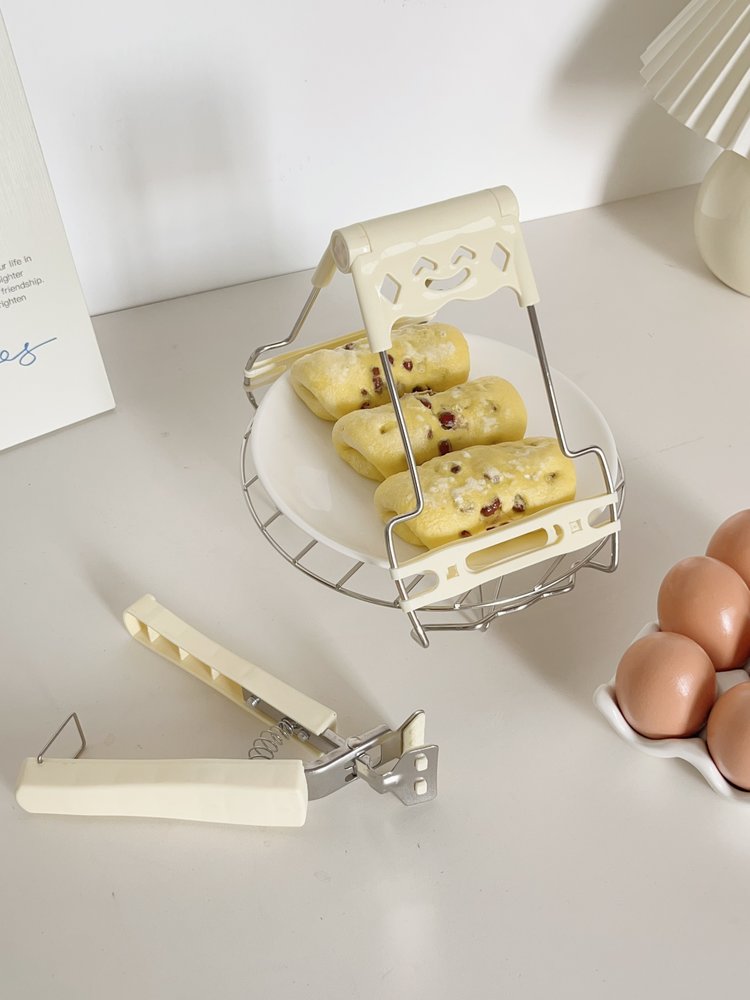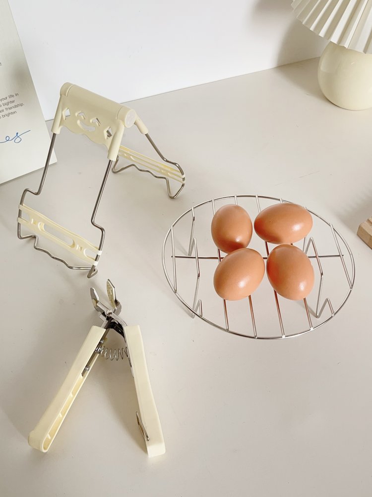 3.碗夹:防滑硅胶垫夹头设计,夹碗更稳固;小缝隙,也能夹,蒸蛋、蒸饭、隔热炖盅均离不开